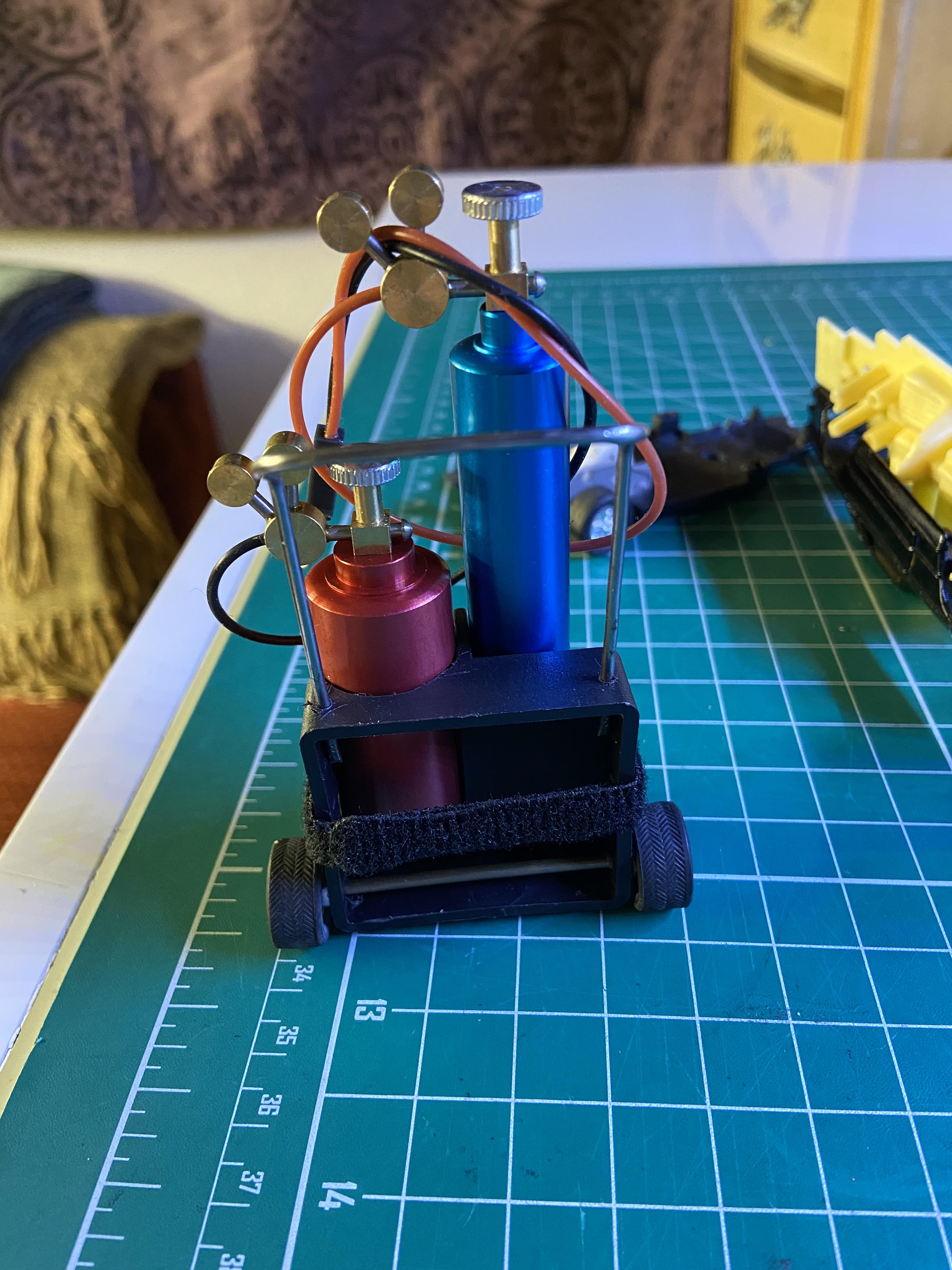 RCScaler Posted February 2, 2022 Author Posted February 2, 2022 More done… handmade paper towel rolls, scale trash in garbage, scale cardboard boxes, wood bench, torch tank cart from plastic scrap/coat hangers/and toy car wheels, roll up door setup with 3 open/shut options, out door planter boxes!! I just can’t stop it’s too much fun! 1
