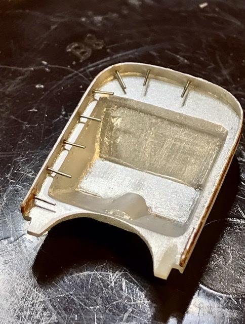 absmiami Posted January 31, 2023 Author Posted January 31, 2023 The rivets on the fabric edging the cutouts had to be shortened to lengths of .40 - so they wouldn’t poke through the body - they were poked into holes drilled into that Evergreen strip - painted , cut, and sanded to the needed length …