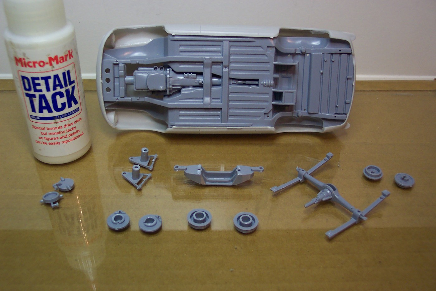 TooOld Posted January 22, 2022 Posted January 22, 2022 Time to get started on this C1 Models MGB-GT Trans Kit , I've already seen quite a few built and am looking forward to this one ! I'll be using the Aoshima '74 MG kit for this build . I'll also be building it with the chrome bumpers instead of the urethane ones . The '68 and '74 Roadster kits have both been reissued with different box art a few times but they are actually identical inside the box , with just a couple of exceptions . They both have the chrome bumpers but the '74 kit has two extra parts trees to include the urethane bumpers and tonneau cover , and a set of Rallye Wheels plus mirrors and gas cap . If your shopping for a kit buy the '74 , it's usually cheaper than the '68 kit . Before I begin here's a few photos to compare the C1 body to the Aoshima body . C1 has done an excellent job and their body looks like it will need little if any work other than prepping for paint . Looking at the inside note the molded in recesses around the windshield and windows . C1 includes some clear sheet and templates to cut the windshield and windows . They also duplicated these chassis mounting tabs . I didn't pay much attention to these at first but you'll see later that it's important they be used correctly . First thing I want to do is test fit the chassis and interior , and check the ride height . I used some Detail Tack to assemble the suspension . Here's the assembled chassis , the interior was just taped together for now . After modifying the interior with the C1 parts I'll check the fit in the body again . To fit the body gently spread it at the rocker panels and lower it over the interior . Insert the rear of the chassis first then while still spreading the body lower the chassis and insert the front into the body . It takes some fiddling around to get the chassis into the body so be patient and it will seem to just pop into place . This is where those mounting tabs become important . I had the chassis in and out a couple times fiddling with it and each time I just had it resting against those tabs , it fit okay and the interior seemed okay but the ride height was too high . I figured okay I'll have to modify the suspension to lower the stance where I want it . That's when I realized that the chassis fits "into" those tabs not just against them . Doing it the correct way not only made the interior fit perfectly , it lowered the stance about 2mm to where I had hoped it would be ! The color I'm planning to use is called Bronze Yellow . I also purchased the Mini Lites that C1 sells but I really like the look of those Rallye Wheels ! Interior modification is next . . . stay tuned !