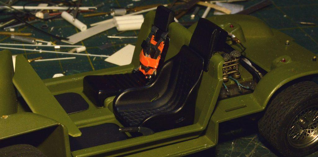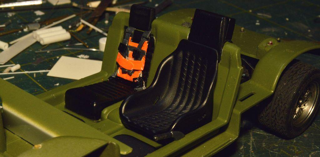 Straightliner59 Posted yesterday at 12:15 PM Author Posted yesterday at 12:15 PM I got the driver's side headrest installed. I don't even see it, in the instruction sheet. Also, I couldn't find a back, for it, even though it has receivers for pins, for one. I made that from Evergreen strip, then cleaned it up, and sanded the headrest, so that it would fit into the space it's supposed to. Finally, I shot it with Krylon Satin Black. I drilled and filed openings in the seat bucket, for the harness, and painted that the same. I'll be using a set of Eduard Sabelt harnesses. Also, I carved and sanded a base for the hand brake from Evergreen. The handle is wire insulation, while the shaft is some Christmas tree ornament hanger wire. Revell mounted it in the wrong place, compared to the real world item. Since there's not enough room on the floor, where it belongs, anyway, I glued a tab to the base of mine, and cemented it in Revell's location. I made a pair of floormats from some slightly textured paper, and painted them Krylon Utra Flat Black. As always, your comments, questions and critiques are welcomed. Thanks for looking!