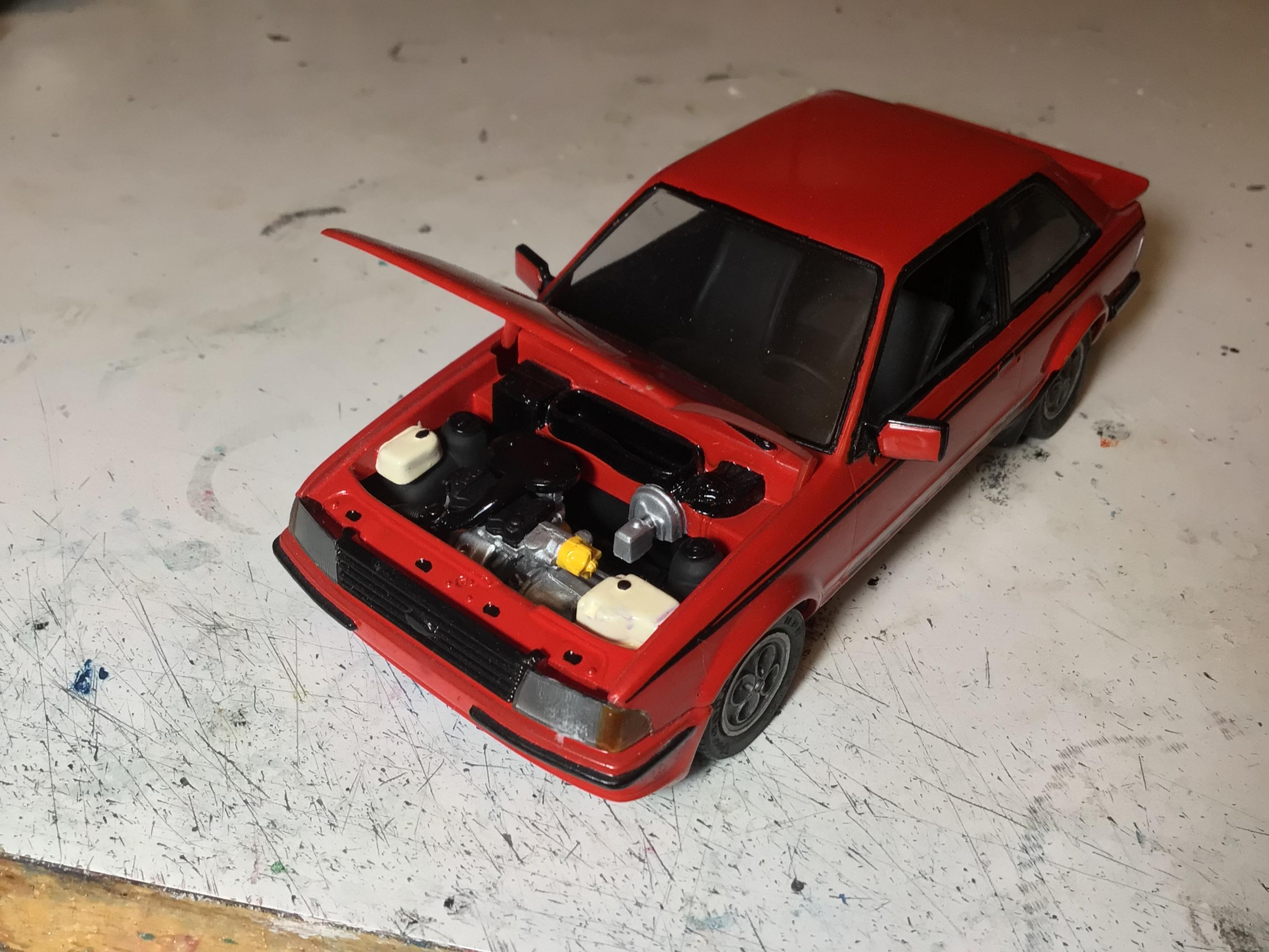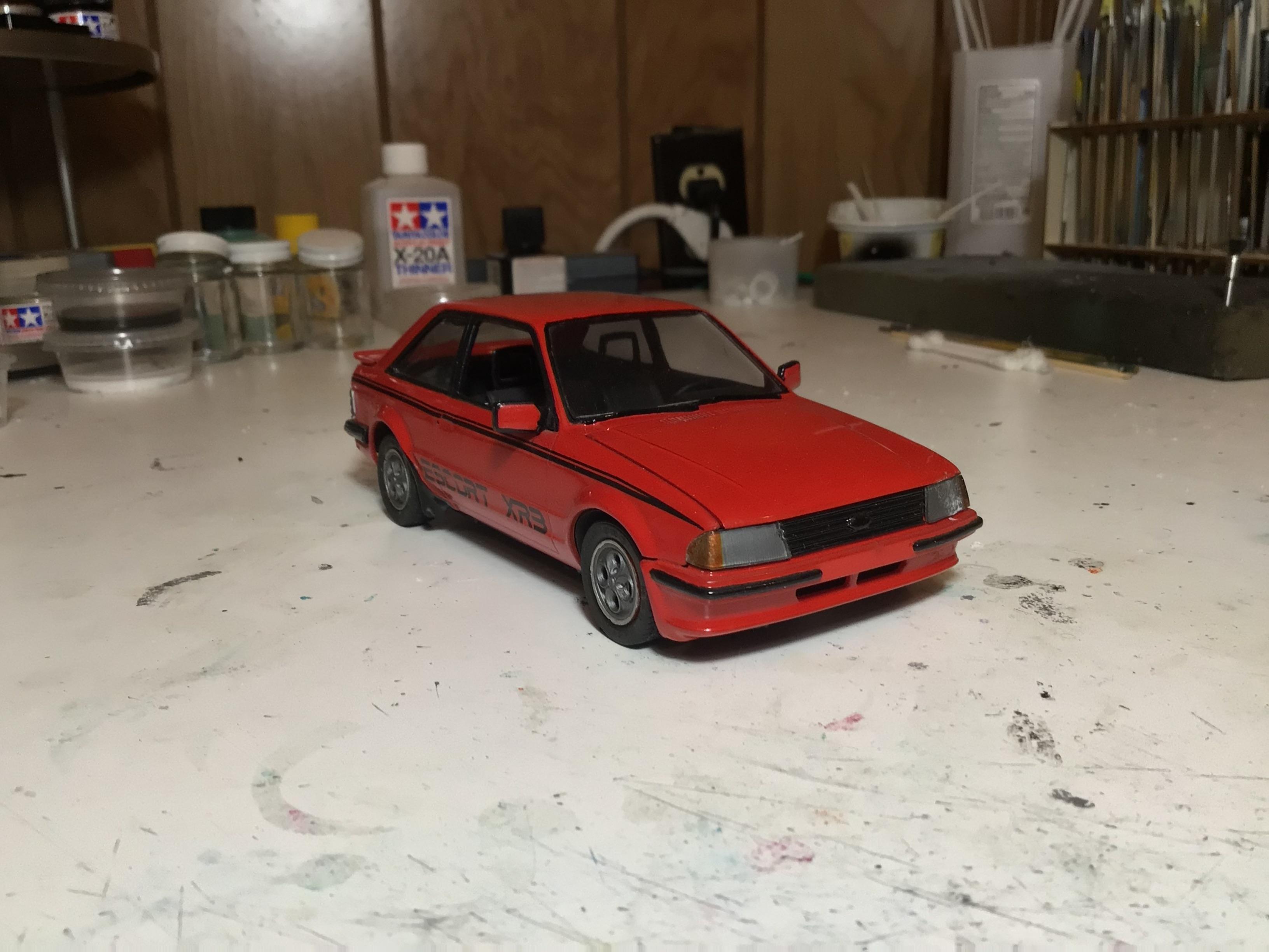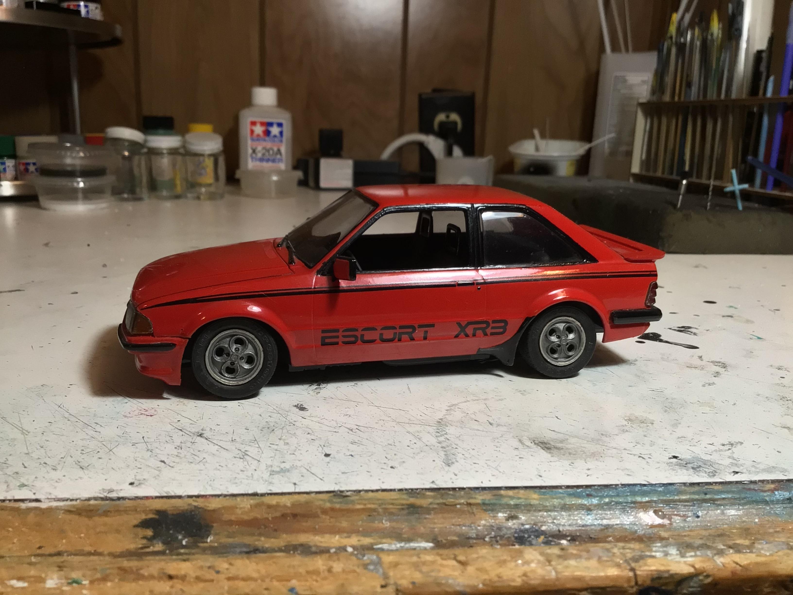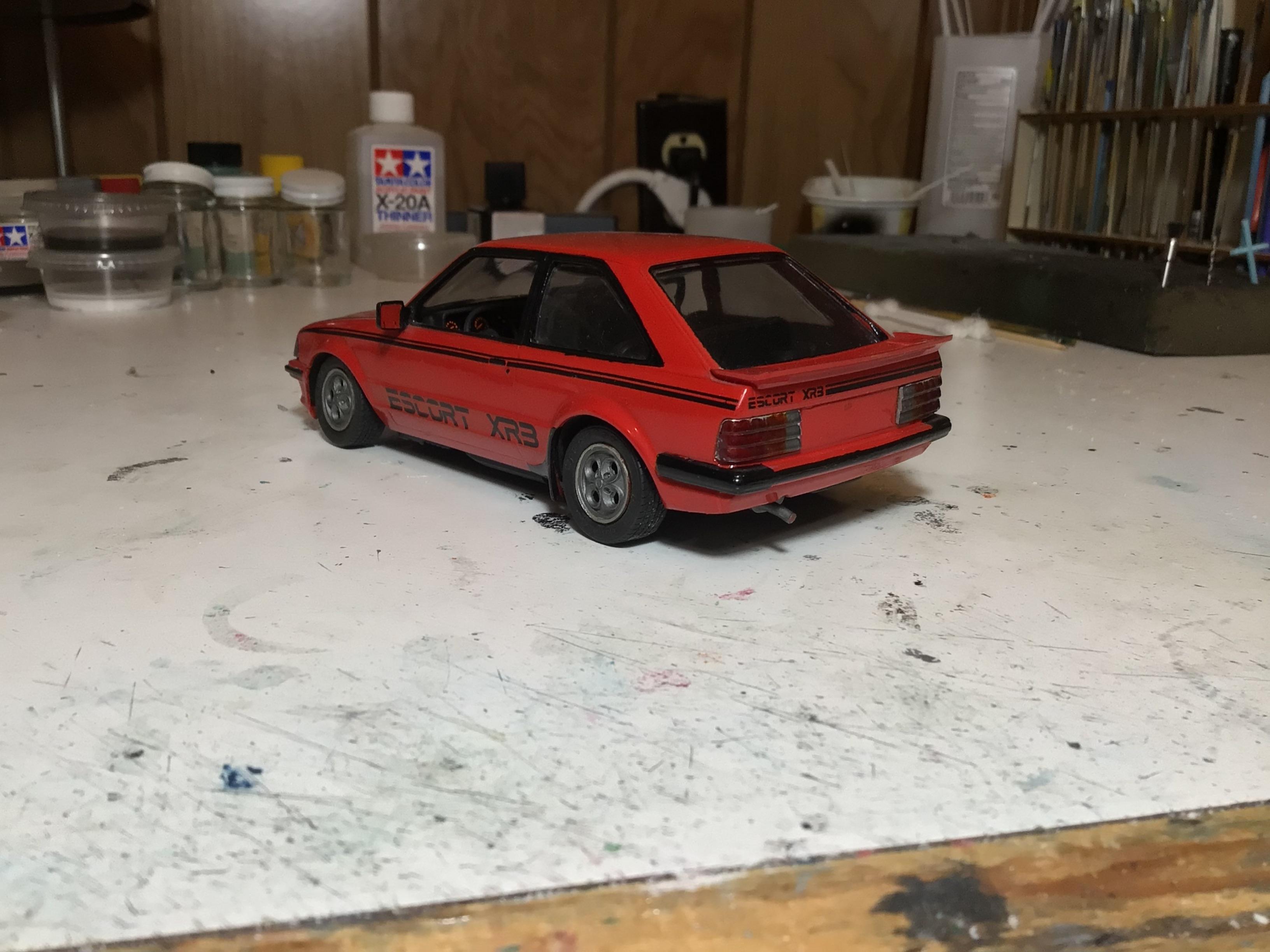 Radretireddad Posted Monday at 07:09 PM Posted Monday at 07:09 PM Here are my two oldest survivors dusted off and shined up a bit. The Revell Ford Escort XR3 was bought when new and built in my dorm room when I was in the Air Force. The Hasegawa Porsche 944 turbo with was bought and built just before my wife and I began dating. I was into sports and GT cars because I was crewing a formula Ford in the SCCA on weekends for my employer at the time. I blame the oddball color combo on the carpeting that came in the kit. These two now sit out among the rest of my current builds as a peek into my modeling roots.