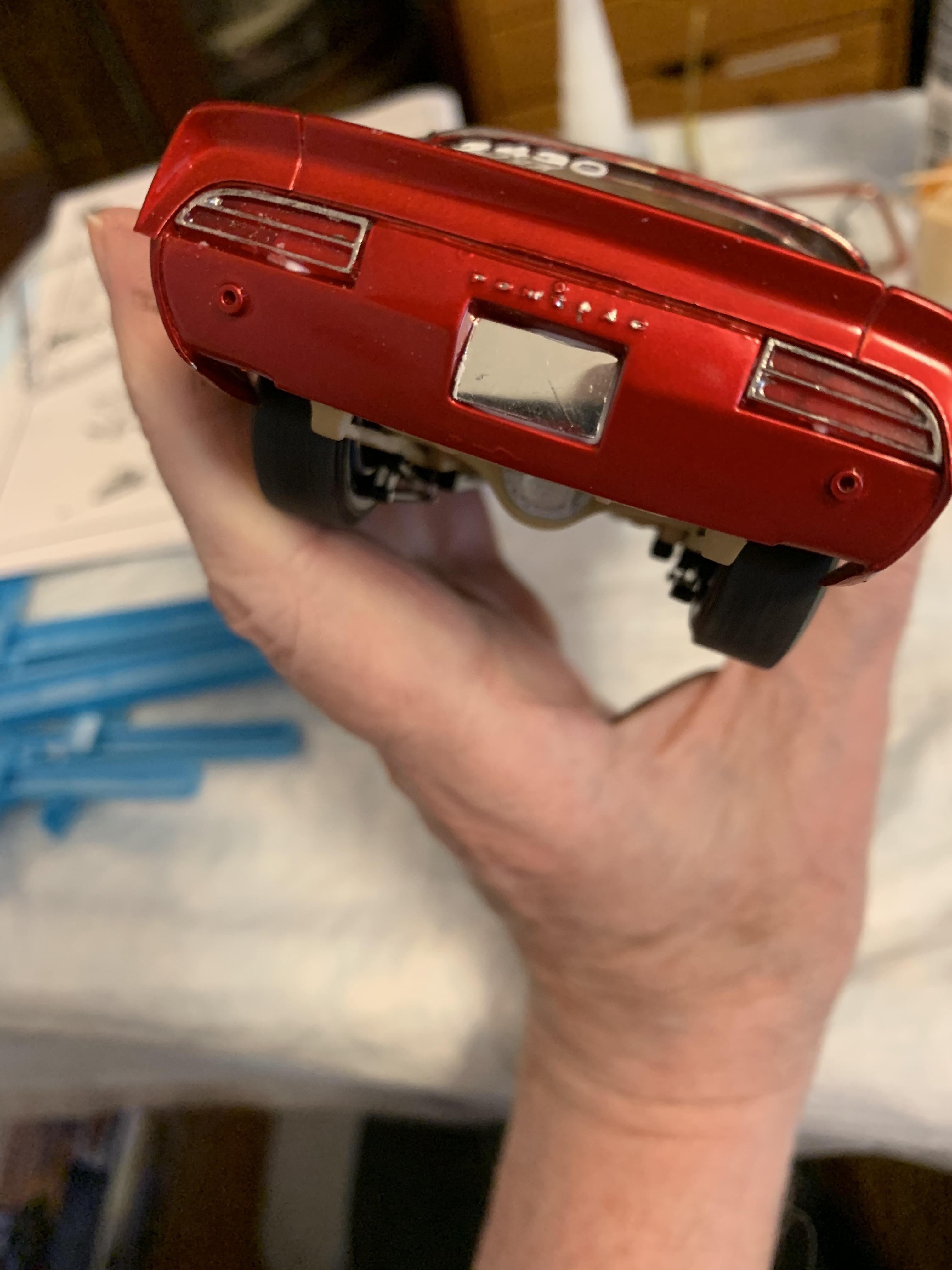 R. Thorne Posted February 11 Author Posted February 11 No primer on this car, by the way. After the gold base, I put 1 light coat of clear red on, paused 15 minutes, then a heavier coat, another pause of 15-20 minutes, then a heavier coat, then done. Covered it up. Almost forgot the ram air scoop. 2