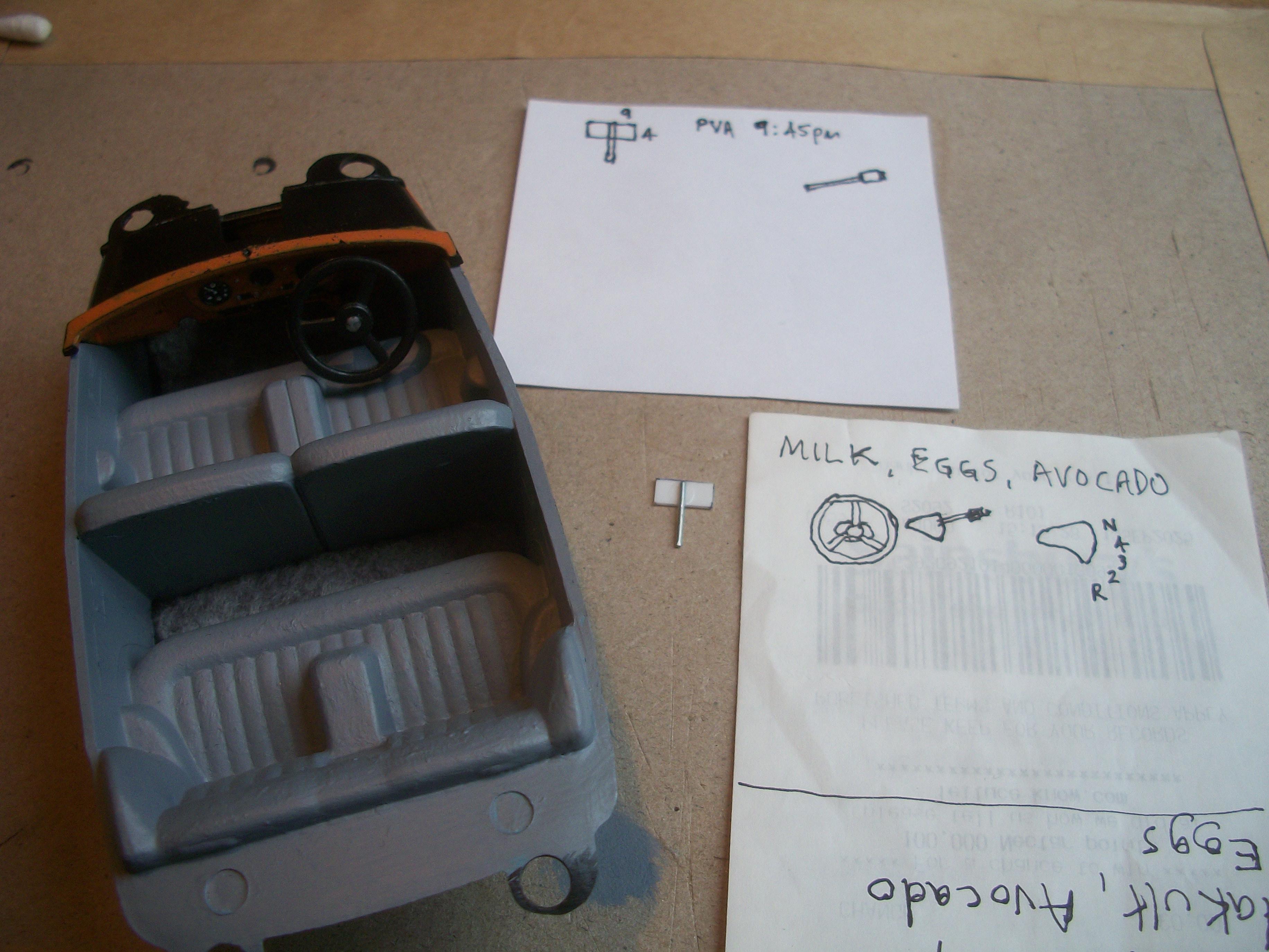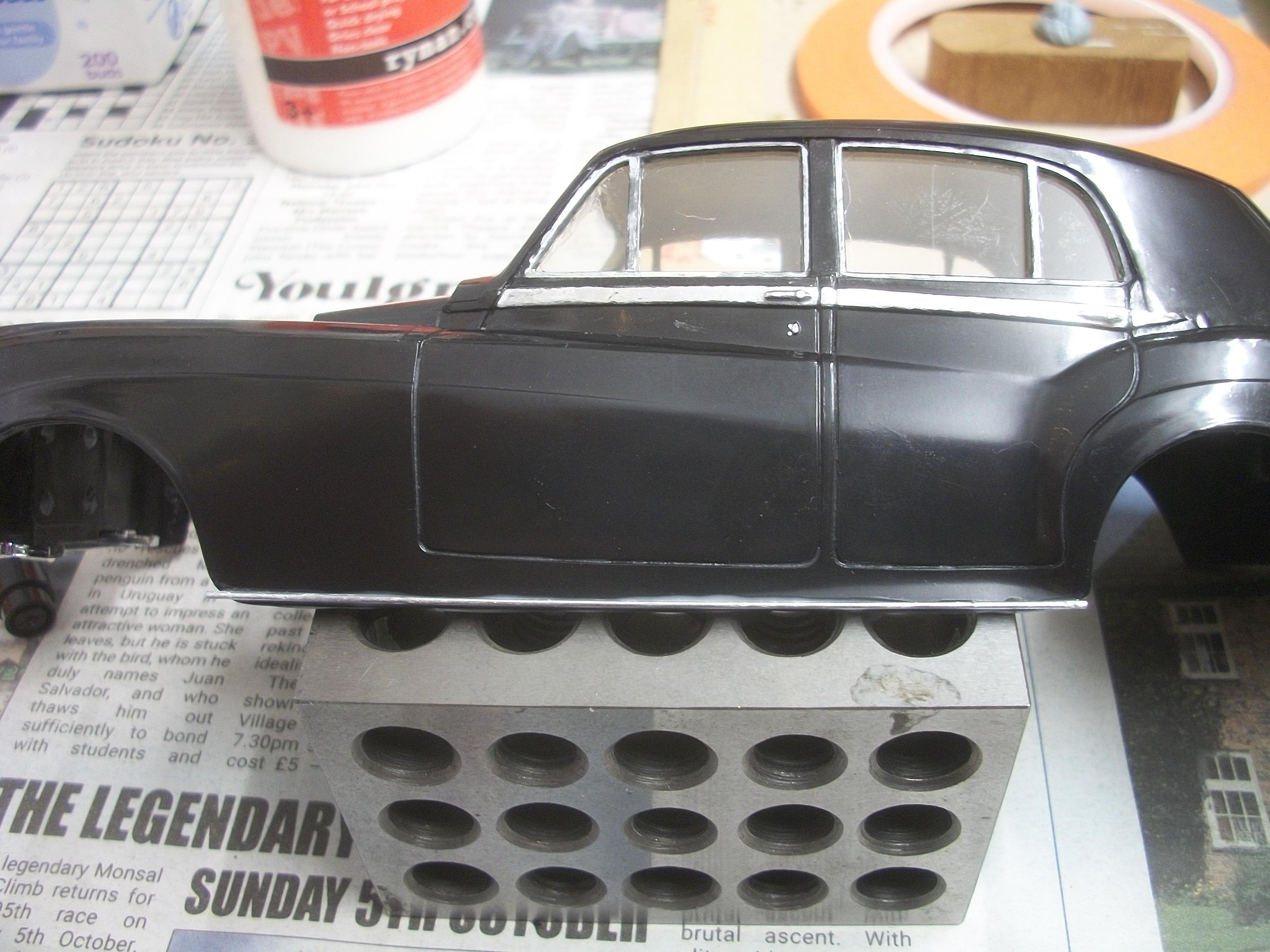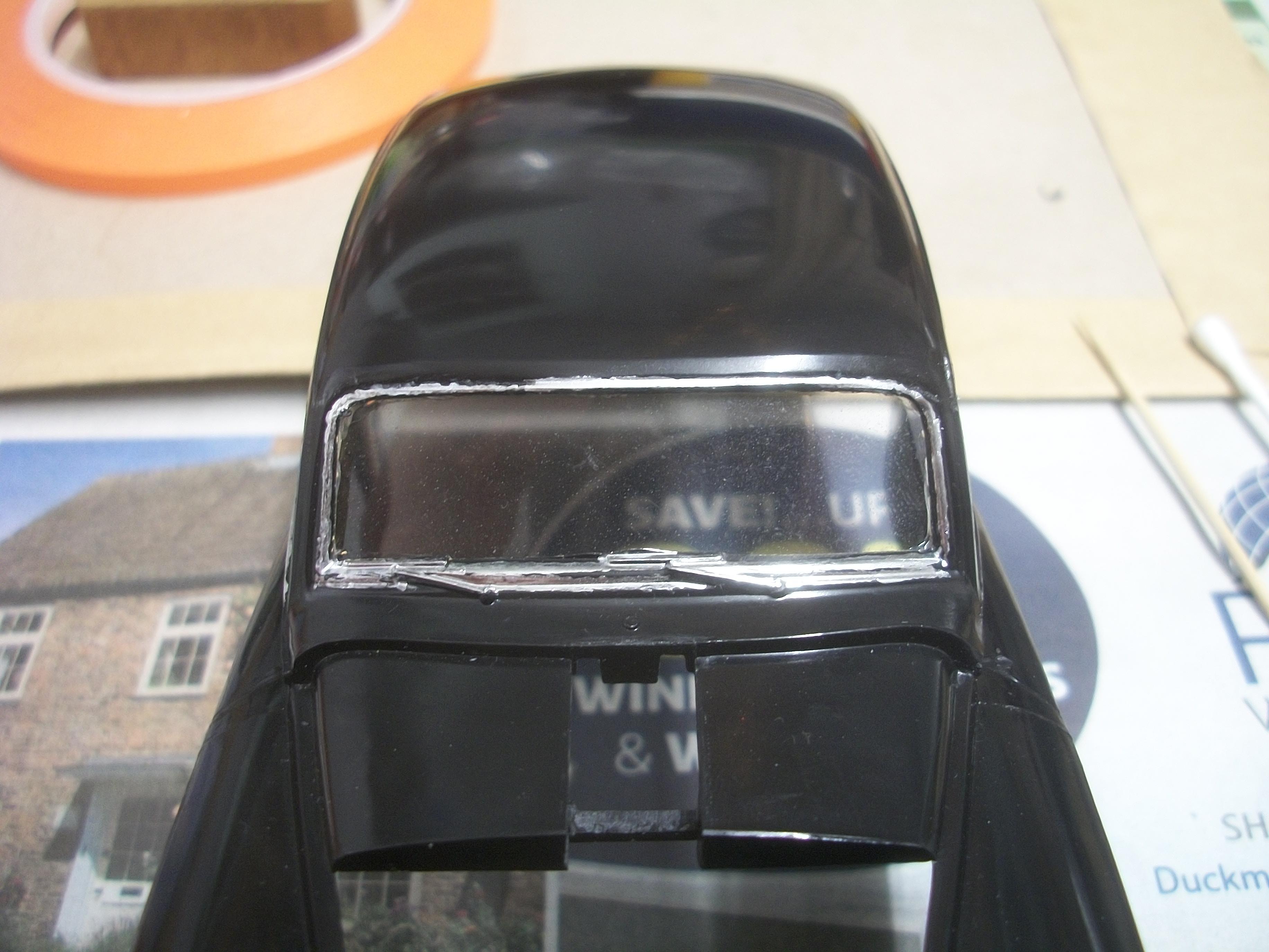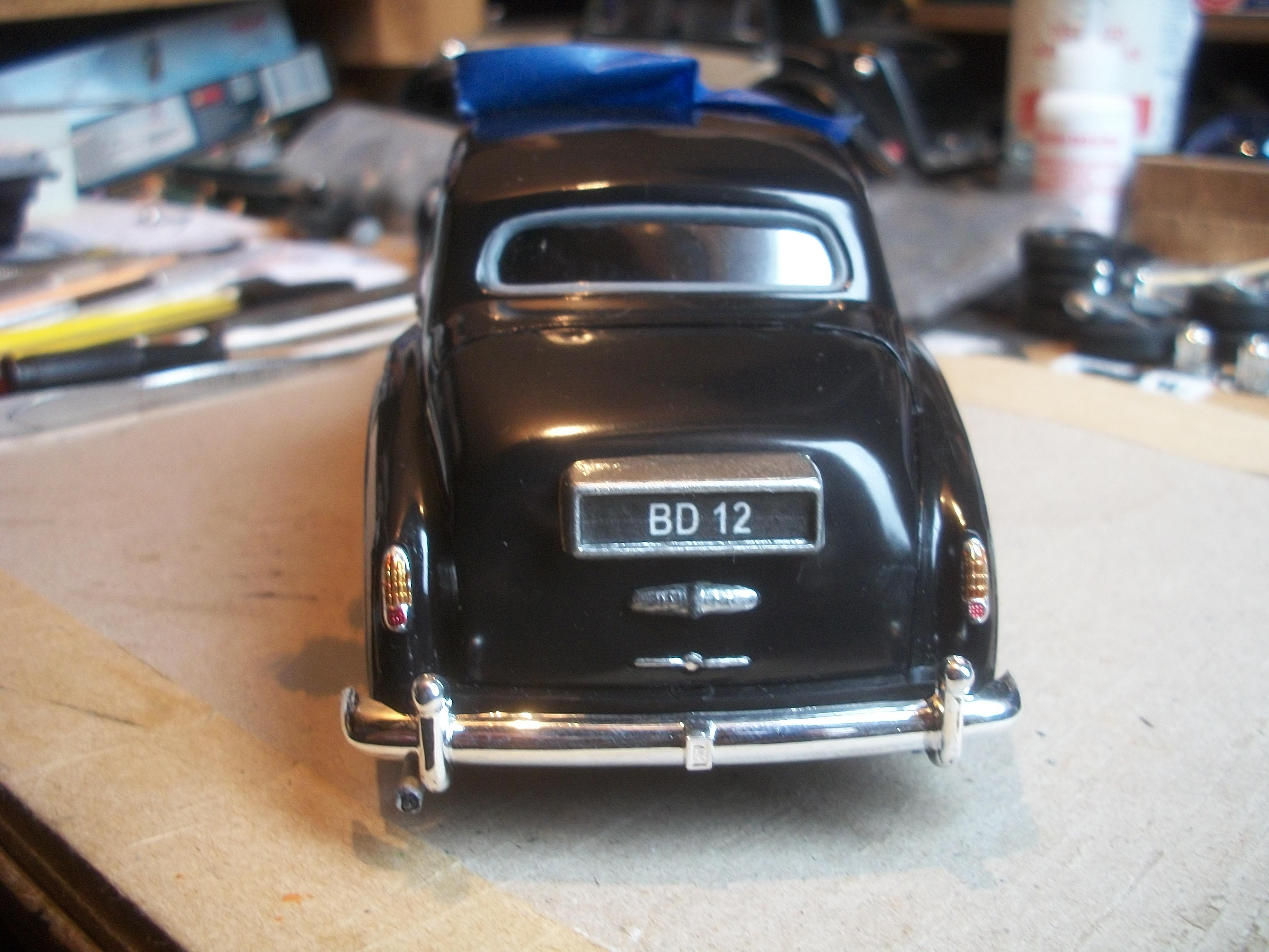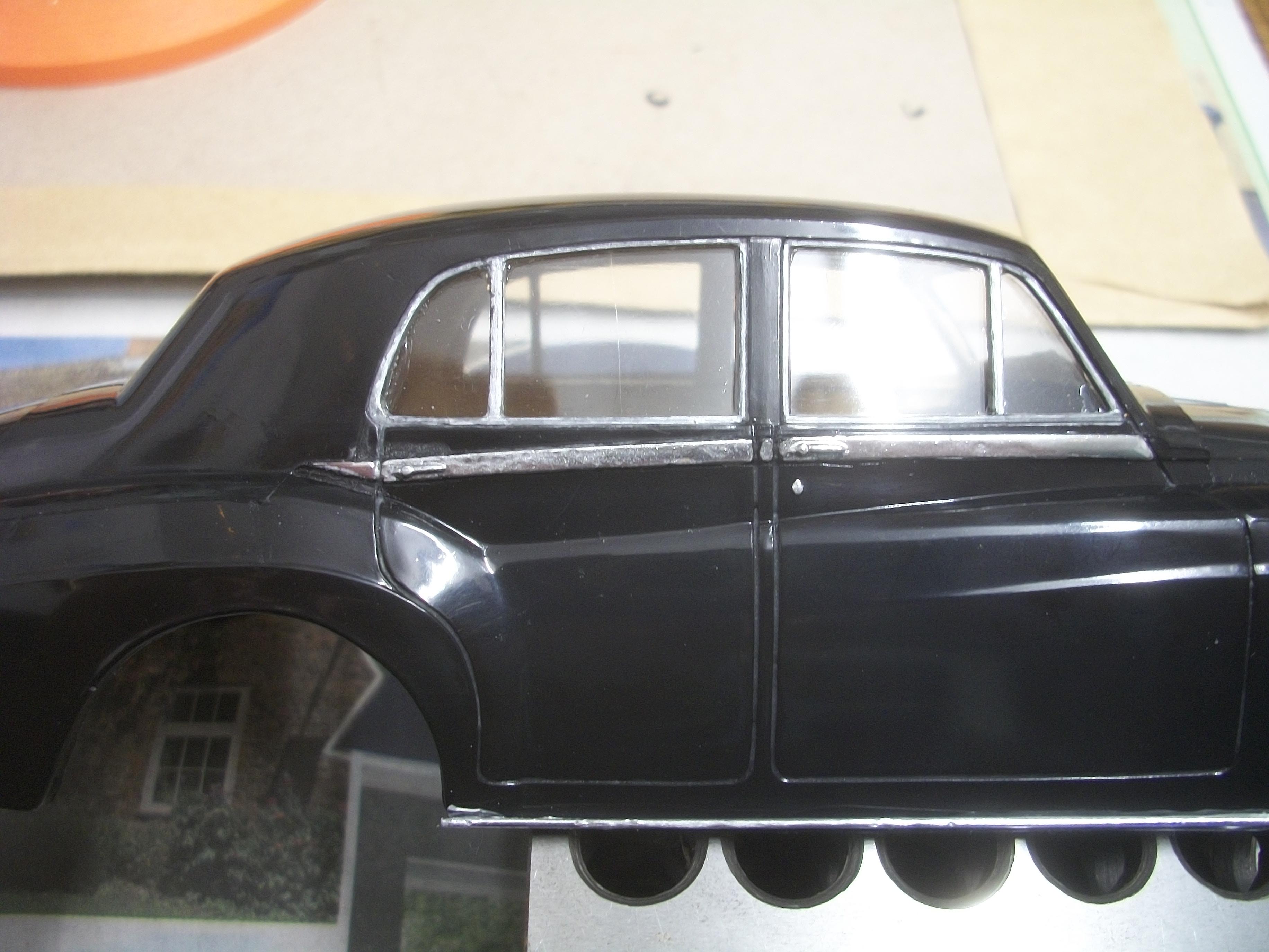 Anglia105E Posted 3 hours ago Author Posted 3 hours ago The interior dashboard mirror and stalk are being prepared to mount on top of the dashboard in the centre, where I have drilled a hole at an angle. This mirror needs to be chromed on both sides and it is made from a short length of metal paper clip which is glued to a small piece of sheet styrene . . . Having removed the masking tape from around the windshield, I can see that there is some bleeding of the chrome along the top edge. I am in the process of tidying up this excess chrome, and the two front air intakes have been chromed. These are being improved also, where the liquid chrome has run into the intakes. At the rear of the driver's side door strips there was a small amount of excess chrome that I have removed successfully . . . Some marks on the passenger side front wing were removed by further polishing, but in doing so, I caused the sill molding to fall off. This is now glued back in position . . . None of this is particularly interesting work, with most of it being cleaning up or correcting errors. Progress remains rather slow. To the right of the steering column and behind the steering wheel, there needs to be a stalk and triangular shaped box for the automatic gear selector. This will be quite a tricky part to make, but I am hoping to find the best way of doing this ( see last photo of the following series ). David