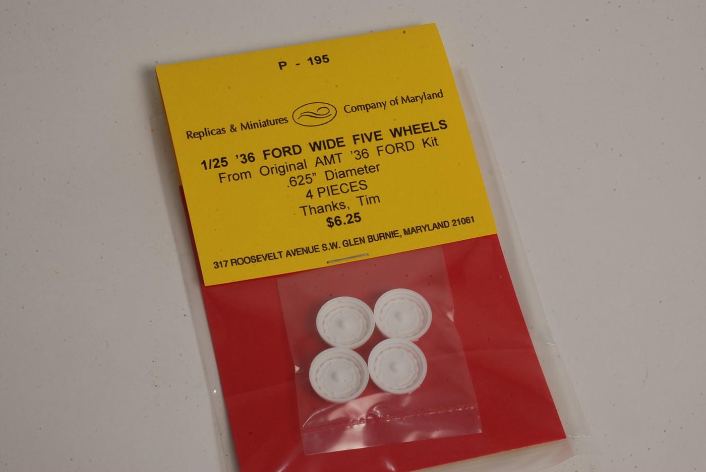 blizzy63 Posted 23 hours ago Posted 23 hours ago (edited) 7 hours ago, tim boyd said: Highly unlikely IMHO. Meanwhile, you can actually get perfect reproductions of these wheels - the originals that were only present in flawless form in the very earliest production of the c.1961 release of the AMT Trophy Series 1936 Ford - from Norm Veber at Replicas and Miniatures of Maryland (and as shown on the cover of the current issue of the magazine covering all forms of scale modeling)....TB Thanks, Tim. I just really appreciate it when Round2 improves-by-restoring the older AMT/MPC kits. They've been doing so for the last decade and I will continue to cheer them on and $upport them. Also thanks for directing us to Norm Veber's great work at R&MofM. The photo I used above is, I believe, one of his recent products (P-195). I've old just learned of this item yesterday since my R&MofM catalog is a few years old. Highly recommended! [Your previous Forum posting on the subject: Edited 23 hours ago by blizzy63