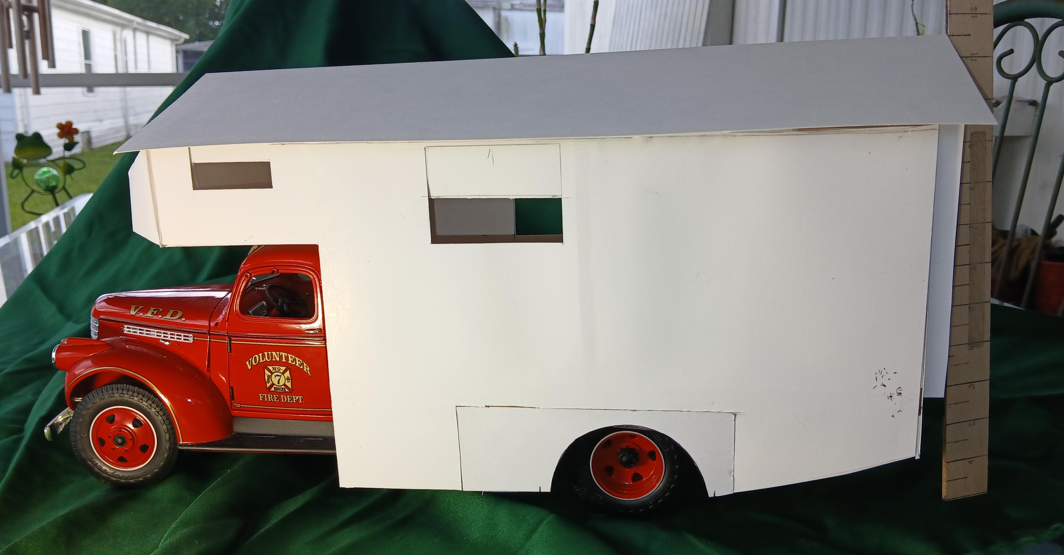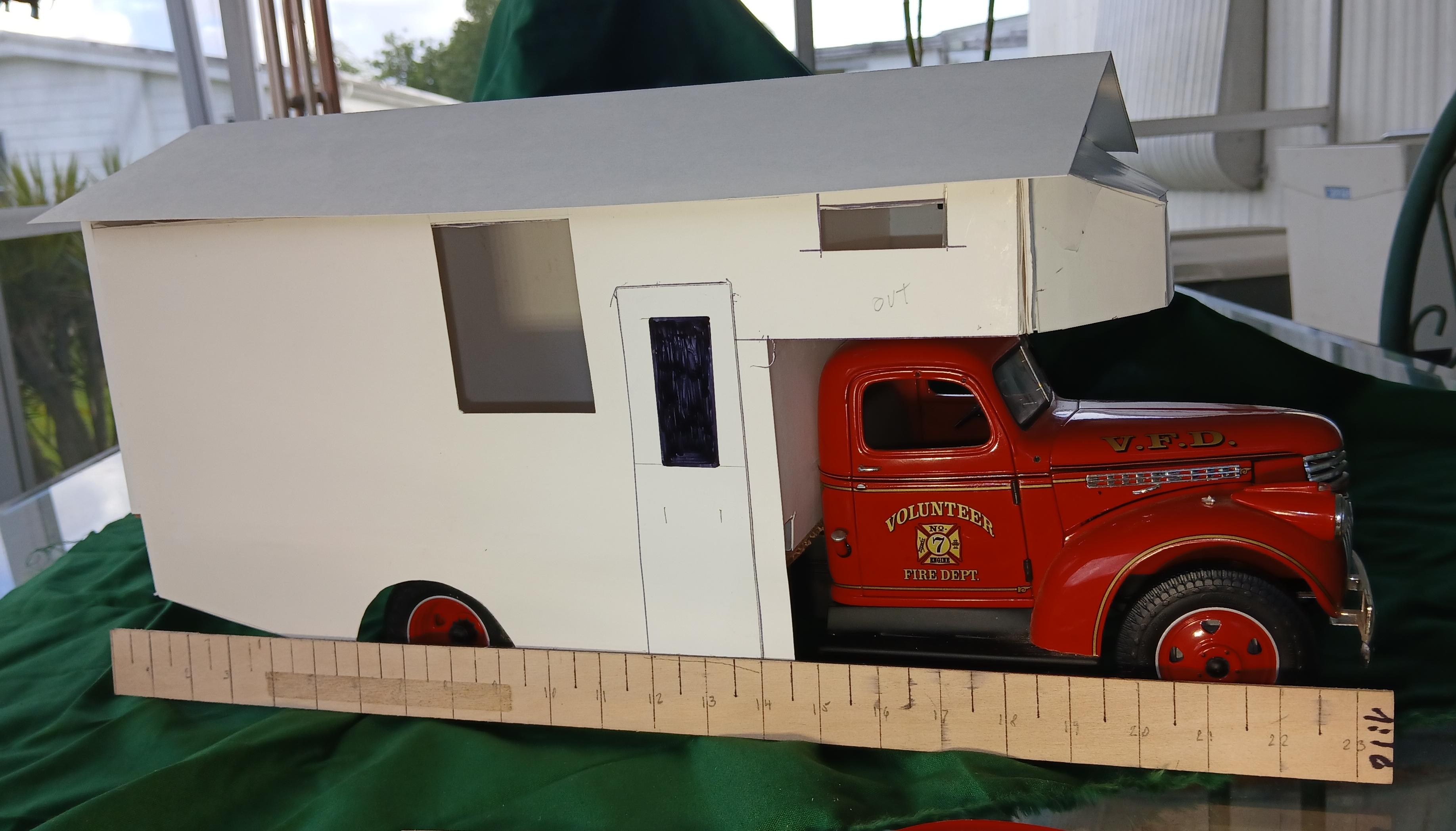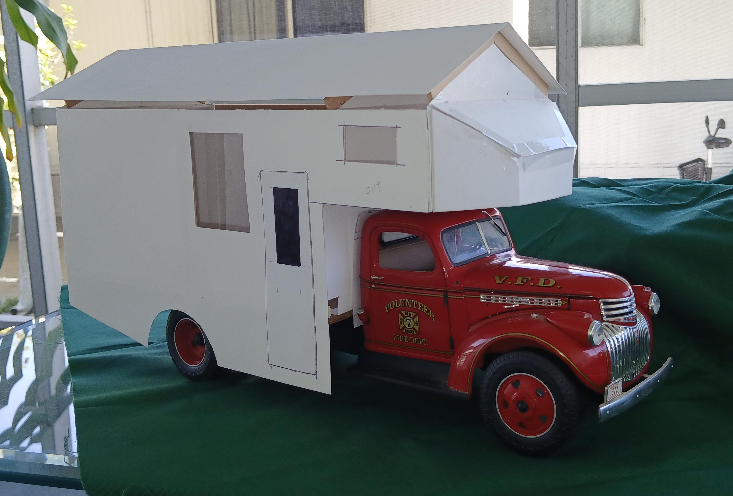 Big Messer Posted September 22 Posted September 22 Just got a 1941 Chevrolet 1/16 scale fire dept pump truck (probably an Ertl copy) with missing parts for $9.99 so I am going to turn into a house truck, pretty much like the one I posted before, but far more detailed. Plans are not final yet, will make a paper mockup first to see how things look. Probably to make smooth sides to imitate plywood and metal panels roof. Also want to make a detailed interior. Materials to be used would be thin plywood, styrene and/or aluminum sheet. Ideas that would make sense welcomed but will be subject to approval by management. 3