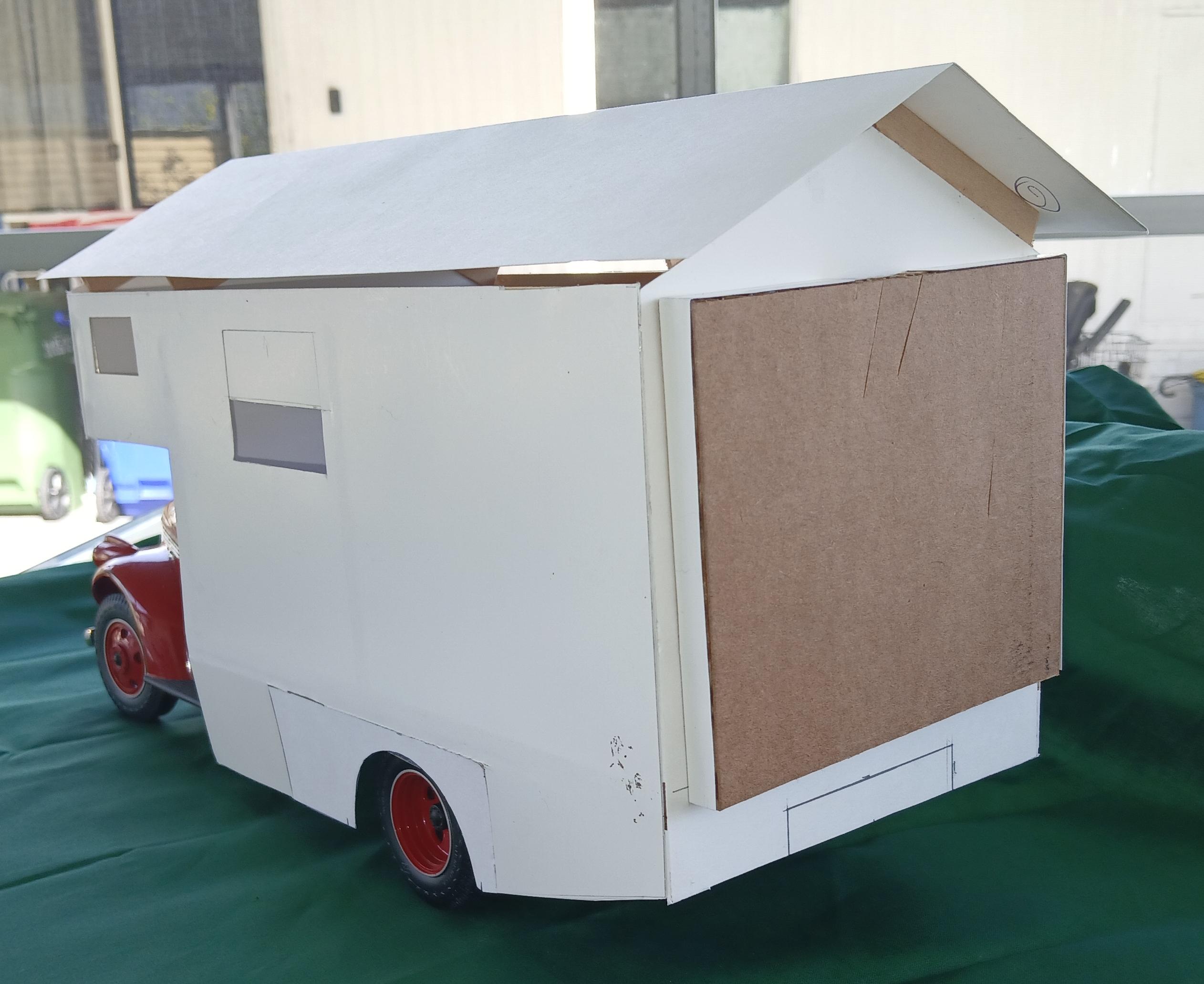 Big Messer Posted September 22 Author Posted September 22 (edited) The thing will be a 18" monstrosity. Want to keep the cab red with the lettering. Rear verandah will be foldable up with handrails (brass?) that will be collapsible flat before raising it with a roll canopy on top. Check scribbled notes scattered all over. Will have an opening on the rear cab wall to go into the house. Rear of cab opening idea discarded. Put a side door instead right behind cab. Edited September 30 by Big Messer