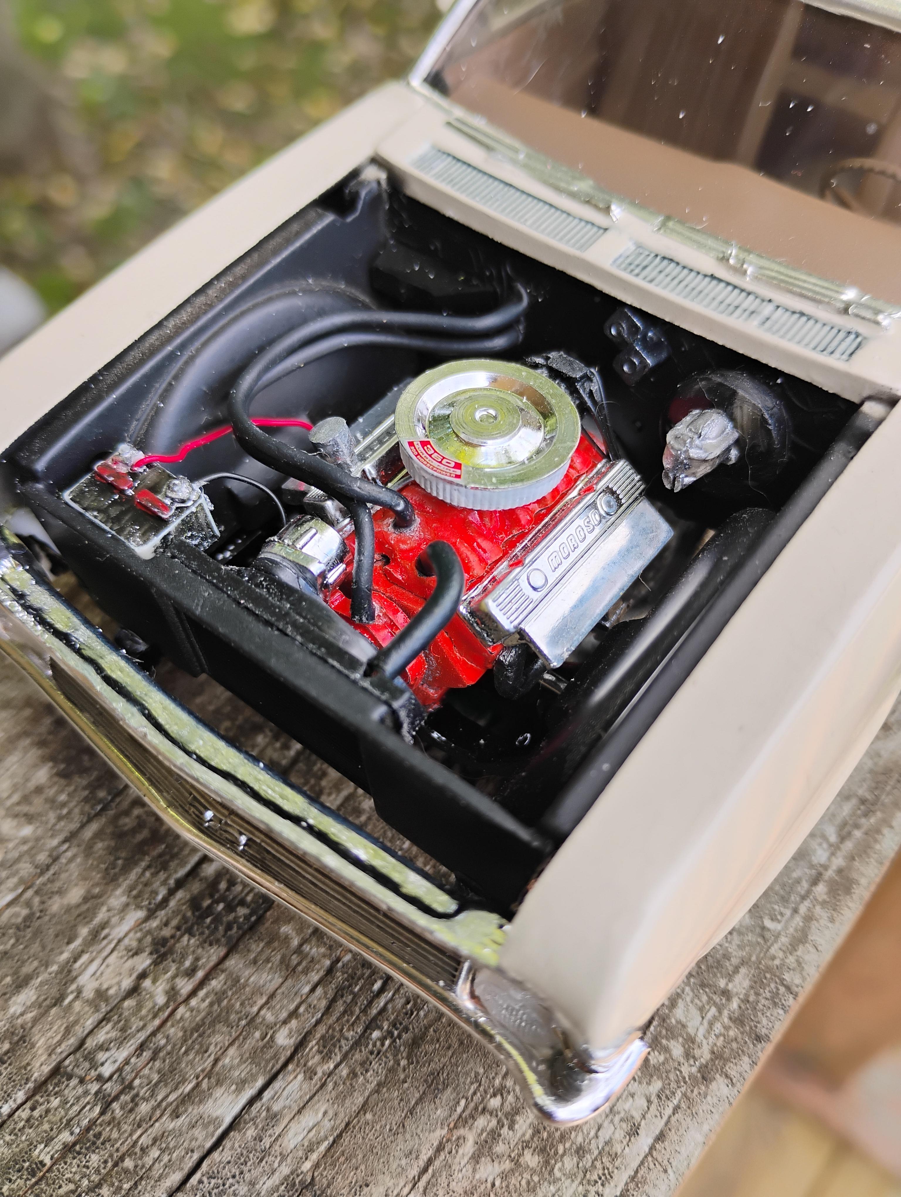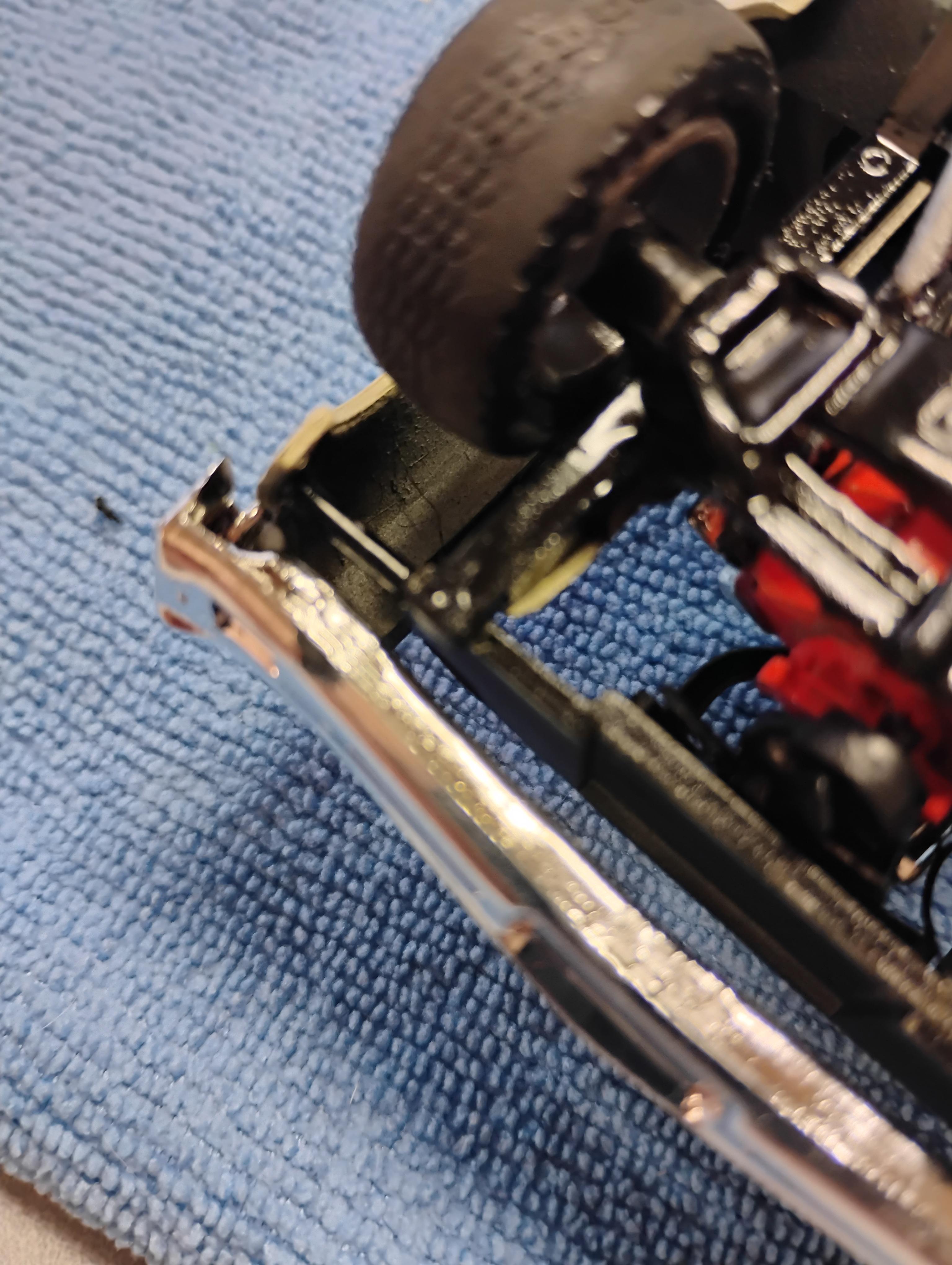 Sledsel Posted 6 hours ago Author Posted 6 hours ago (edited) 4 hours ago, Evan_N said: That looks great. What are the problems with the kit that people are complaining about? A lot of complaints about the separate fenders, lack of detail and of course the dreaded mold lines (It is a 50 year old mold.... STHU) I'll go by order of things I found. A mold depression at the top of the doors near the fender. Little putty, sanding, done. With the interior in the body, the chassis sat crooked. I shaved off some of the driveshaft hump from the center to the rear with a sharp knife and did the same to the bottom of the interior tub. Then I could adjust while assembling. Fender install was pretty easy and done before painting. Rear of the fender sat a bit high to my eye so some sanding to the underside of the fender and it looked good. I taped the hood in place to align the fenders. At this time I double checked fender to door gaps. I may have sanded the fender a bit to have the gap even, not sure though. Once I was happy with gaps, the fenders were taped in place also and glued from below. After the glass and interior was in place the wheels seemed to far toward the rear. I thinned out the interior tub and rear wheel wells where they made contact. Fixed. Now, what I considered the biggest dilemma was the front of the fenders seemed tucked in to far and the little pins that align the fenders and bumper/grill would not hold the fenders out. First thing I did was glue some evergreen to the backside of the grill where the little pins are to give a better mounting/aligning surface. Then I took and old sprue piece and placed it between the bottom of the fenders to the correct location. This took a bit of cut sprue/check fit/trim, repeat. Once happy with width I cut some braces from some round evergreen and glued between the frame and fender on each side (very similar to what a 1:1 has) Once dry, remove the spacer and install grill and bumper effortlessly. I attached a photo of the little brace I added. To me, none of this made it "unbuildable" as I have seen said about this cool old kit. Edited 5 hours ago by Sledsel 2 2