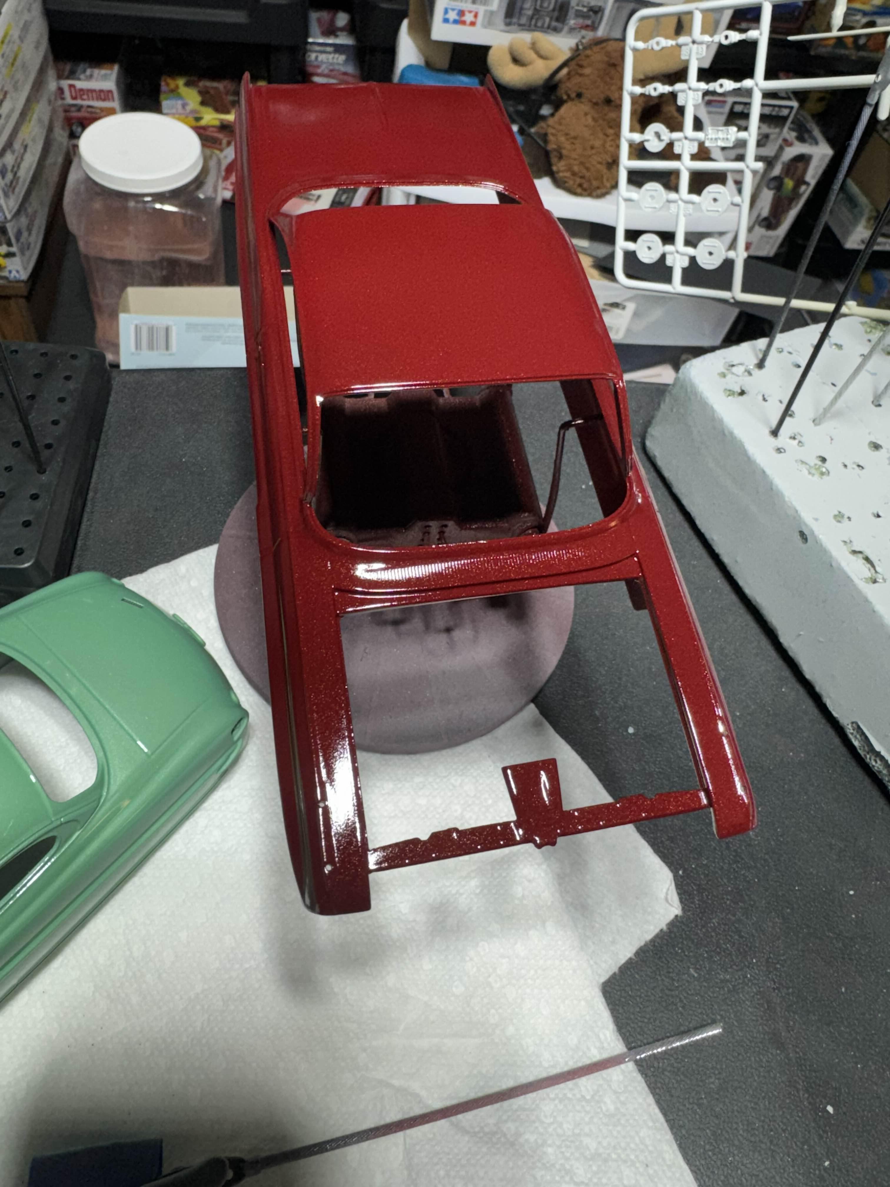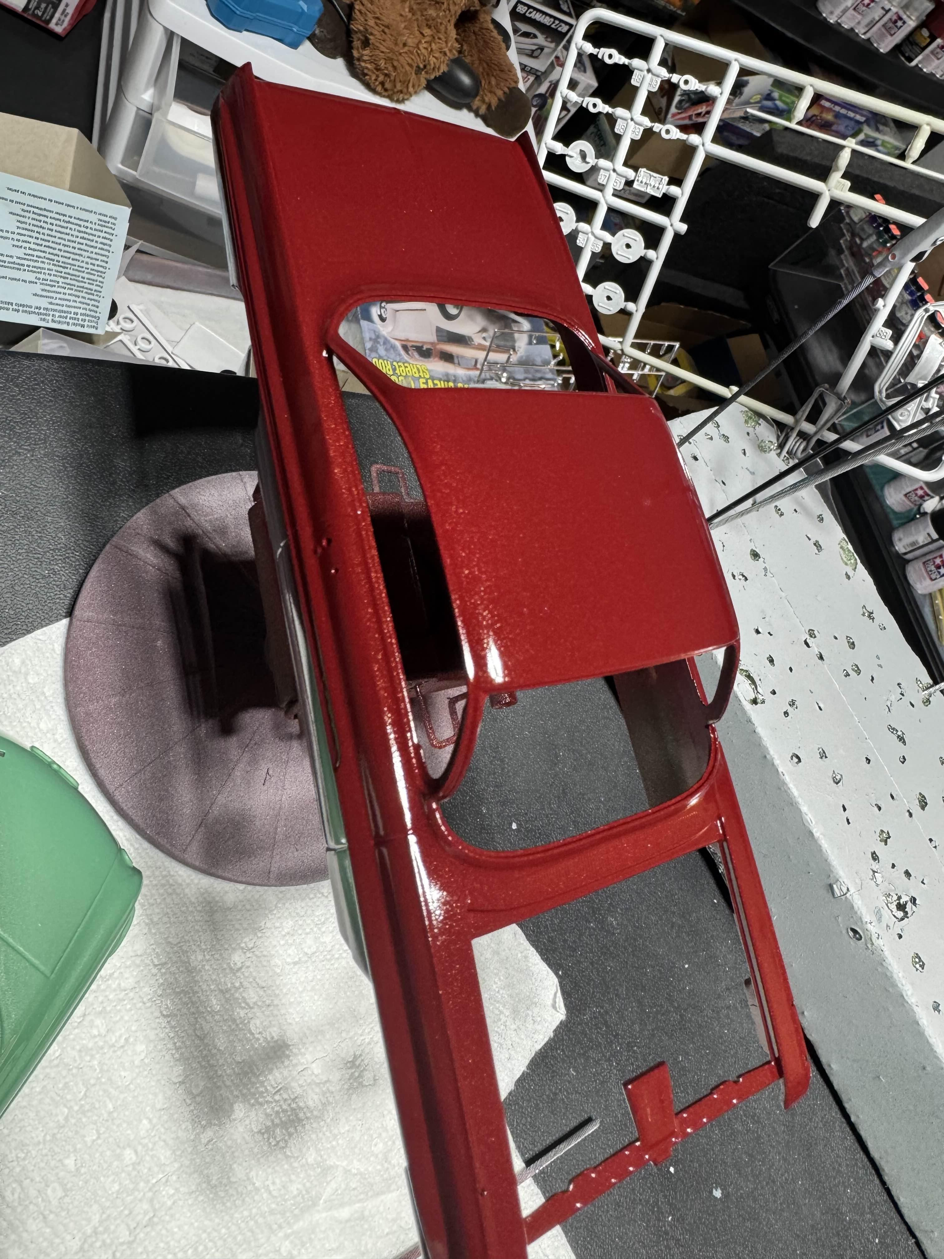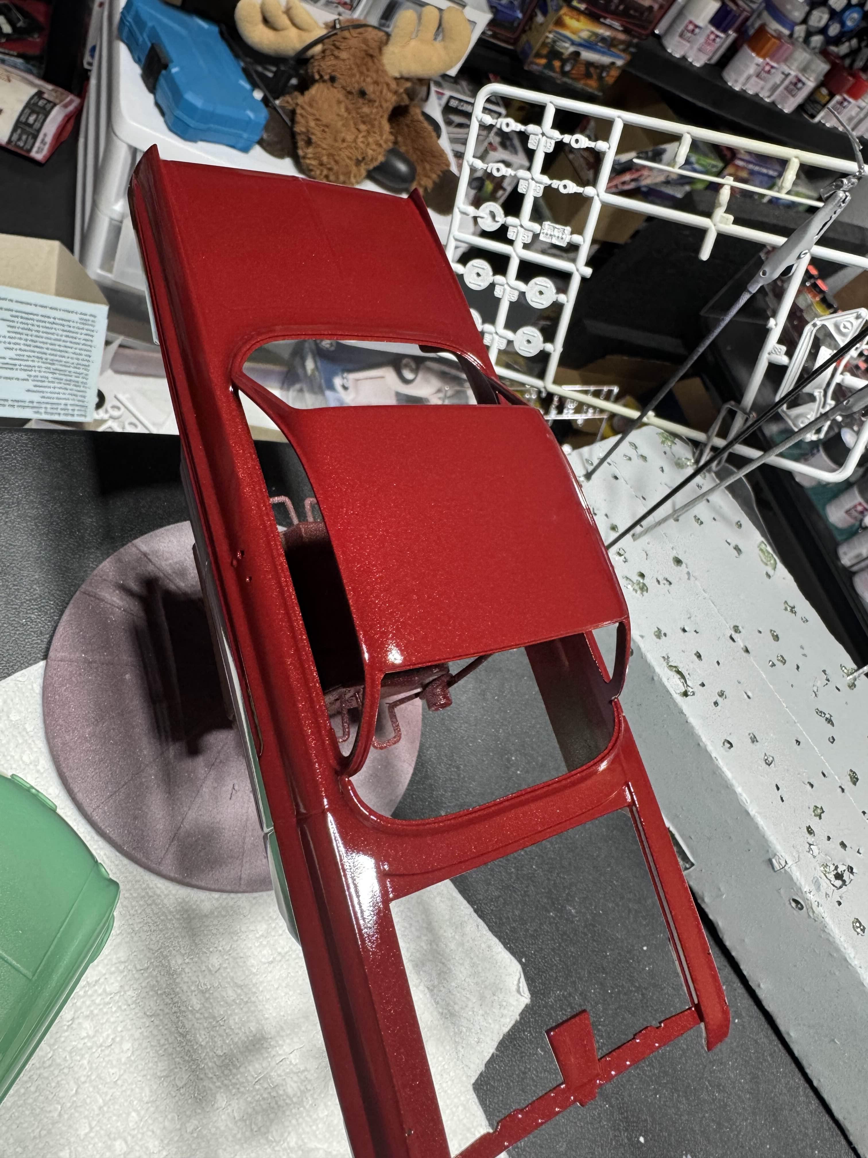 meechum68 Posted 6 hours ago Author Posted 6 hours ago 1st coat of gloss is on, 2nd coat of paint on the hood. Will get both in 2nd coats of gloss then it's decal time. Then I can truly focus on the chassis, engine and interior.