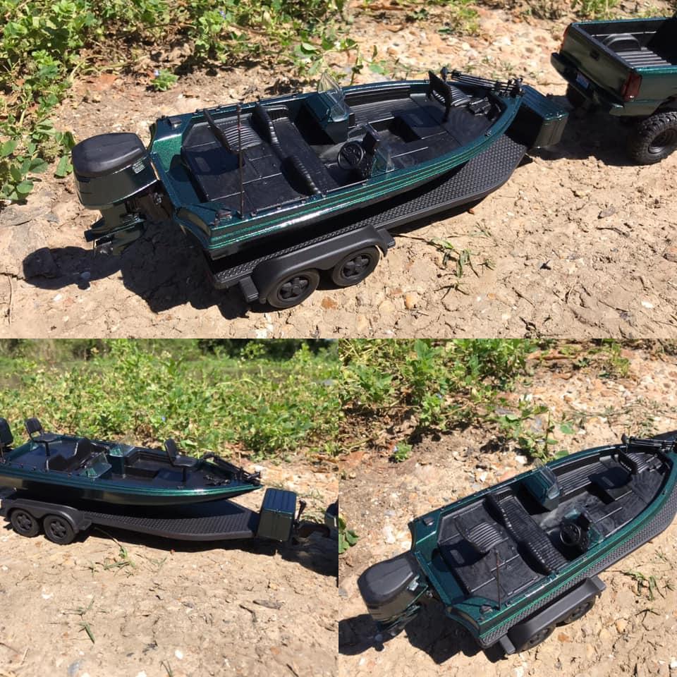 Lemcoplasticworks Posted 9 hours ago Posted 9 hours ago I don't build many lifted trucks but when I got my hands on this bass boat I had too. I used the lift kit from the lifted 4 runner kit along with the wheels. My only regret was not finding some wider wheels or making some spacers to push these out a little more. The build is pretty much box stock aside from the lift and wheels. Painted the bass boat to match the truck. 1