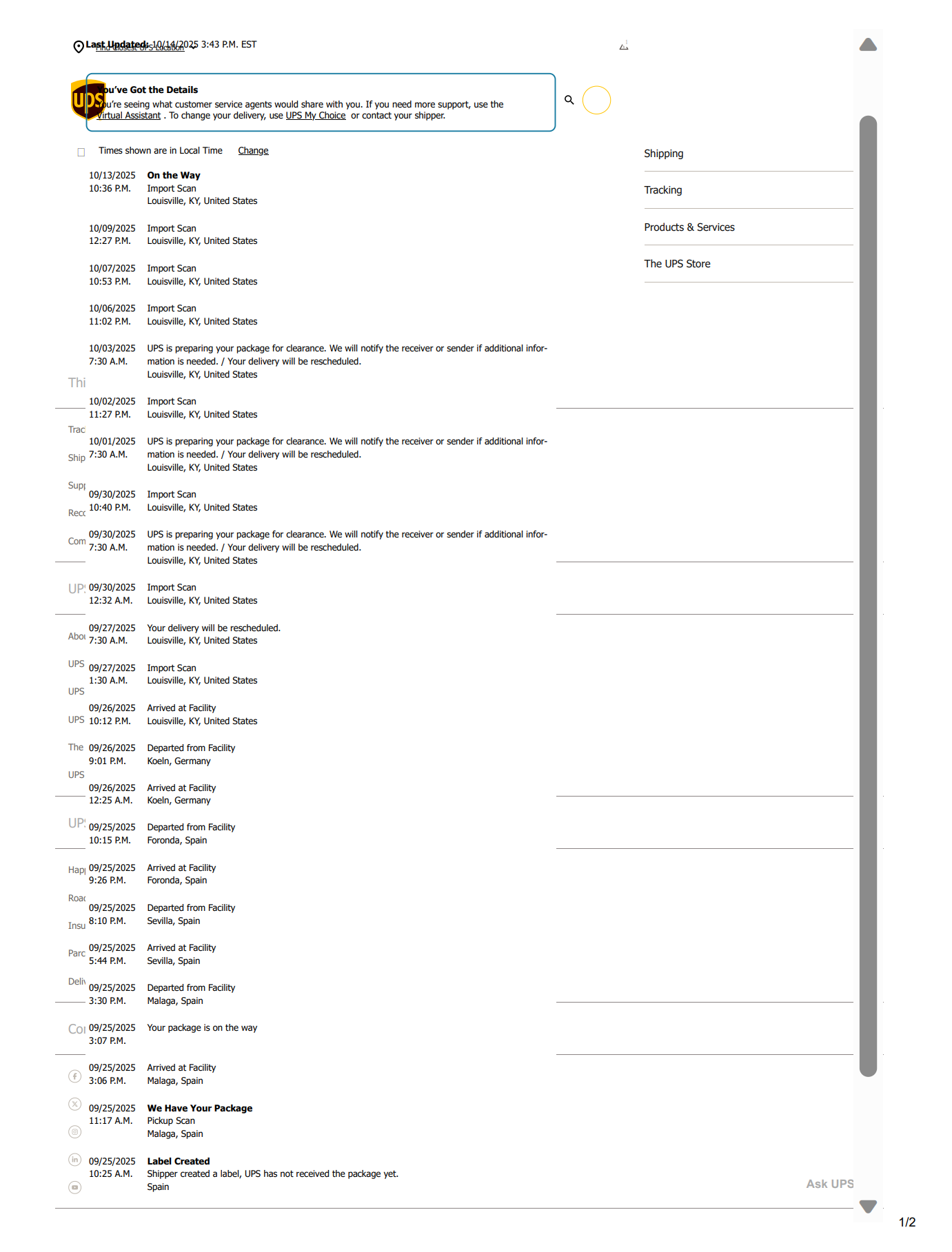 Beans Posted 11 hours ago Posted 11 hours ago 14 hours ago, SpeedAndViolence said: Yeeeeeeeahhh.... So check this out... This is a screenshot of the shipping details of a package that I'm waiting on: This the *second* consecutive package from Spotmodel that UPS has dorked up. This package I'm waiting on, is full of 'store credit' items, stemming from the refund of the *first* package that UPS lost back in March of this year, and didn't bother to refund until last month!! One day to get from Spain to Germany to Kentucky. Several weeks sitting in Kentucky. Our ability to create bureaucracy knows no limits. 1