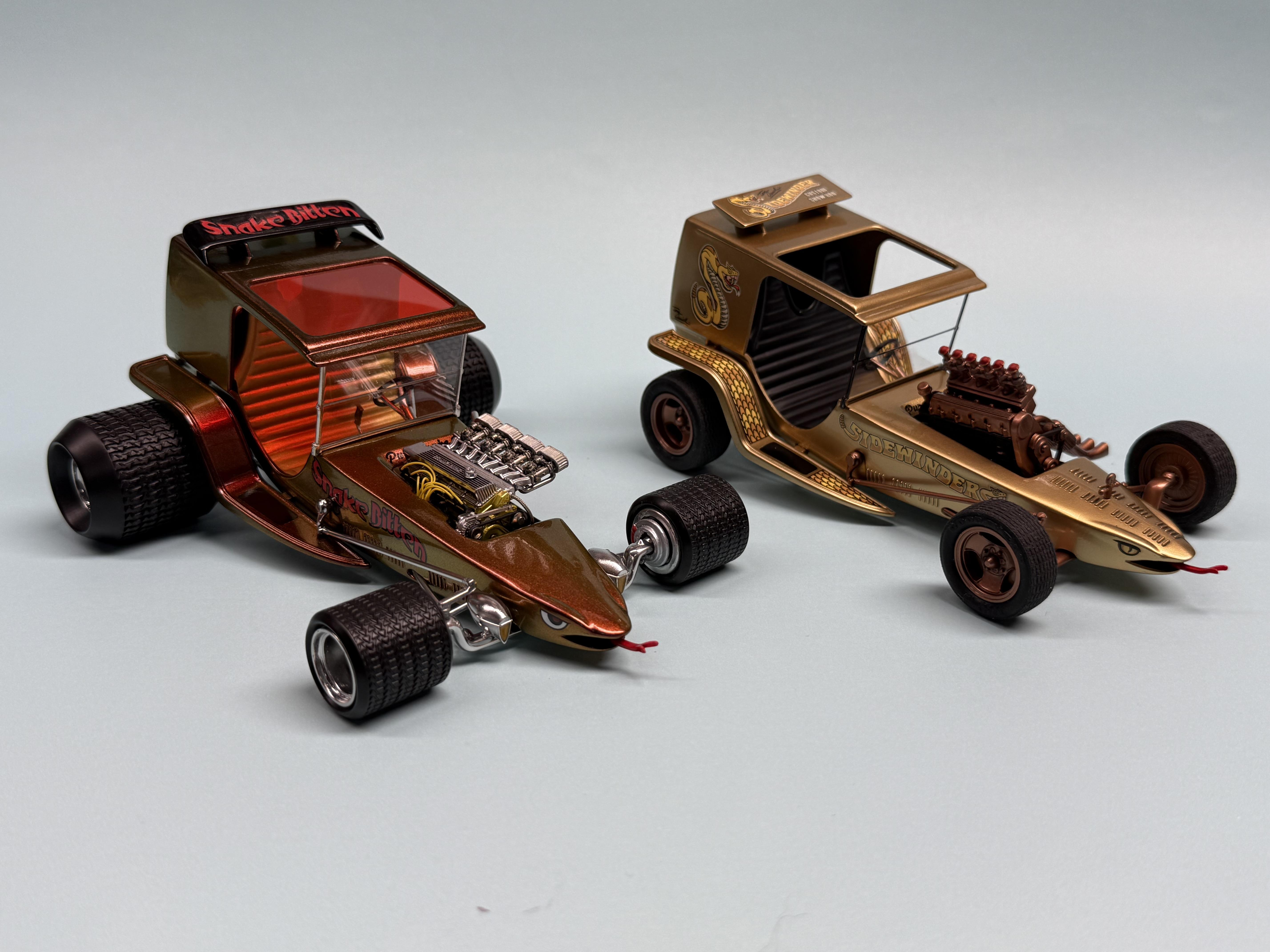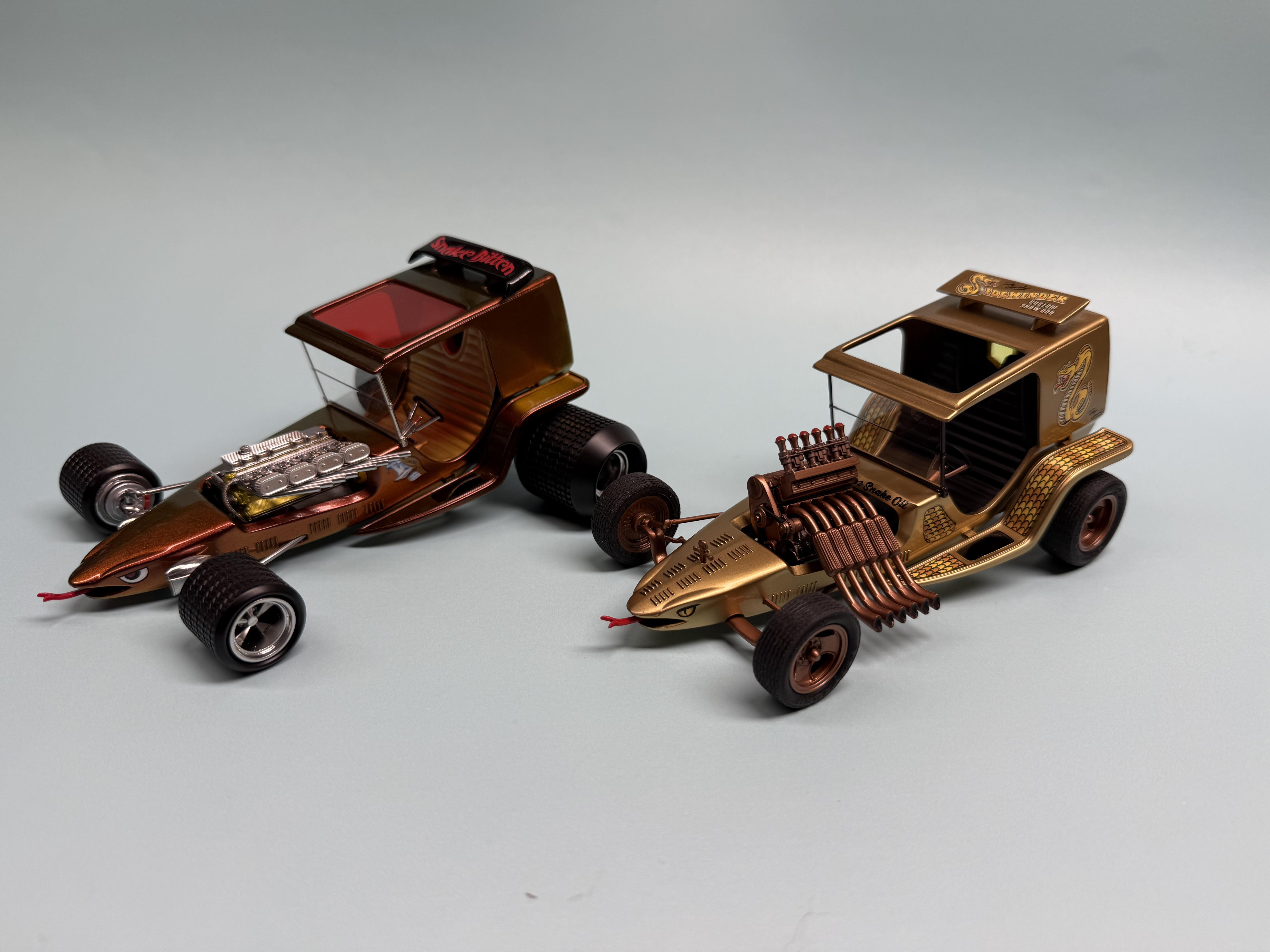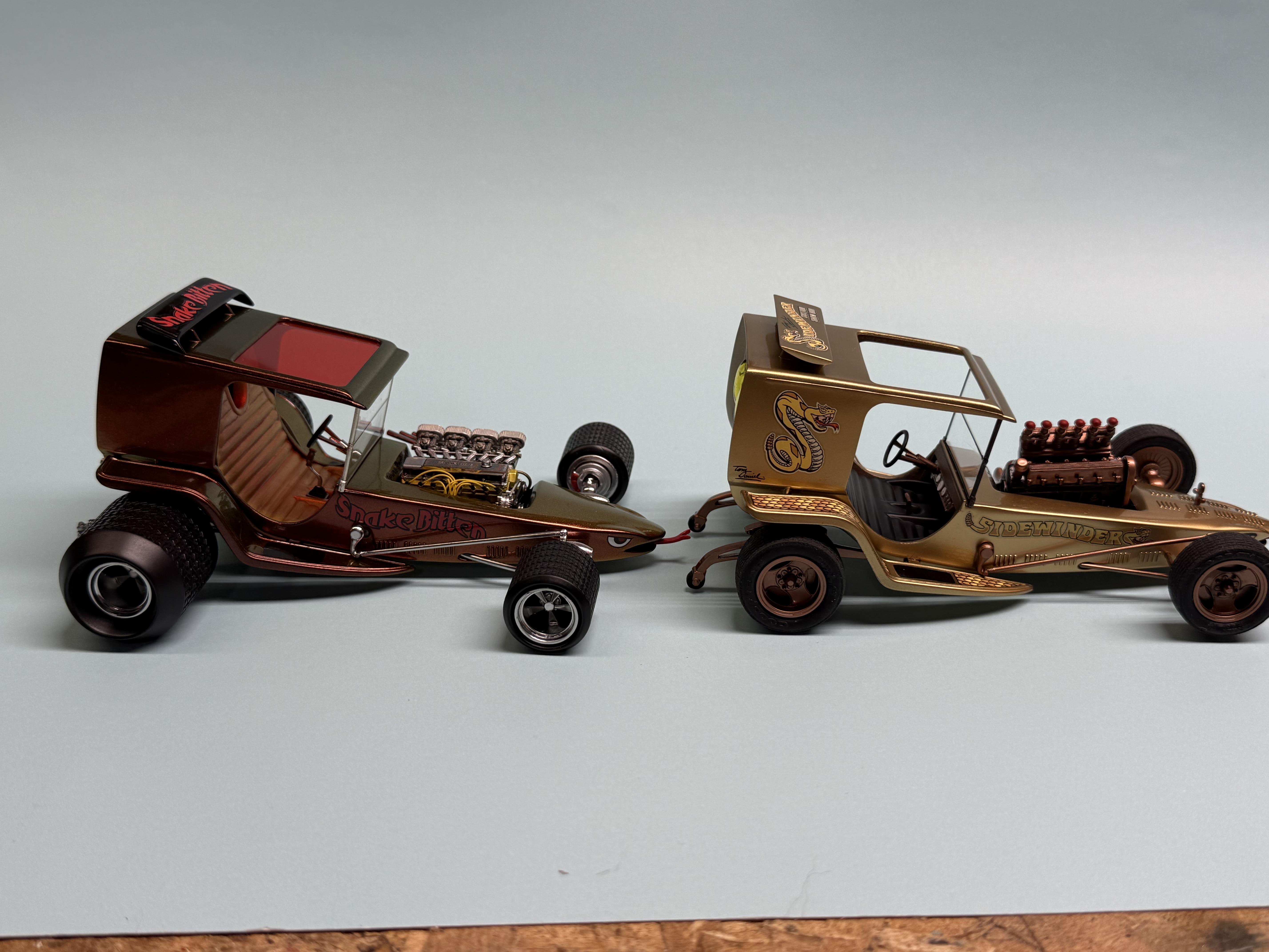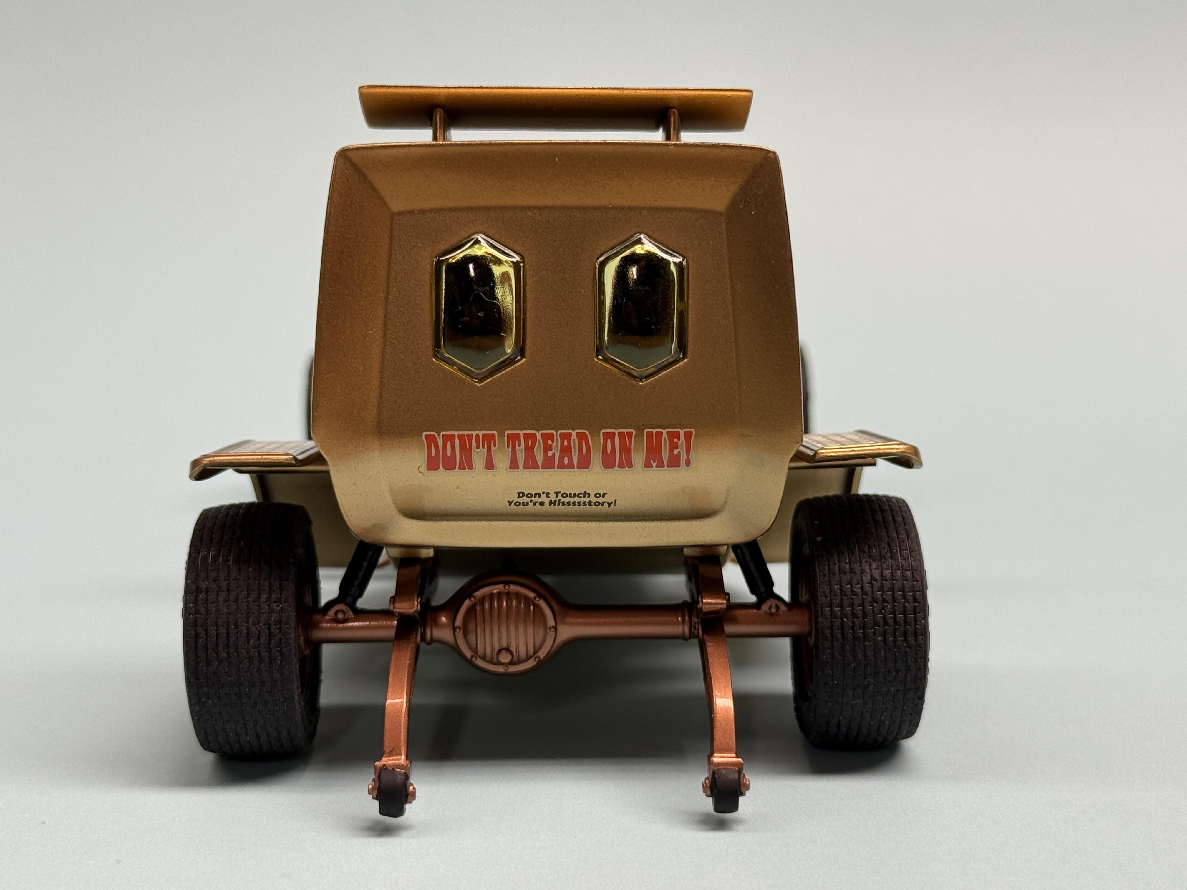 Silvercreeker Posted Tuesday at 09:01 PM Posted Tuesday at 09:01 PM The Sidewinder is done. This was built for Box Stock class and I copied the box art as close as possible. As is with Box Stock, I added nothing that did not come in the box. All body seams were molded together before paint. Color is Alclad Pale Gold. All chrome was stripped and painted Alclad Copper. A simple build to go along with the much more involved Sidewinder “Snake Bitten” built at the same time. Happy Halloween! 5