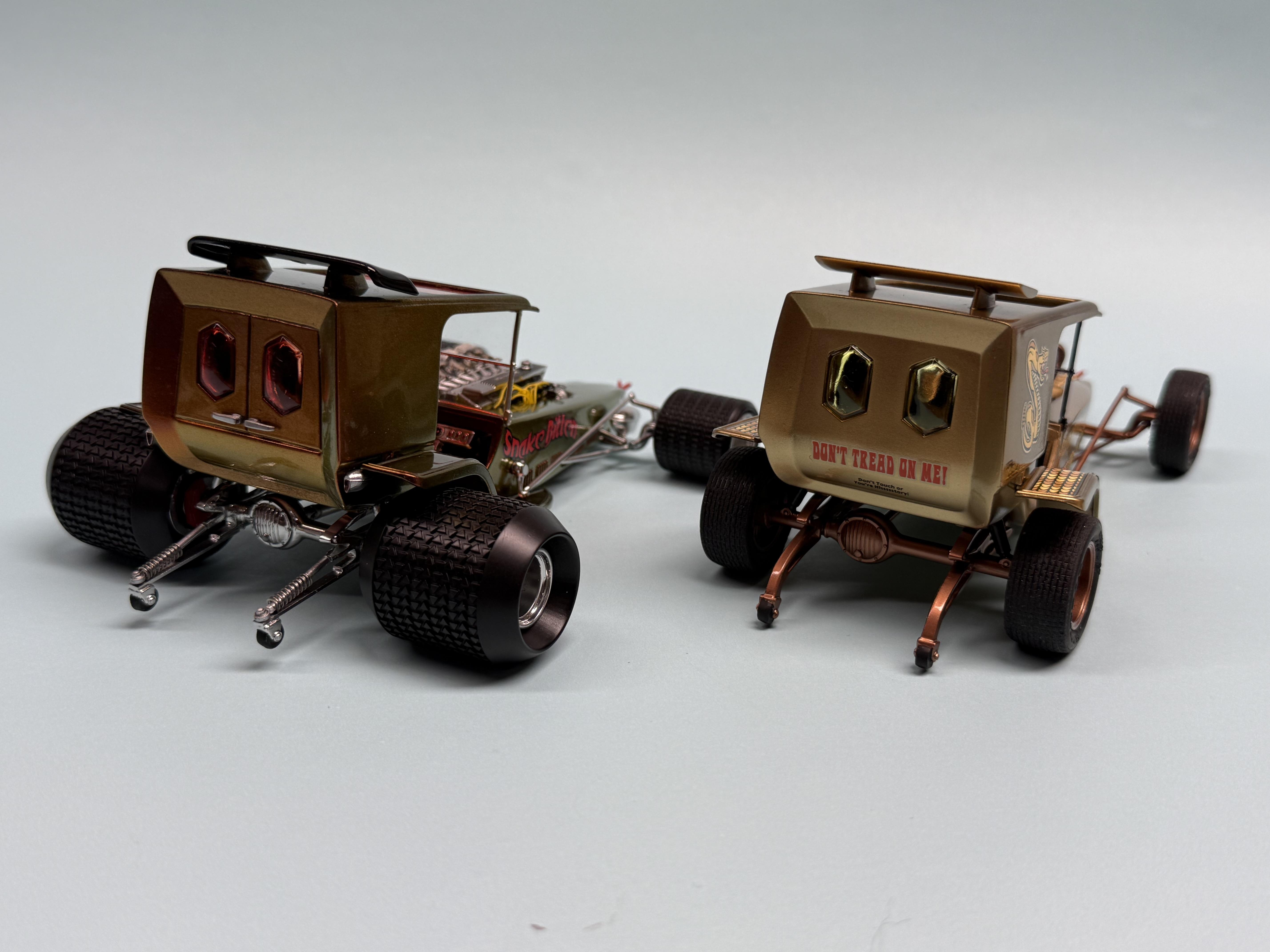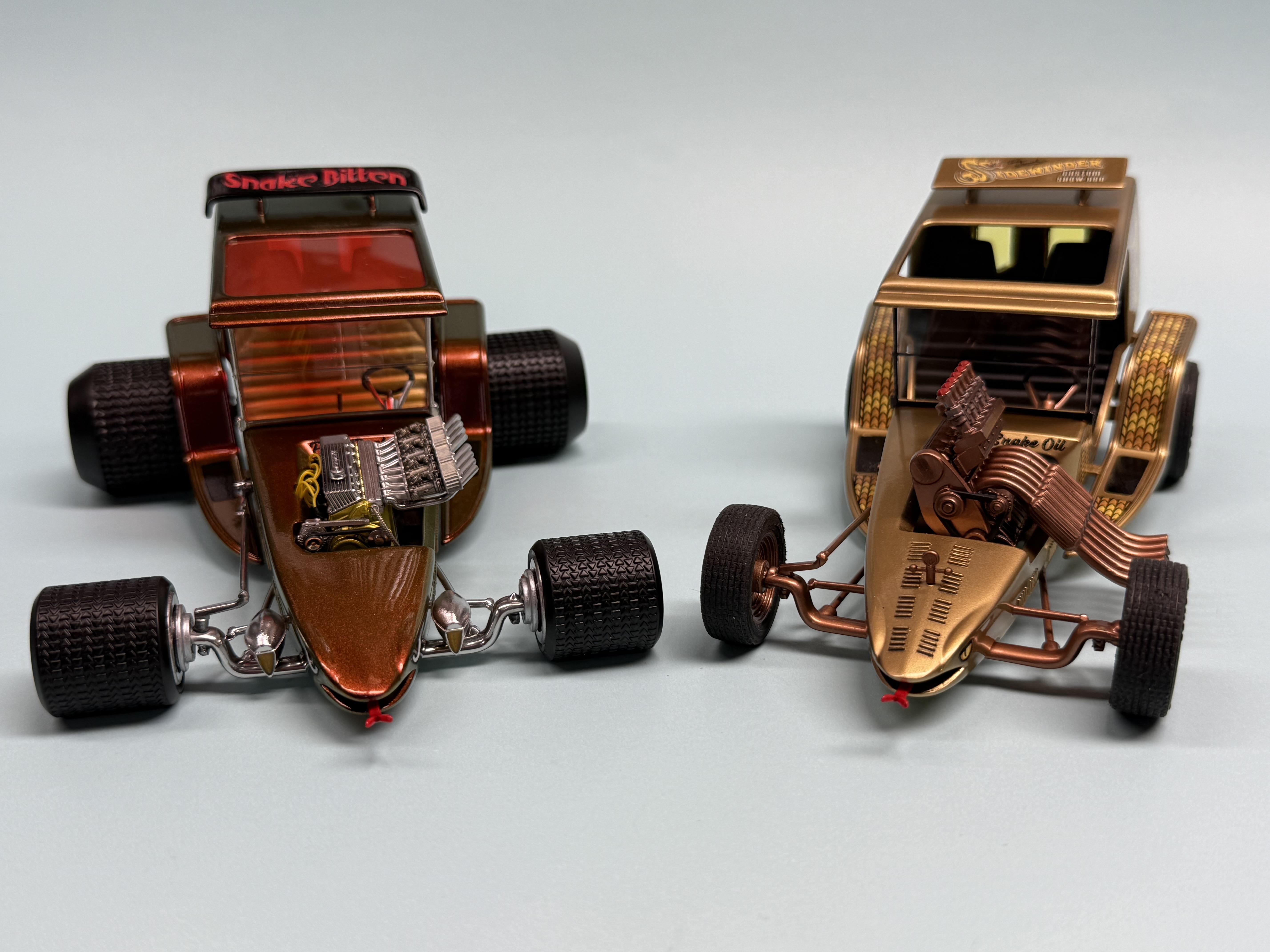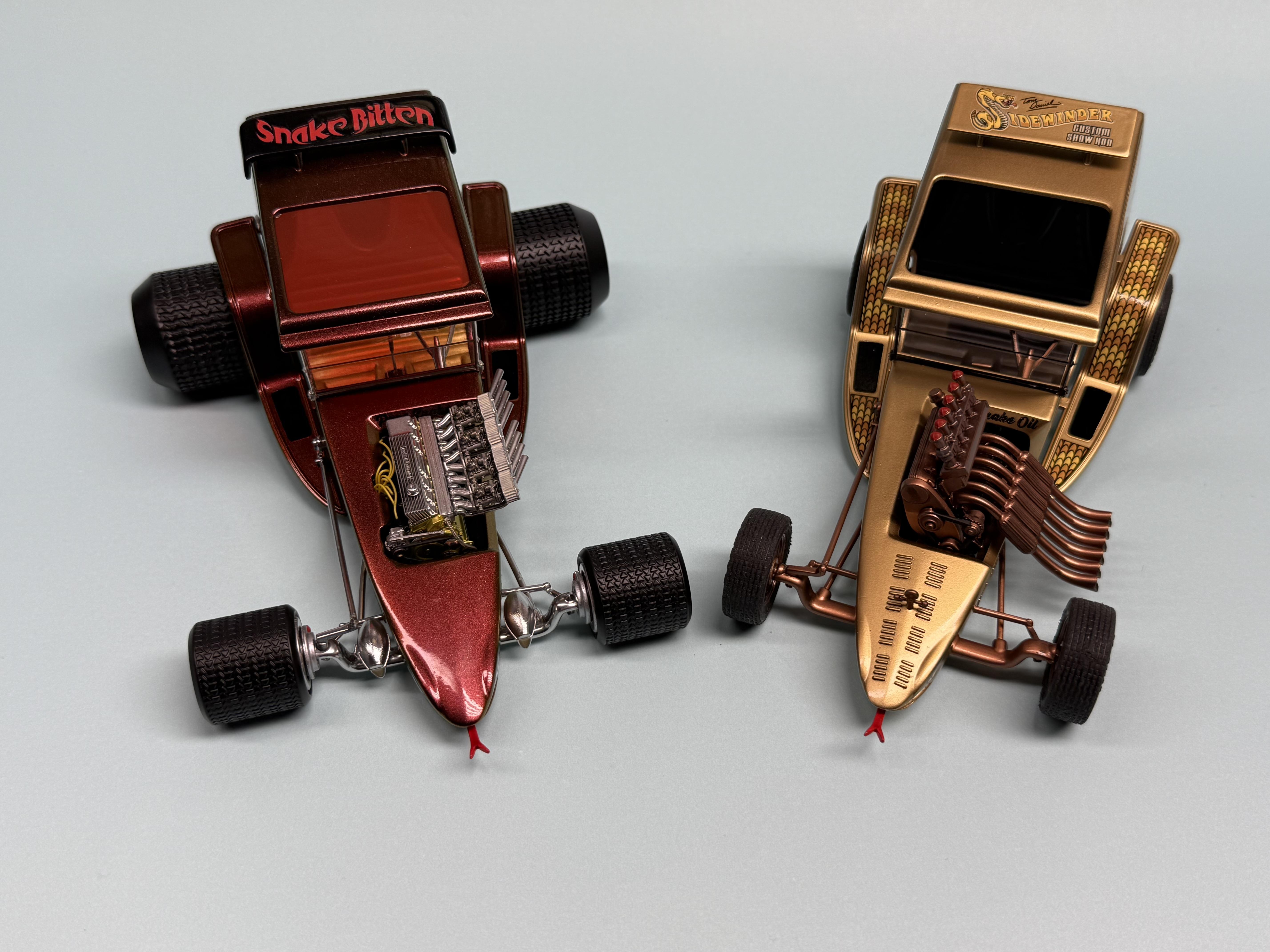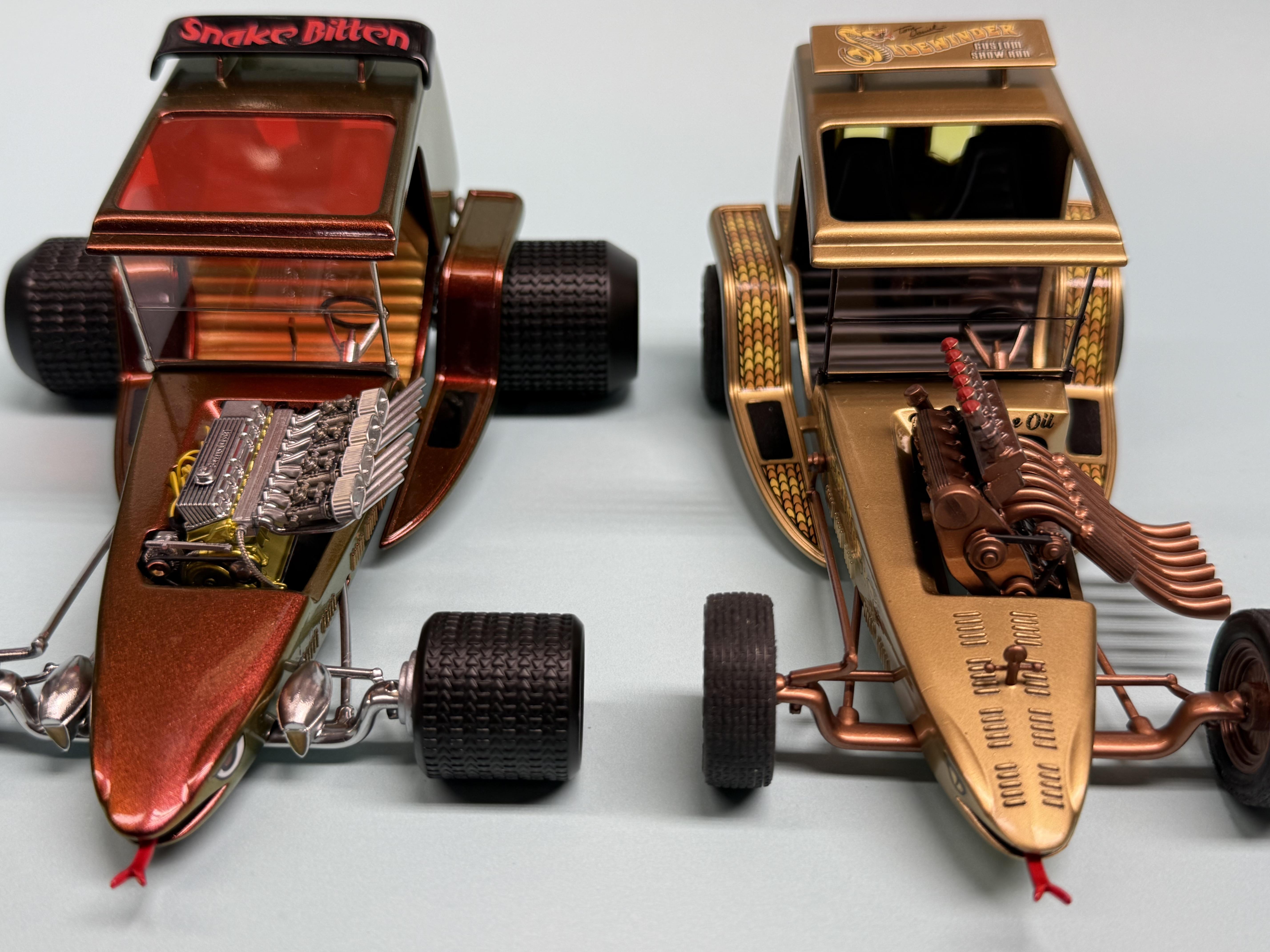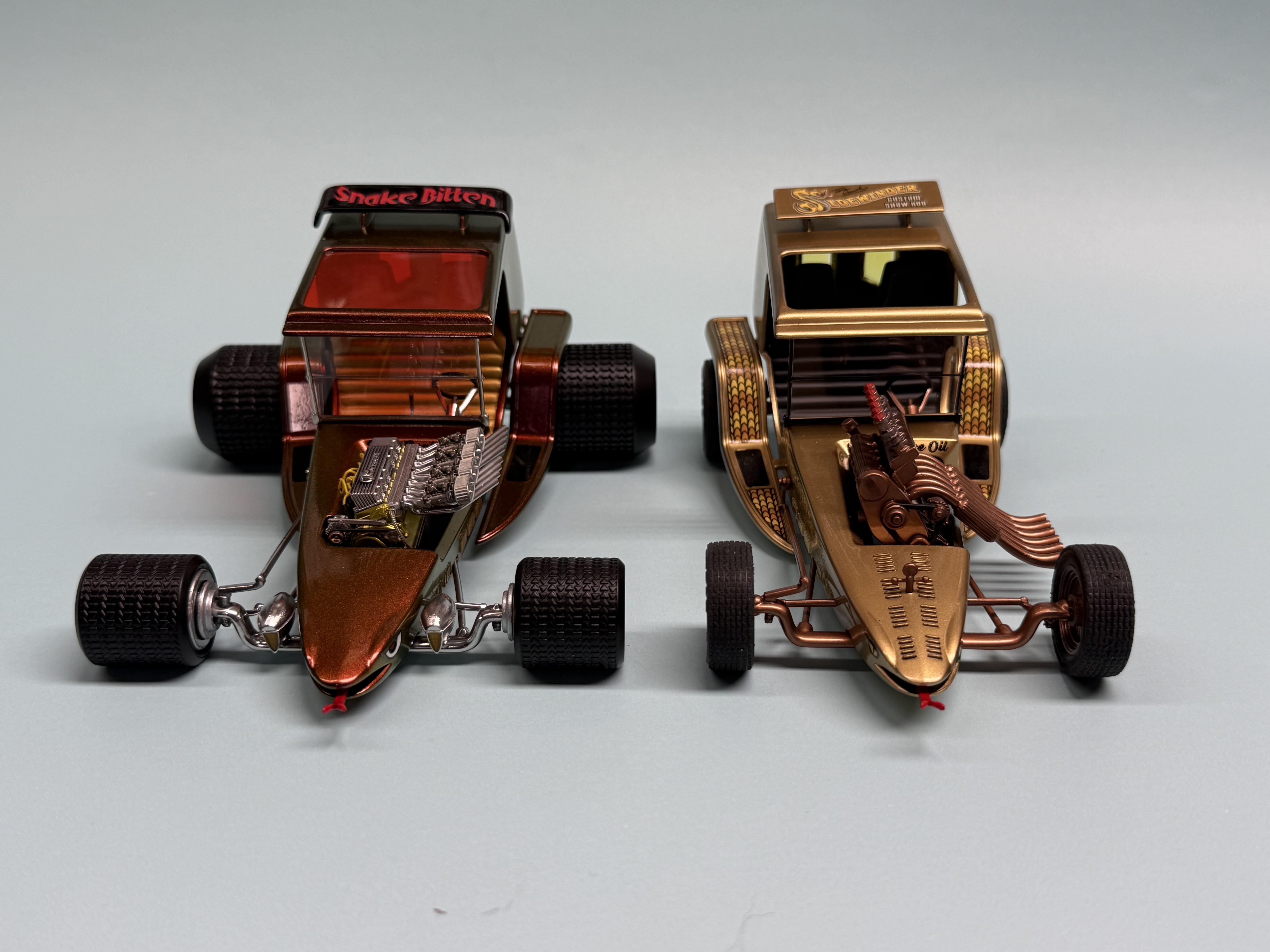 Silvercreeker Posted Tuesday at 09:01 PM Posted Tuesday at 09:01 PM The Sidewinder is done. This was built for Box Stock class and I copied the box art as close as possible. As is with Box Stock, I added nothing that did not come in the box. All body seams were molded together before paint. Color is Alclad Pale Gold. All chrome was stripped and painted Alclad Copper. A simple build to go along with the much more involved Sidewinder “Snake Bitten” built at the same time. Happy Halloween! 5