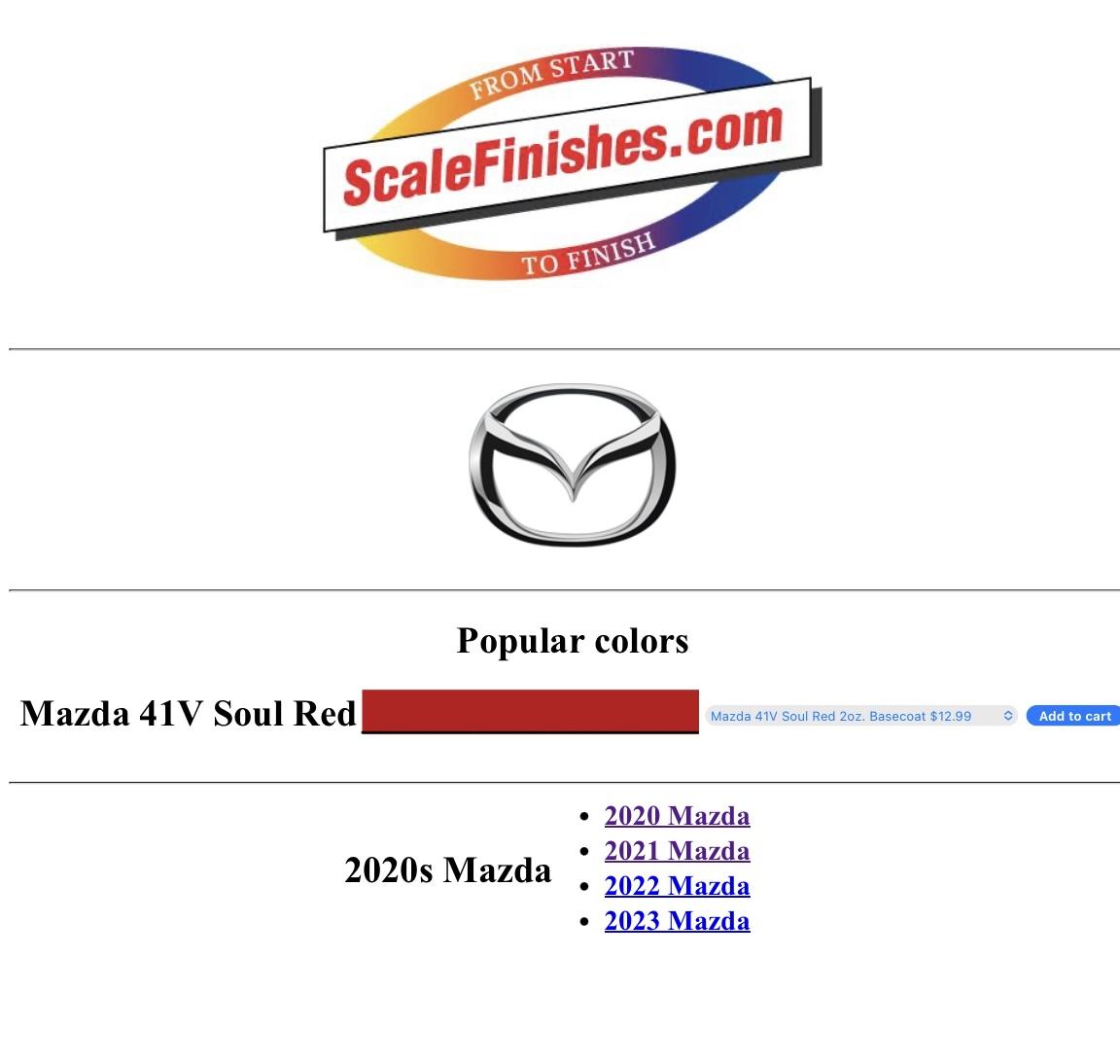 crazyjim Posted 9 hours ago Posted 9 hours ago Does anyone know of a way to get 2021 Mazda soul red crystal metallic paint. I don't want to buy a big touch can for just a model.