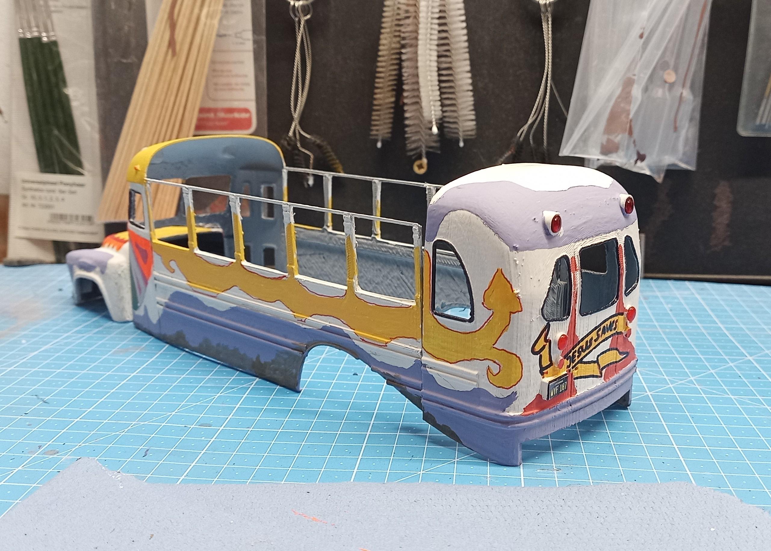 Jürgen M. Posted 4 hours ago Author Posted 4 hours ago (edited) The handrails are in: The roof structure is attached, so is the rear part of the body! Still missing are turning signals on the front fenders, mirrors, writing decals on the sides, speakers on top and finally a lot of dust! Edited 4 hours ago by Jürgen M. 1