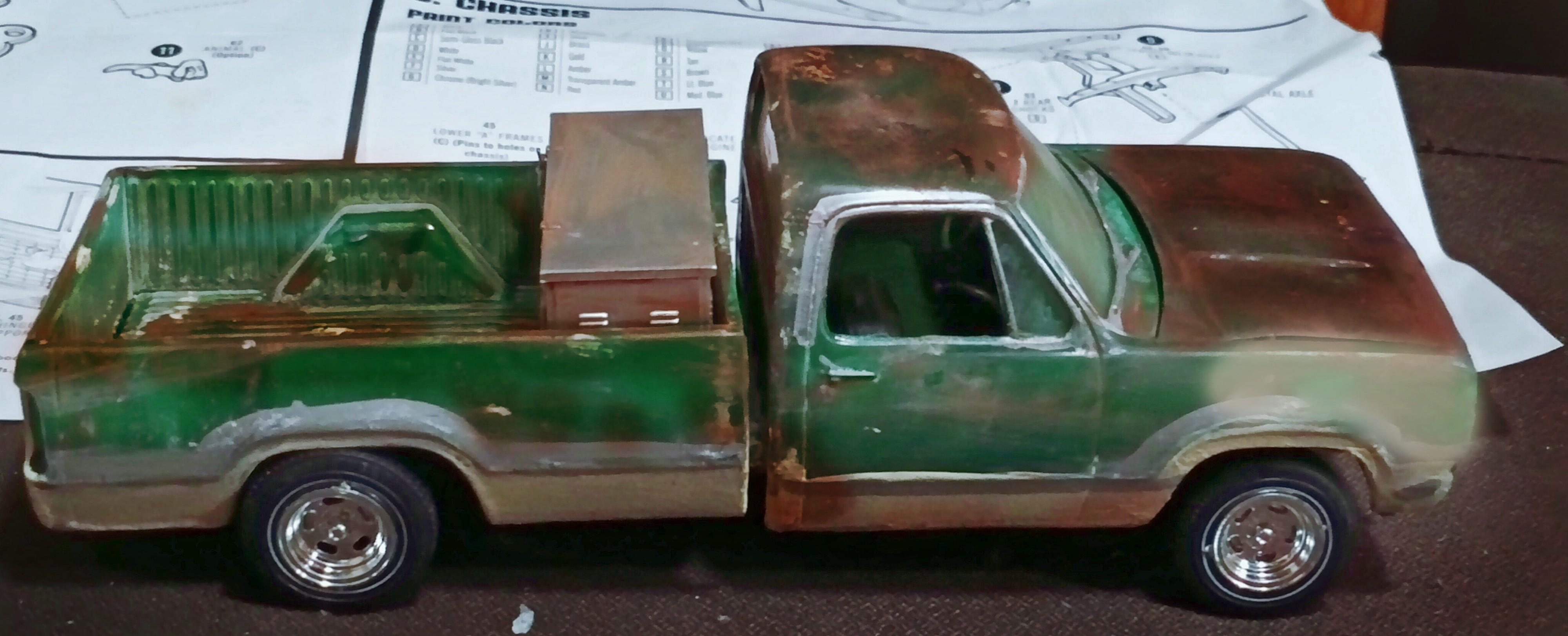 Andria H Posted Monday at 12:00 PM Posted Monday at 12:00 PM Start on a weathered truck build based on a thrift store find missing the Rupe minibike.