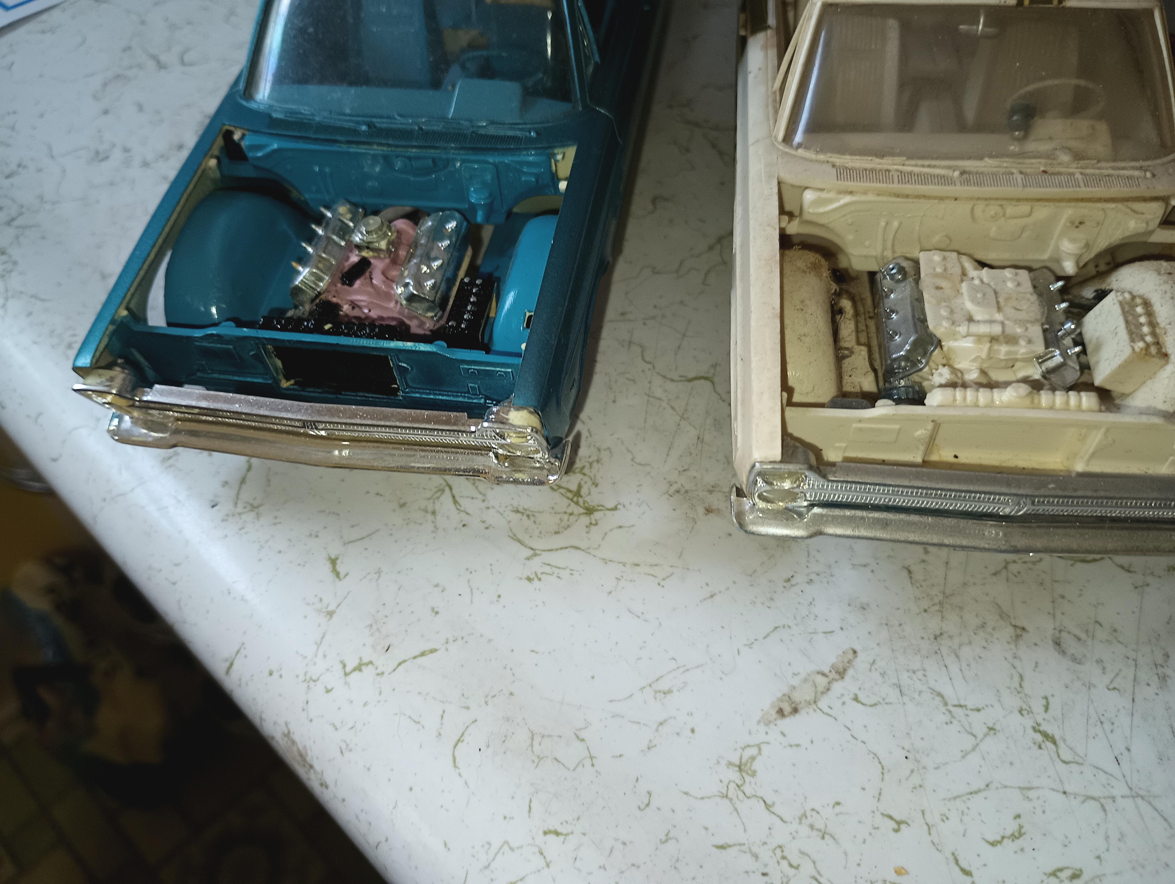 junkyardjeff Posted Monday at 06:22 PM Posted Monday at 06:22 PM This came in the batch with the Coronet and most likely built by the same person,it has a blown Hemi in it which one would think would not come in a Fury kit but it was built like a race car and with fender skirts looks horrible so it's going to be rebuilt as a normal Fury so what kit would have a appropriate 383 I can put in it.