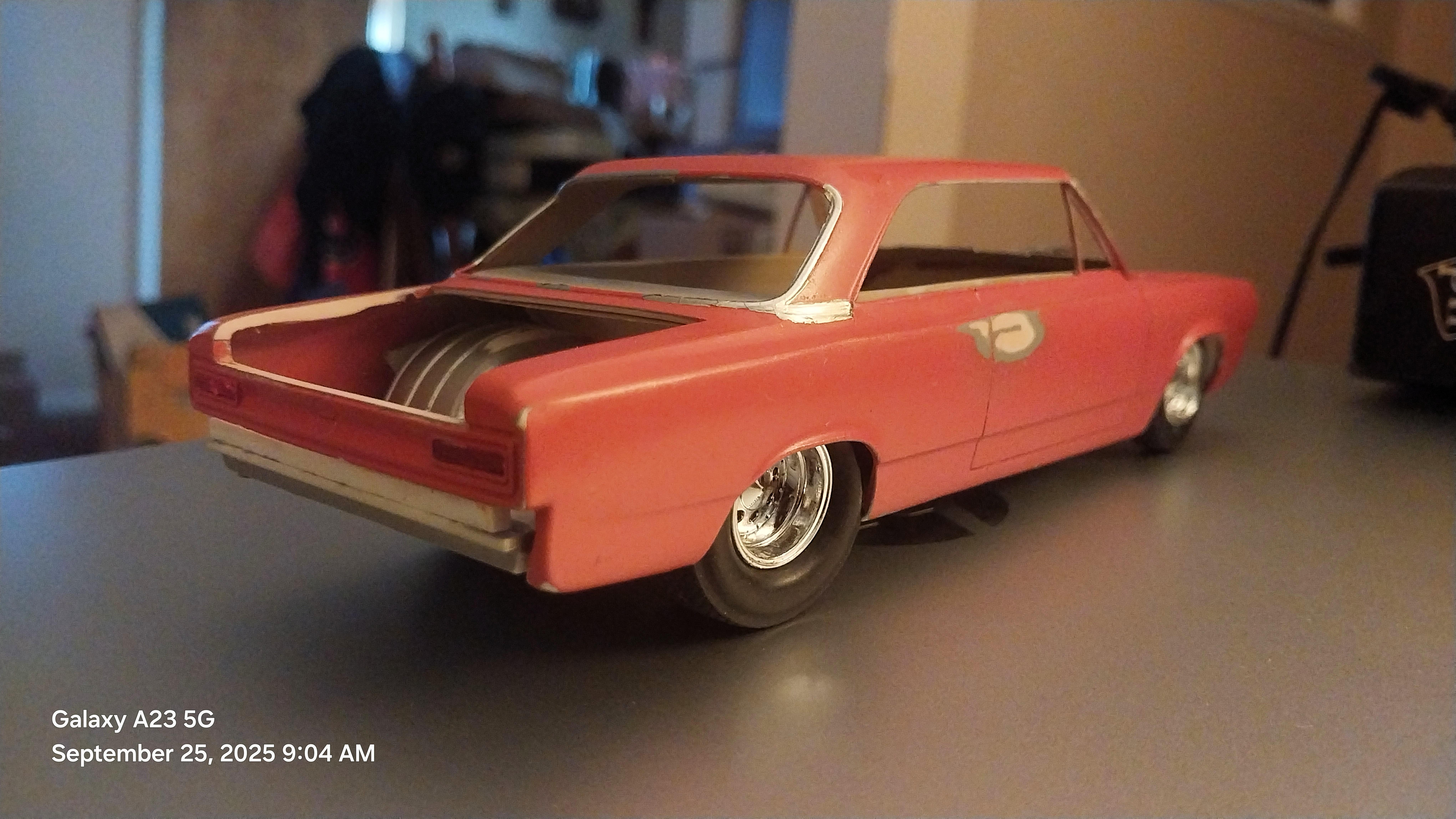 raisin27 Posted Tuesday at 12:27 AM Posted Tuesday at 12:27 AM (edited) Recently picked up a JoHan Rambler rebuilder. Decided to make a pro street out of it. I've already done a Ford, Chevy, and Mopar so this should complete my American Muscle theme builds. So far I back halved the chassis with AMT Nova tubs, Cut out the back seat, filled in the holes and smoothed out the engine bay for future details and mocked up the trunk. Haven't decided on any colors yet. Edited Tuesday at 12:28 AM by raisin27 5 1