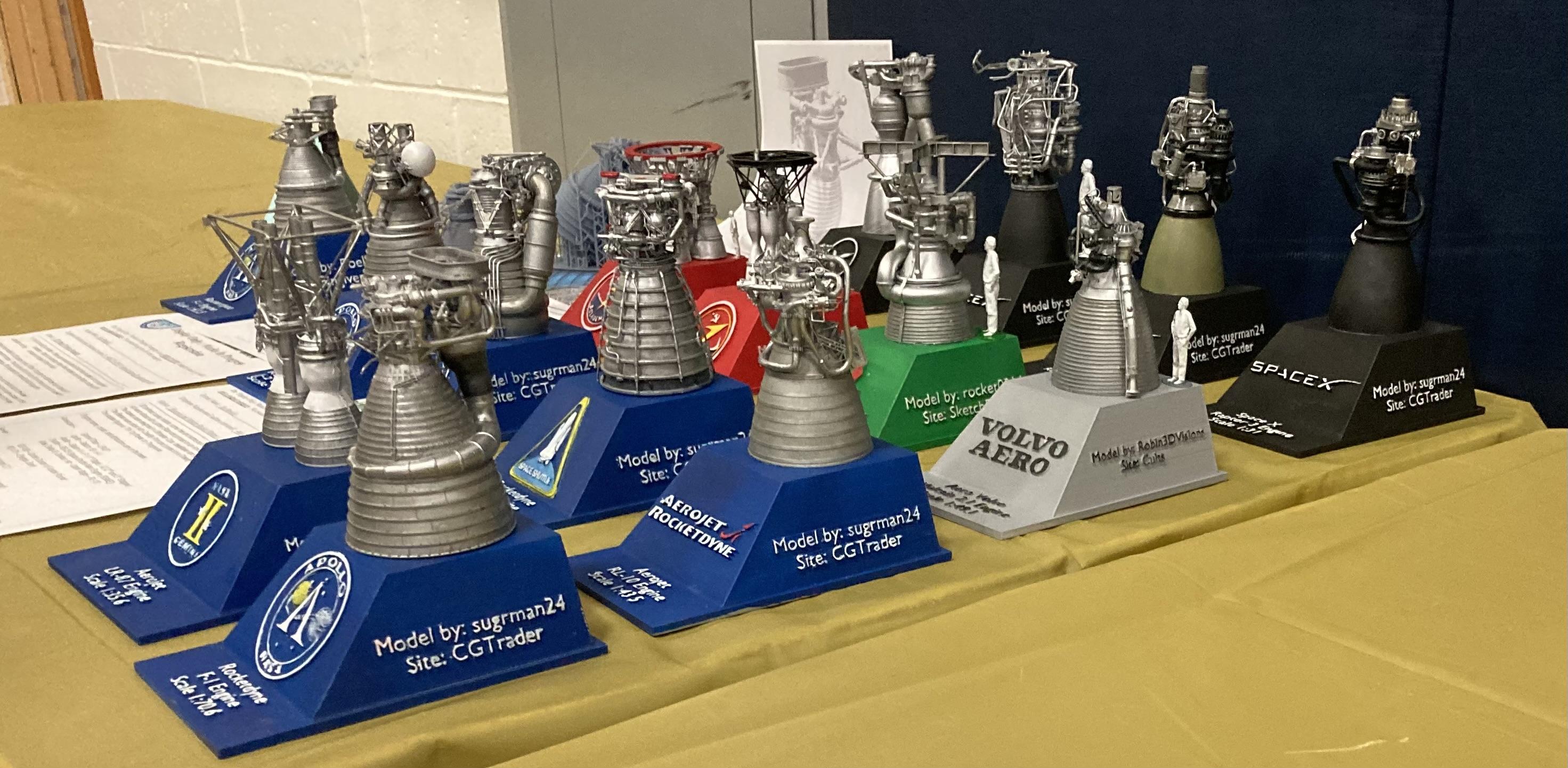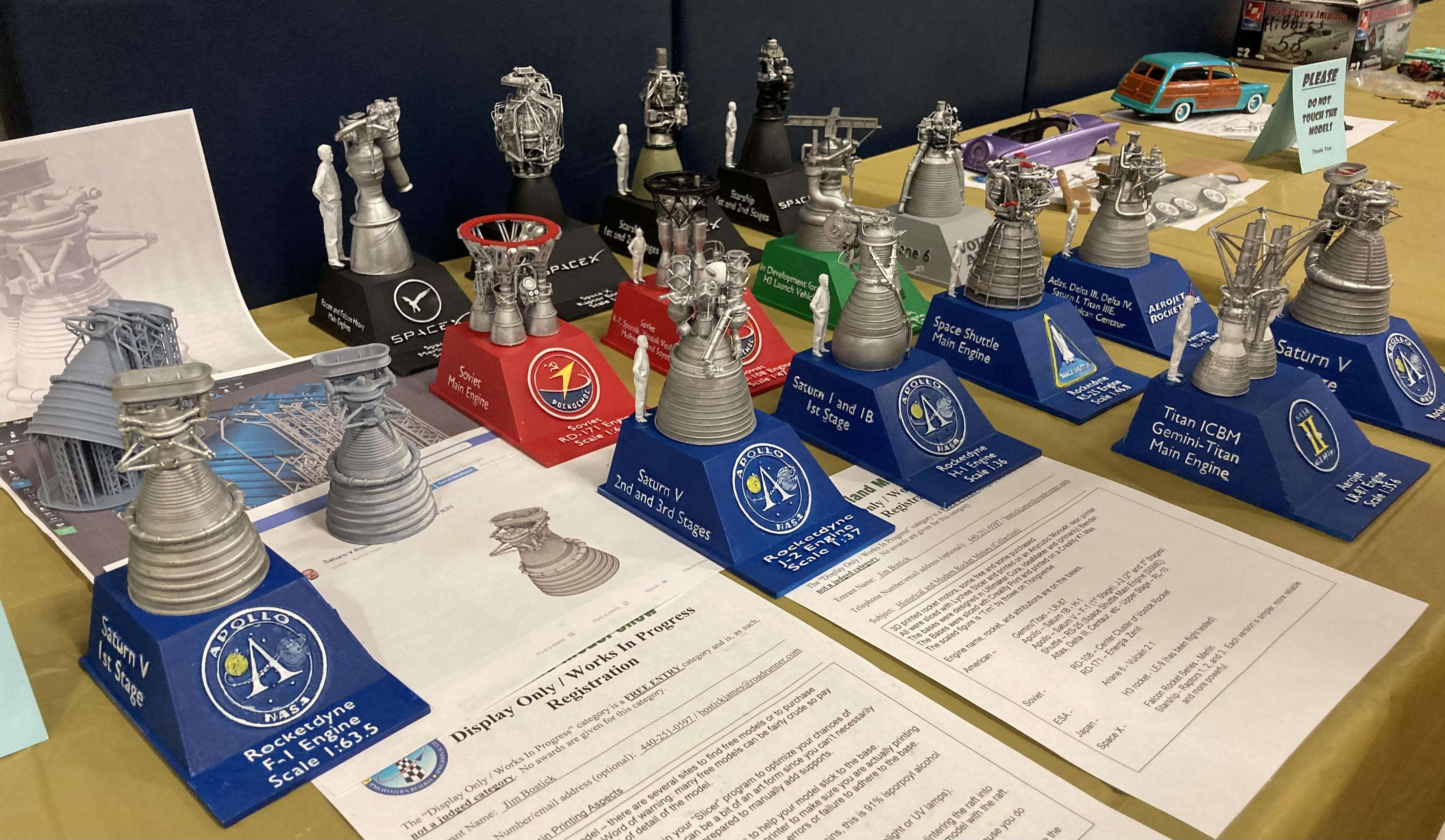ybsluos Posted 20 hours ago Author Posted 20 hours ago Aircraft Etc. Continued The 3D print Marquette rocket engines were a treat. I did not catch the builders name, but he was very friendly and fun to chat with. He could not enter these end competition because technically they are not considered models but , and I am probably going to spell this incorrectly…Marquettes I hope you enjoyed the photos, I am definitely not a photographer by any stretch! Lol-Mark 2