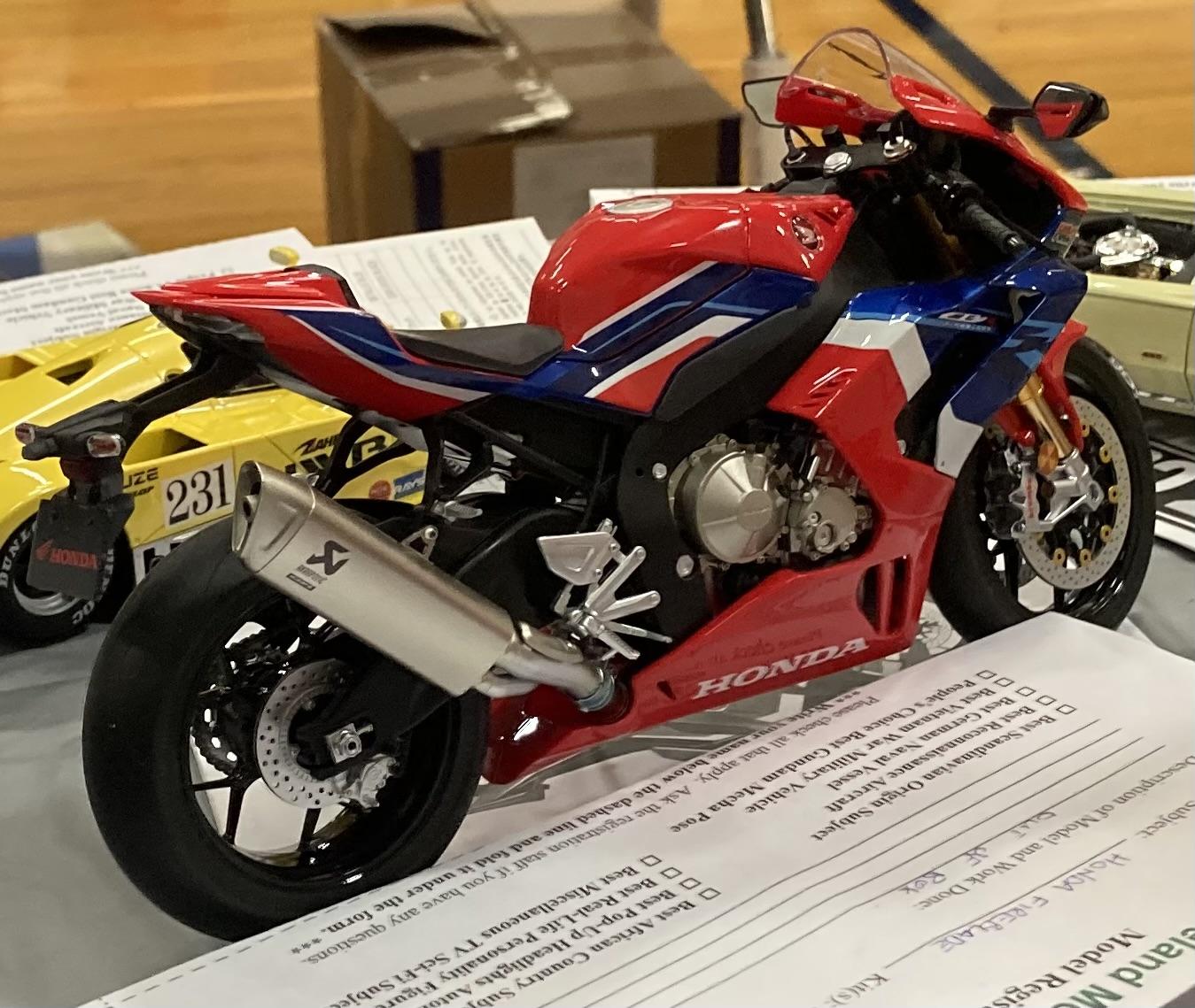 ybsluos Posted 22 hours ago Posted 22 hours ago Here you go friends…. some very non-professional photos I took at a show yesterday. I entered nothing and I’m sorry to say that the entry forms did not have the builders names. I will include names with the pictures where I know for a fact who built the models. Anyhow, the vending was stellar. Lots of military and aircraft kits for sale. I scored a couple of model car items are including a Mobius 64 Comet which I have yet to open. Anyhow, enough chitchat… Enjoy the pictures and hopefully gain some inspiration for that next project. Happy modeling! – Mark. First up Motorcycles 1