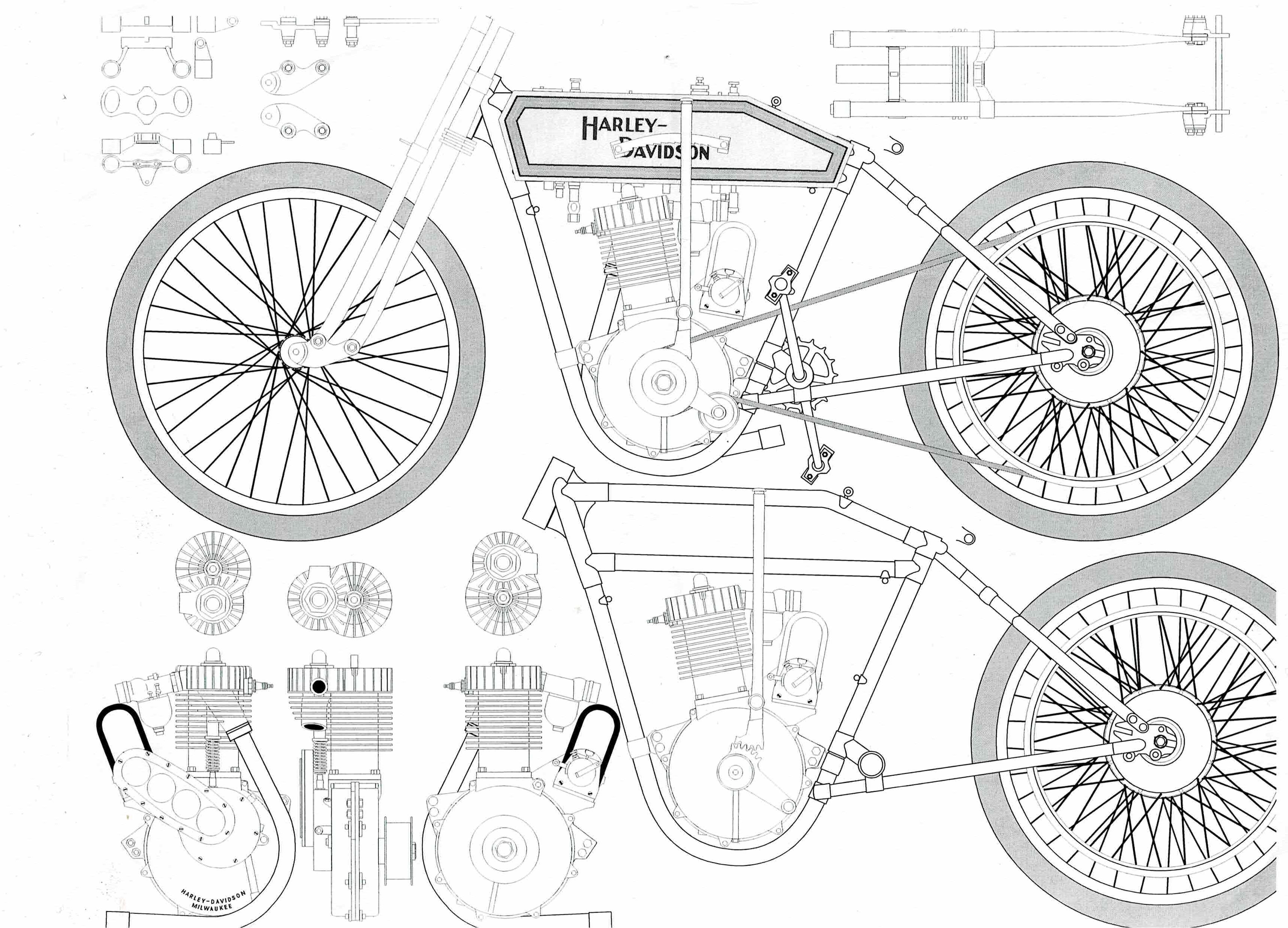 DougS Posted 3 hours ago Posted 3 hours ago Several years ago I had big plans to build a 1/8th scale Harley. After hours of searching for reference photos I was able to come up with fairly accurate details and made this drawing to work from. I found out about half way through scratch building the engine that I just wasn't up to this big of a project. I'm still pretty proud of the finished drawing though.