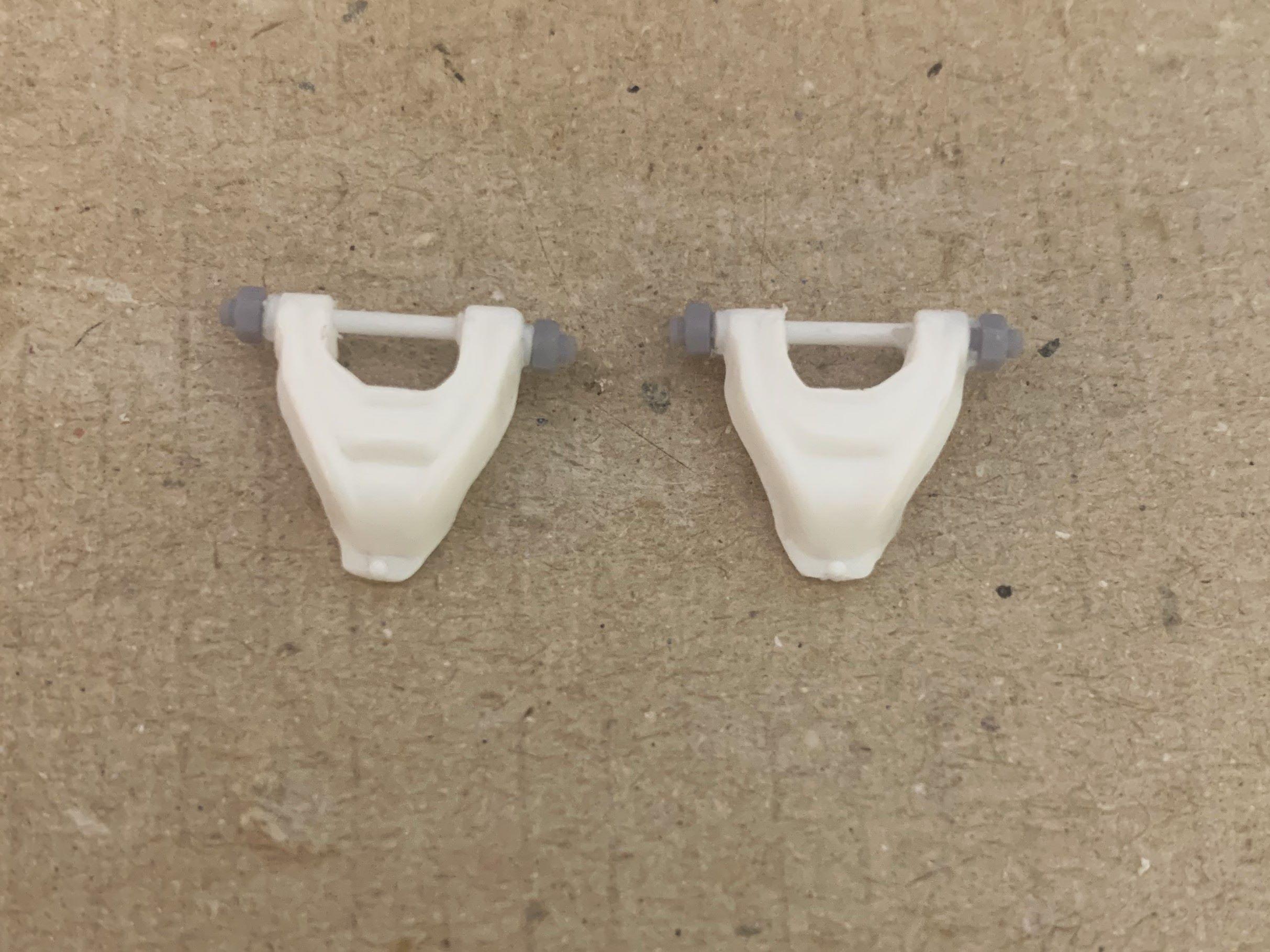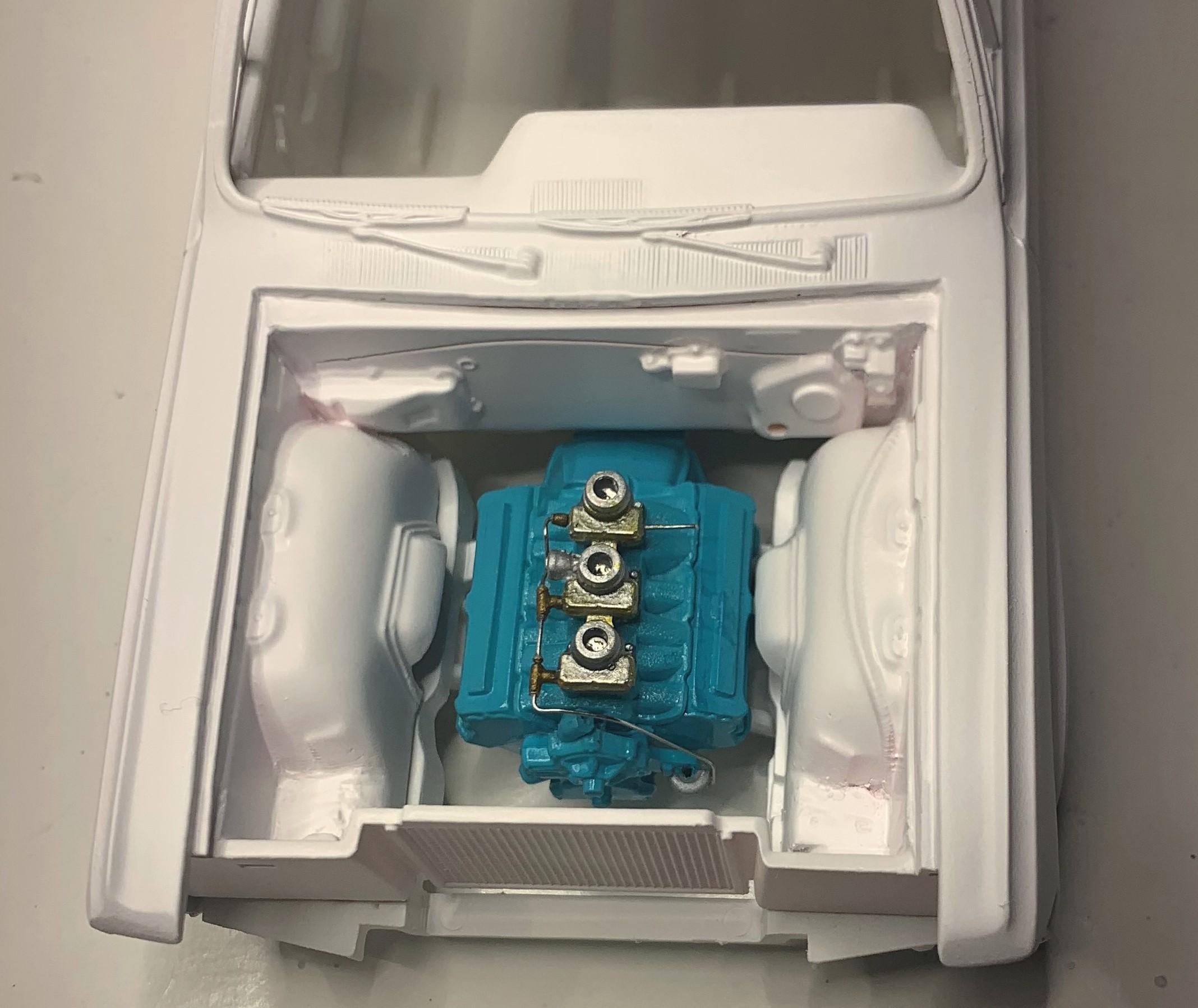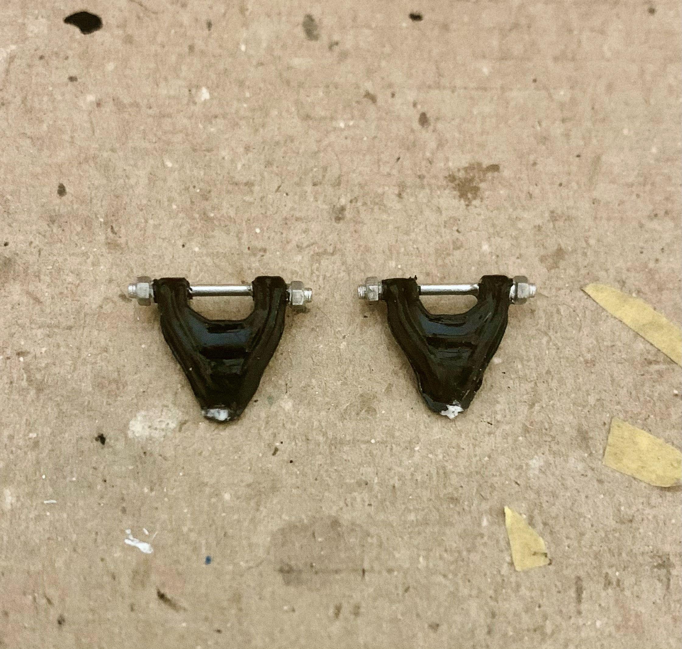 dino246gt Posted Friday at 04:01 PM Author Posted Friday at 04:01 PM That 389 was going to be a tight squeeze, so I removed those bits of inner fenders closet to the engine. Now the upper A arms will show so they need a bit more detail. I drilled through and placed styrene rod through them and added some 3D printed bolts. After paint, they look okay, better than before and might not even show! 3