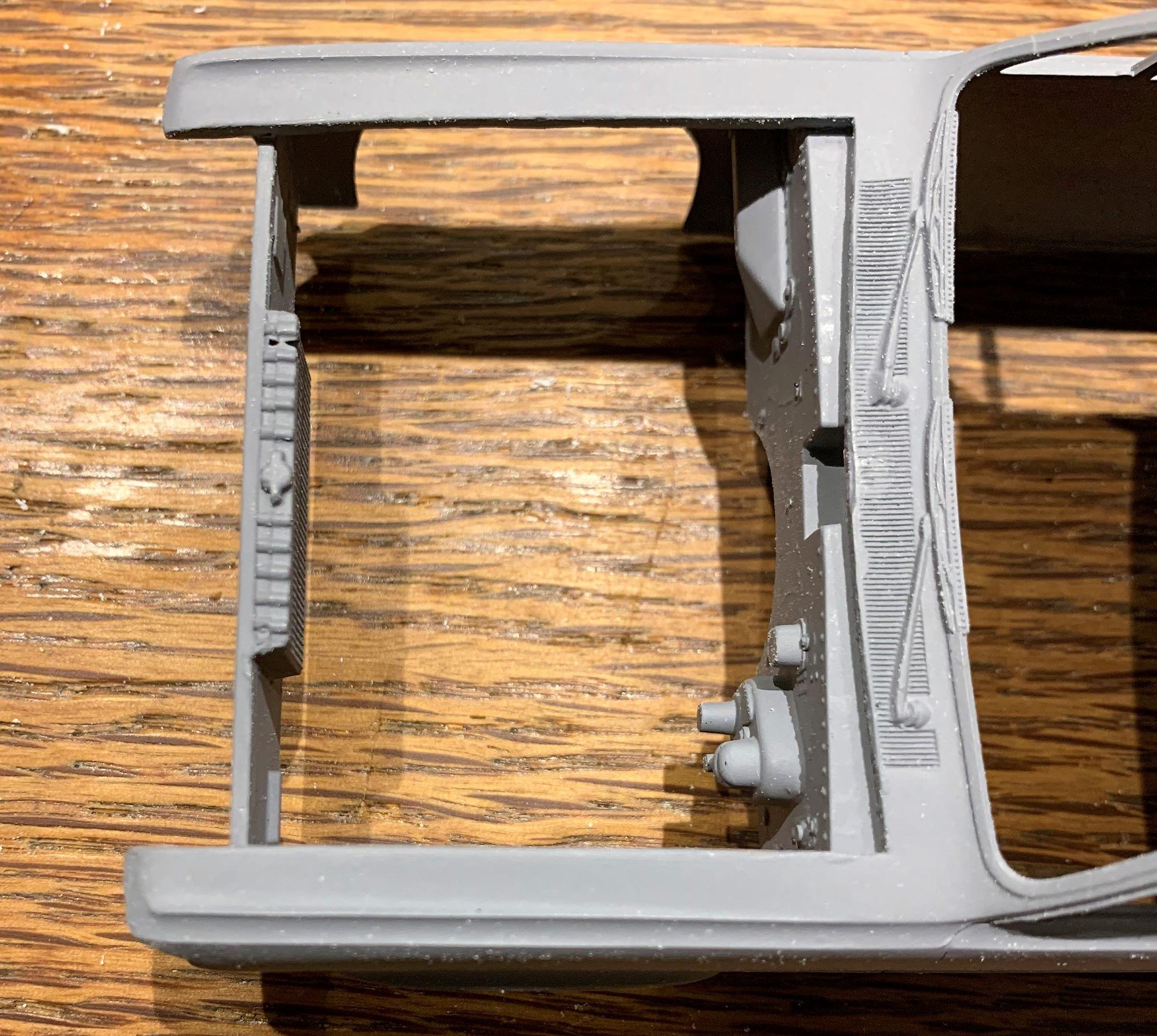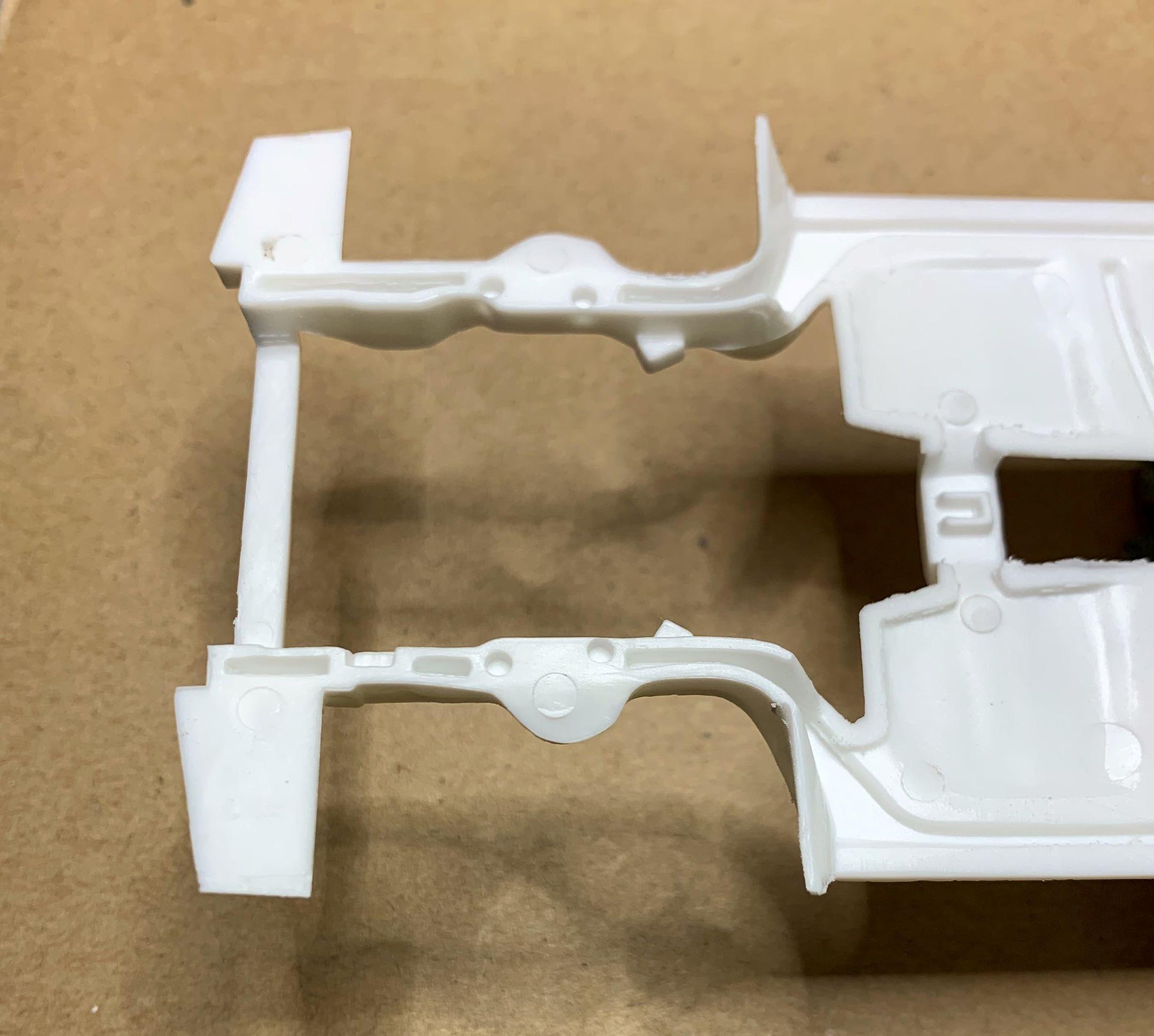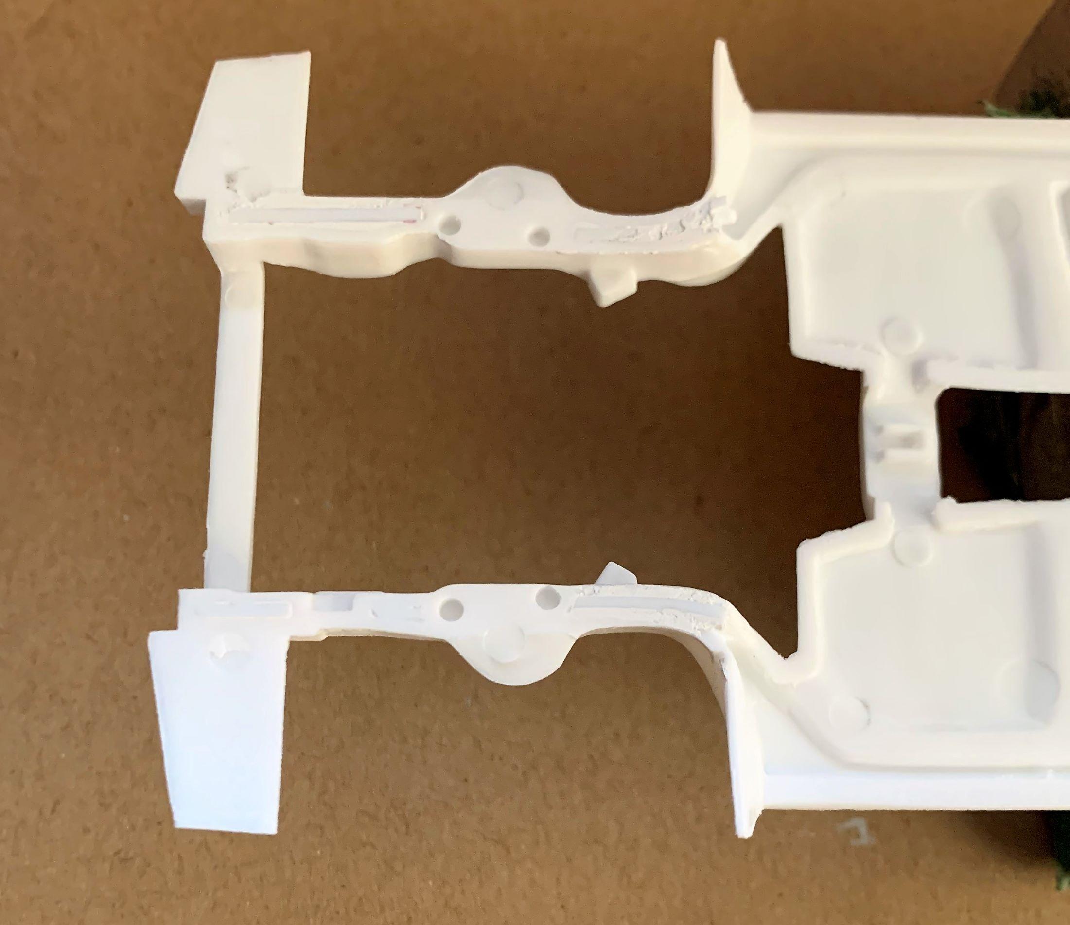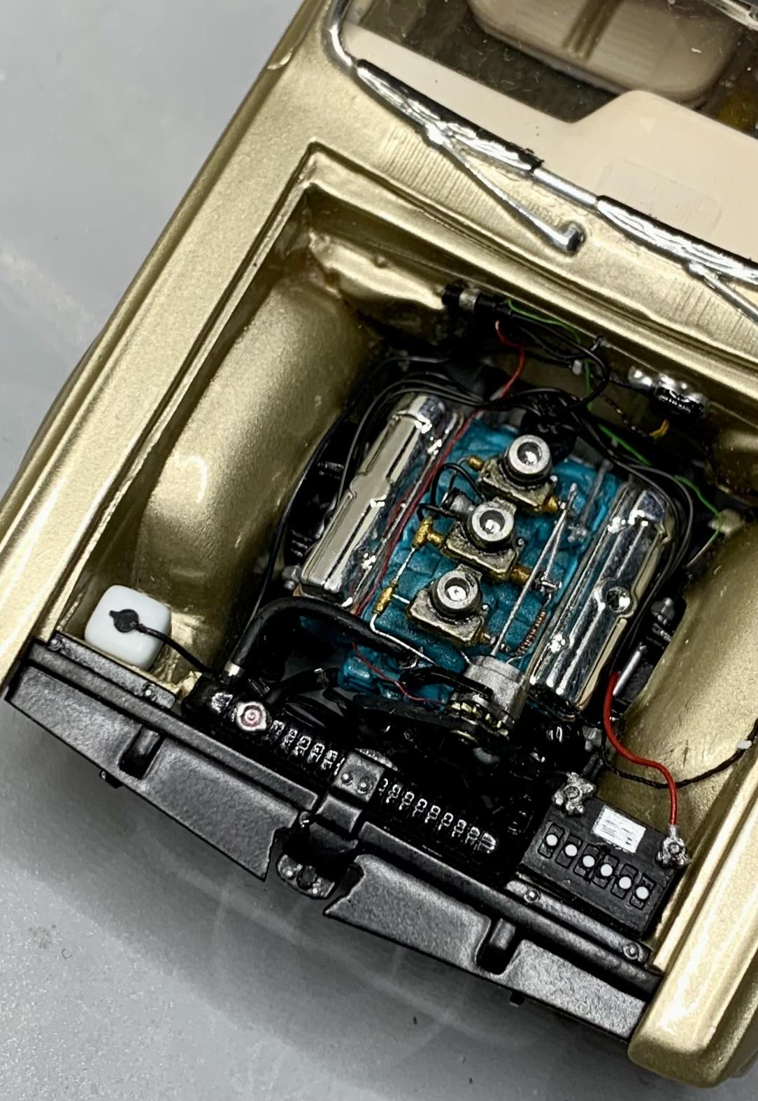 dino246gt Posted Friday at 04:01 PM Author Posted Friday at 04:01 PM That 389 was going to be a tight squeeze, so I removed those bits of inner fenders closet to the engine. Now the upper A arms will show so they need a bit more detail. I drilled through and placed styrene rod through them and added some 3D printed bolts. After paint, they look okay, better than before and might not even show! 3