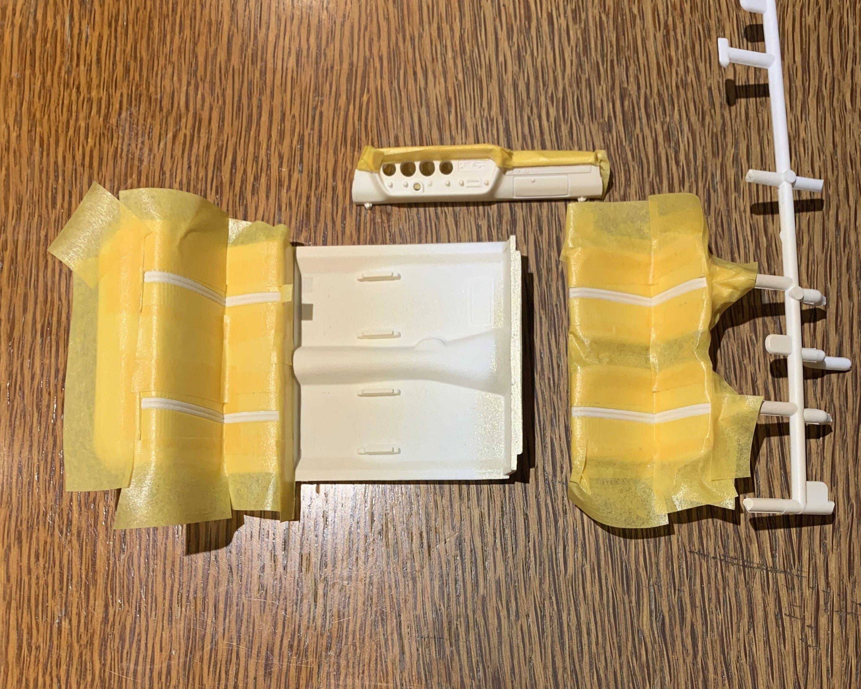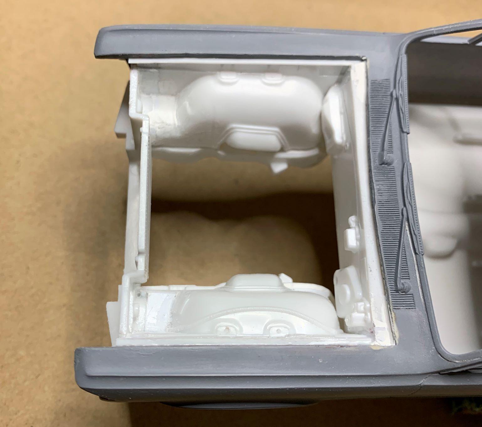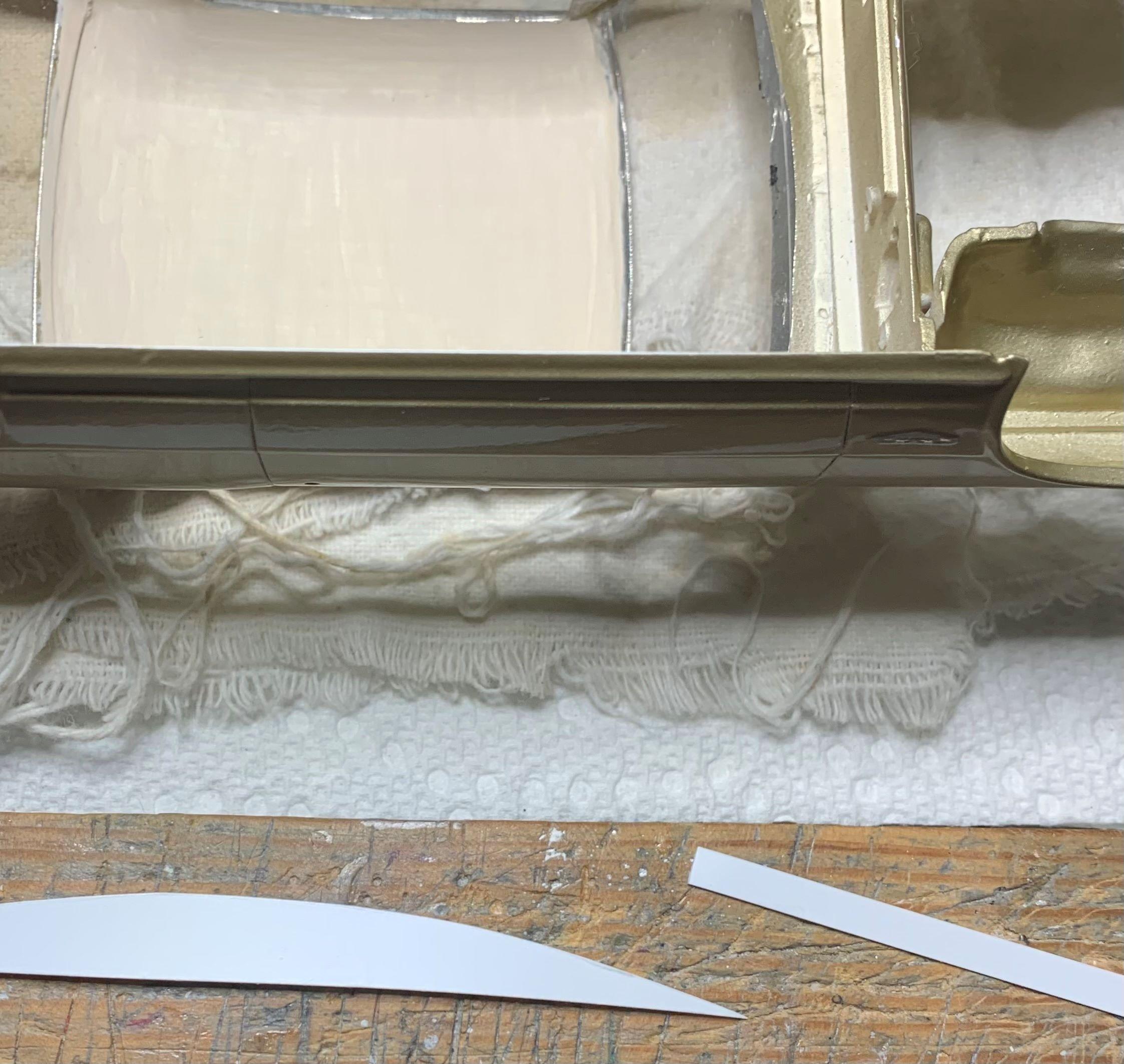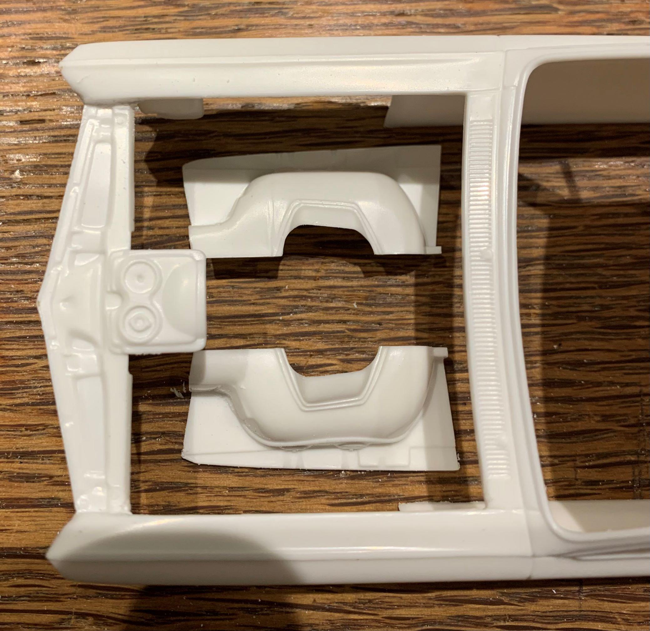dino246gt Posted 22 hours ago Author Posted 22 hours ago After brush painting the headliner, I made some simple visors, 2 layers of .010 styrene scraps. Nobody ever looks at the headliner so it's certainly not even close to perfect, I just do it for fun. 2