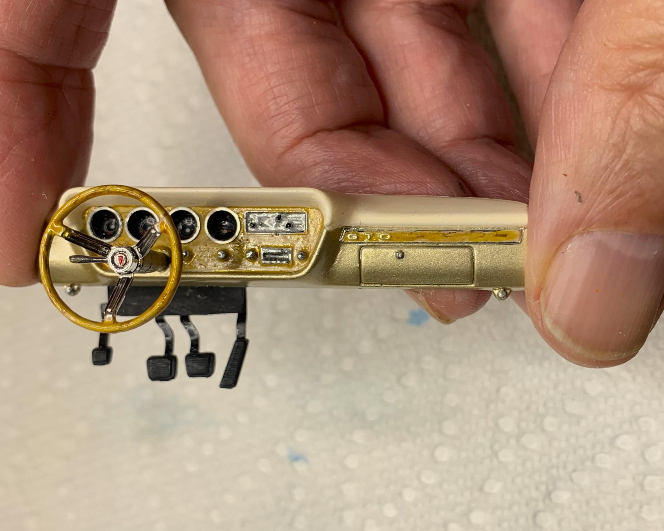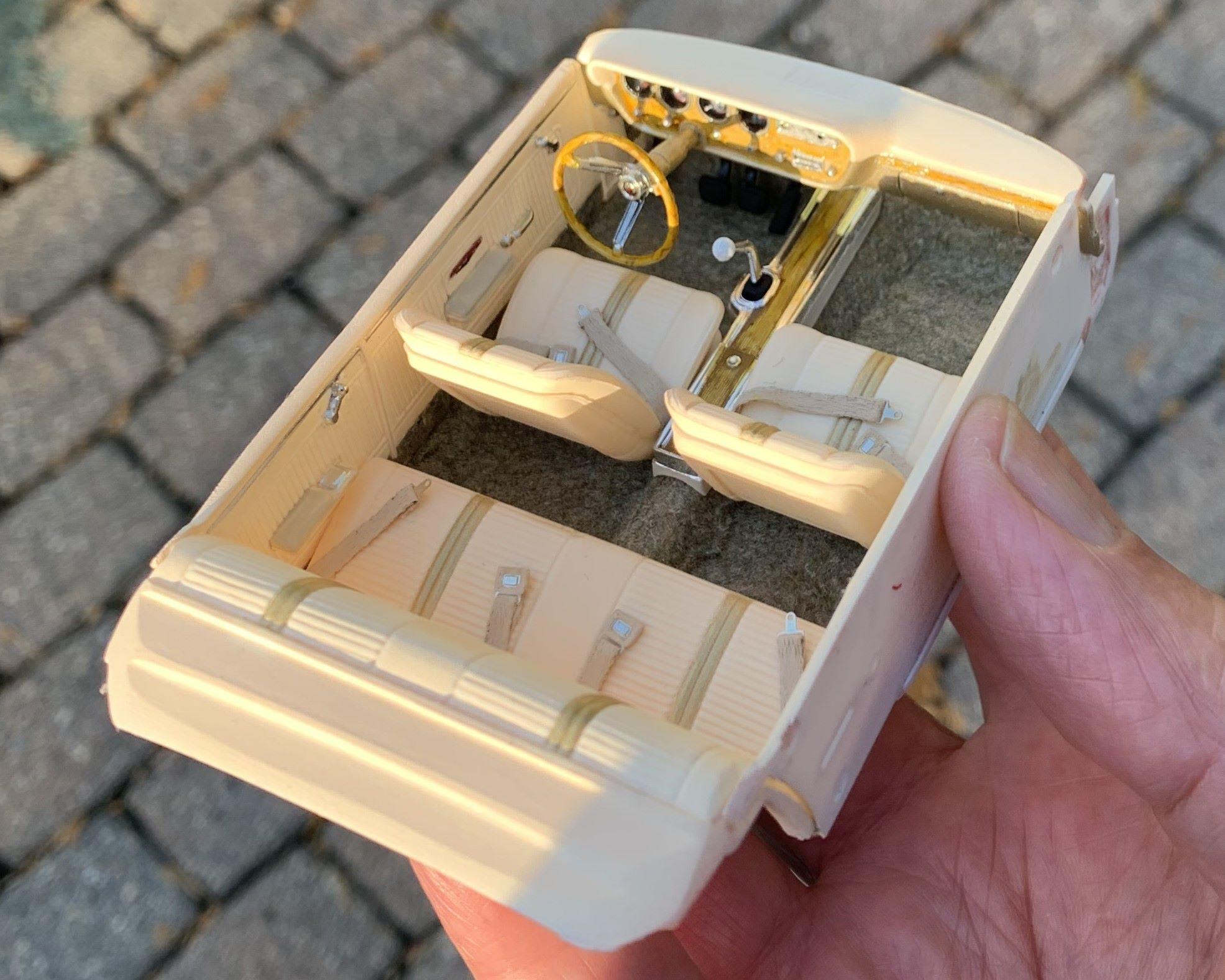 dino246gt Posted Friday at 04:20 PM Author Posted Friday at 04:20 PM After adding foil and some detail paint to the side panels, I foiled the rear ashtrays, added seat belts, some wood-ish paint, steering wheel, shifter and, well, it looks like an interior! 7