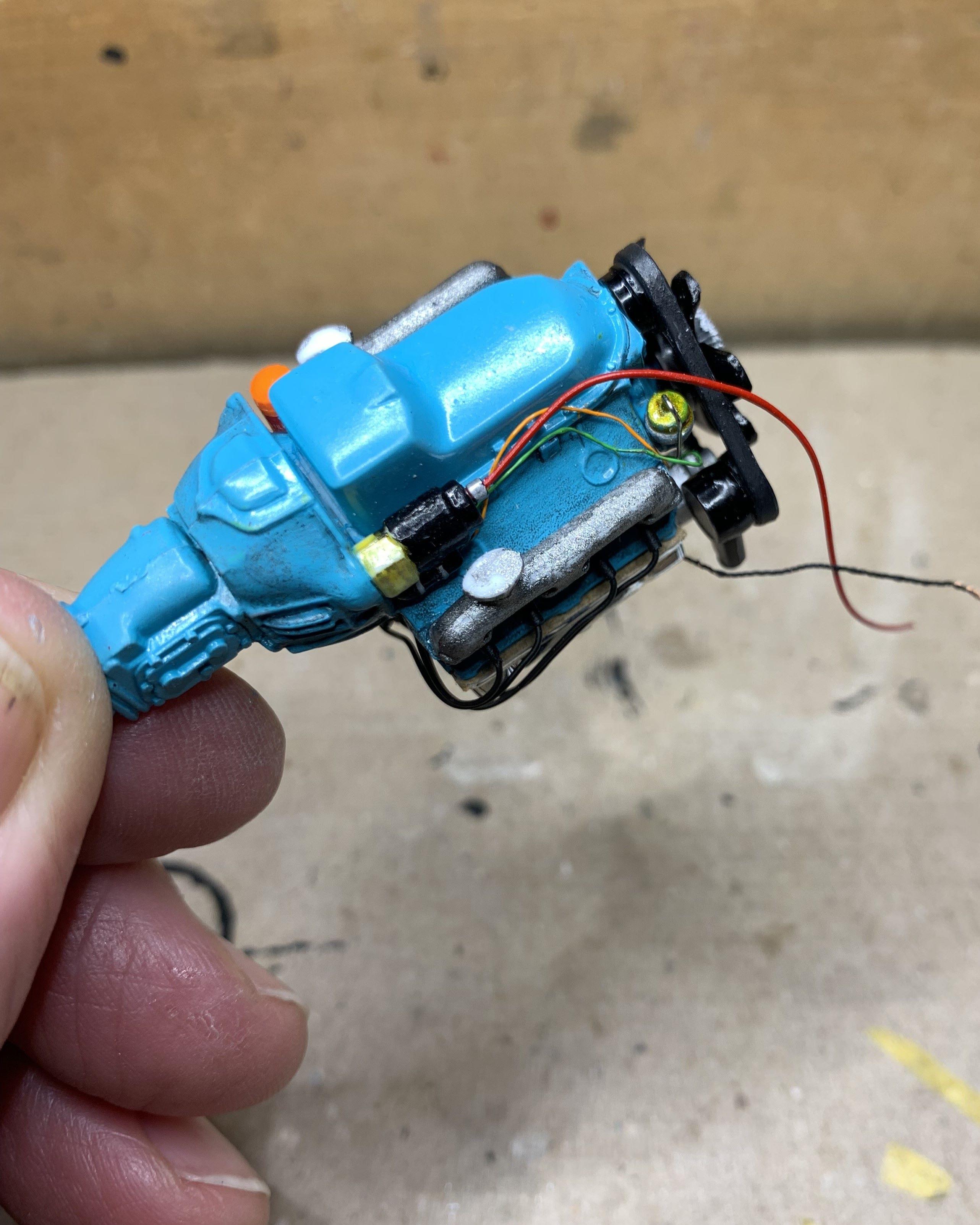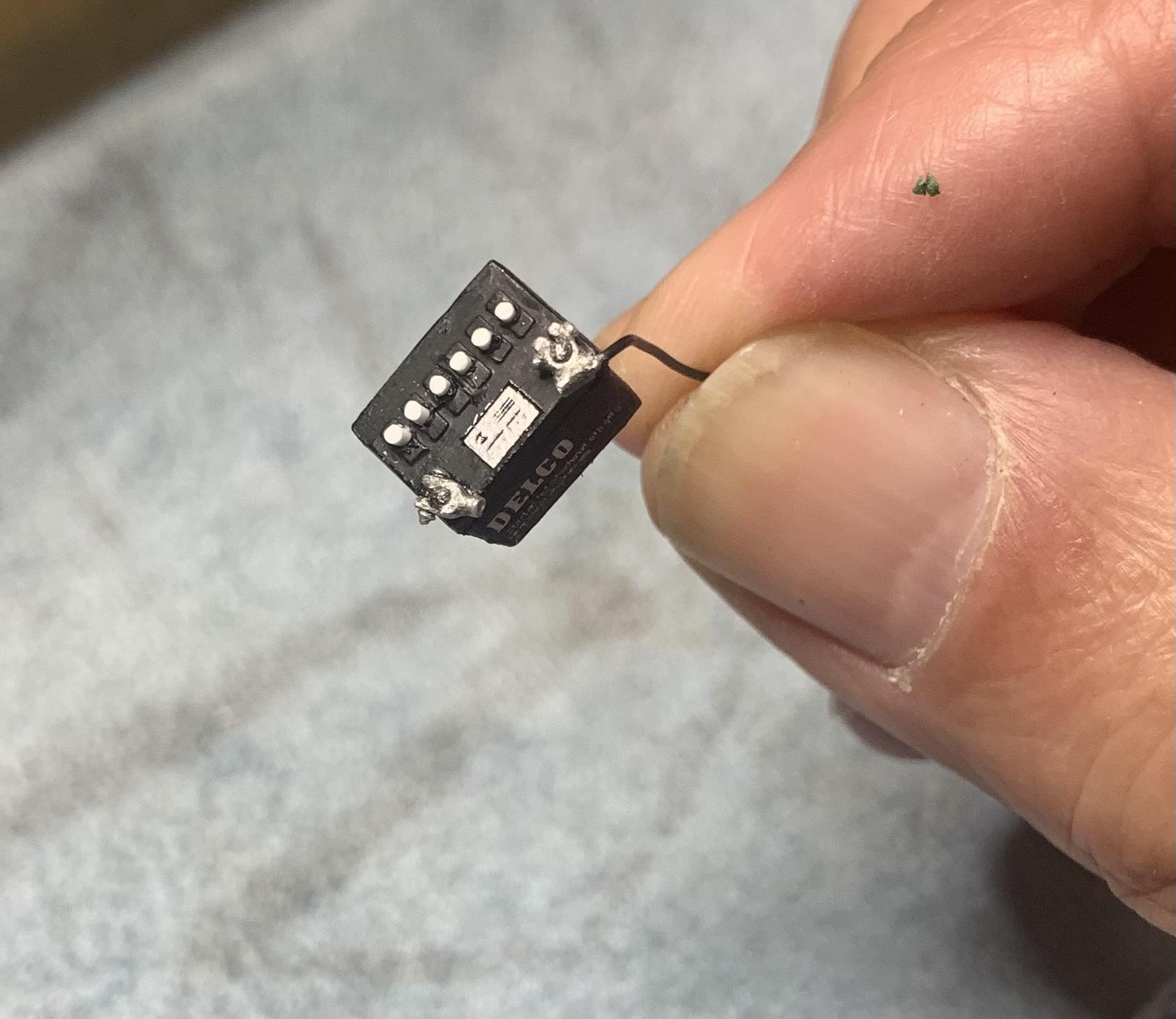 dino246gt Posted 22 hours ago Author Posted 22 hours ago I like to add detail to my batteries, so easy and it does make them look better. Separate caps helps. I drill out the molded on ones then use styrene rod pushed through to the same height then glued from underneath. Cable ends are from Norm, Replicas and Miniatures of Maryland, I always use them. DELCO, is simply printed on paper and glued on. 5
