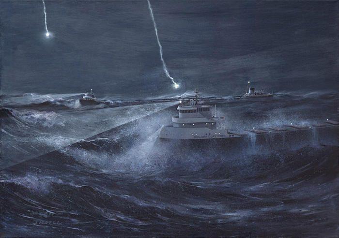 michelle Posted 3 hours ago Posted 3 hours ago i based this diorama on the famous were are they? painting of the ss arthur m anderson and ss william clay ford searching for the fitz at 2:00 am est on the morning of 11 november 1975 which i will also include a picture of i resin printed the the two models of the ships and brush painted them apple barrel matte black and apple barrel matte white and apple barrel matte tuscan red i used clay to make the stormy waters and brush painted it apple barrel admiral blue and apple barrel matte white when the capt of the anderson bernie cooper decided to go back out to search and the capt of the ford donald erickson also joined him and the two boats went slowly at only a few knots as they left the safety of whitefish into gale force winds at around 10 pm est 10 nov it took them till 2 am est 11 nov to reach the location were the fitz was last known to be and started a search all they found were a couple damaged life boats from the fitz and other bits of debris no crew this diorama is tribute to those brave crews of these two boats who risked their own lives going back out into that storm to look for their missing fellow sailors The search for the fitz.mp4 1