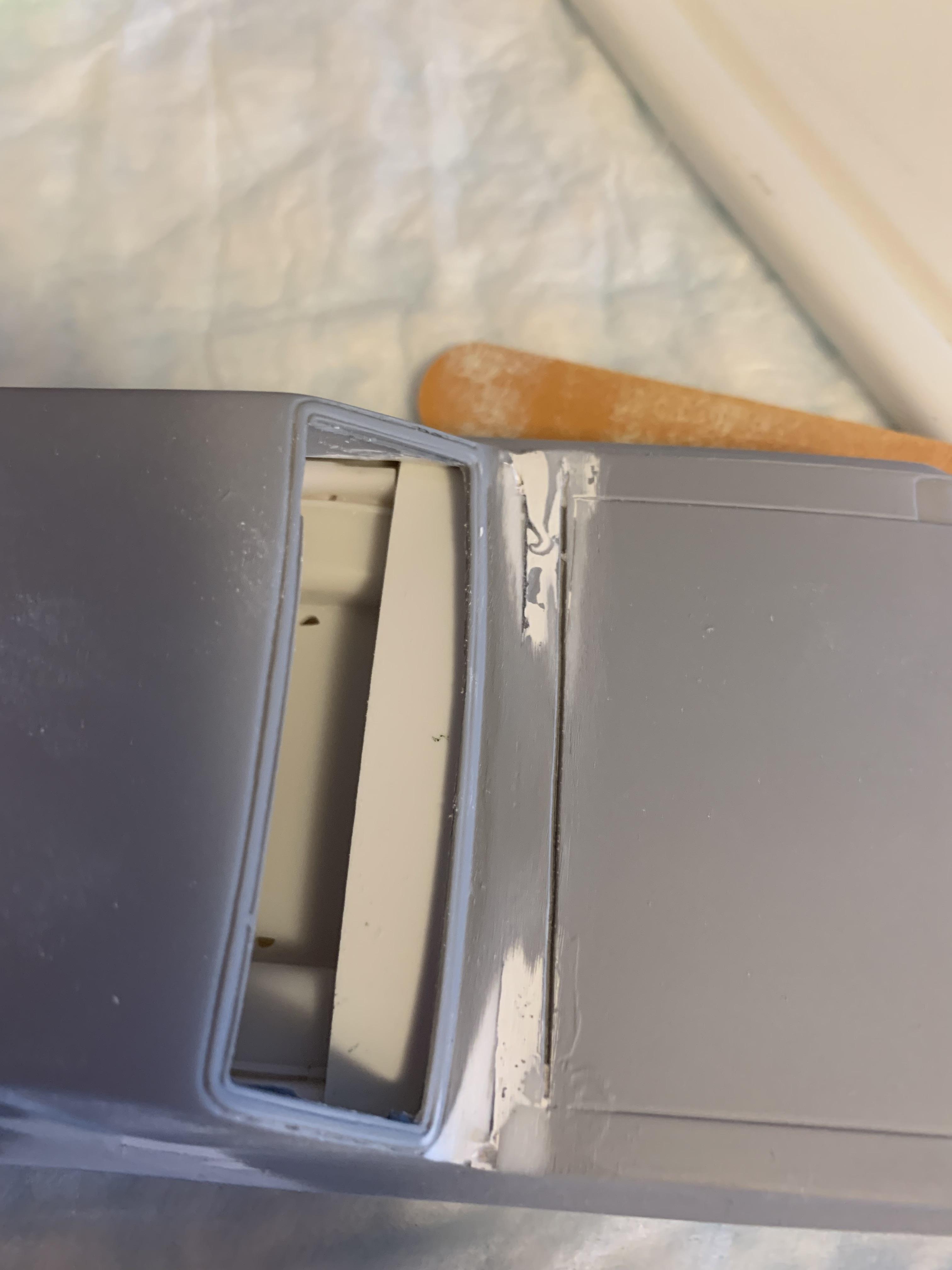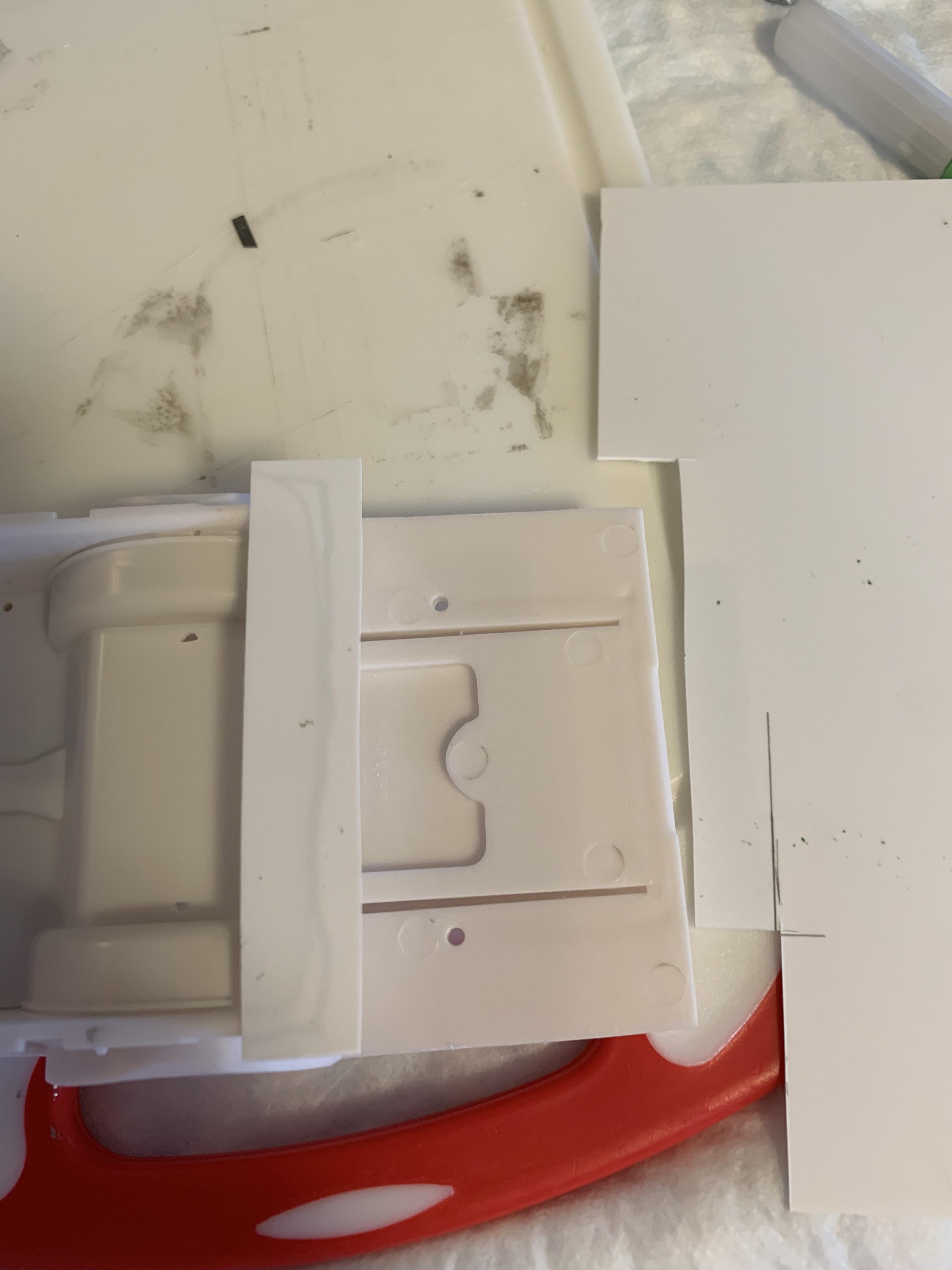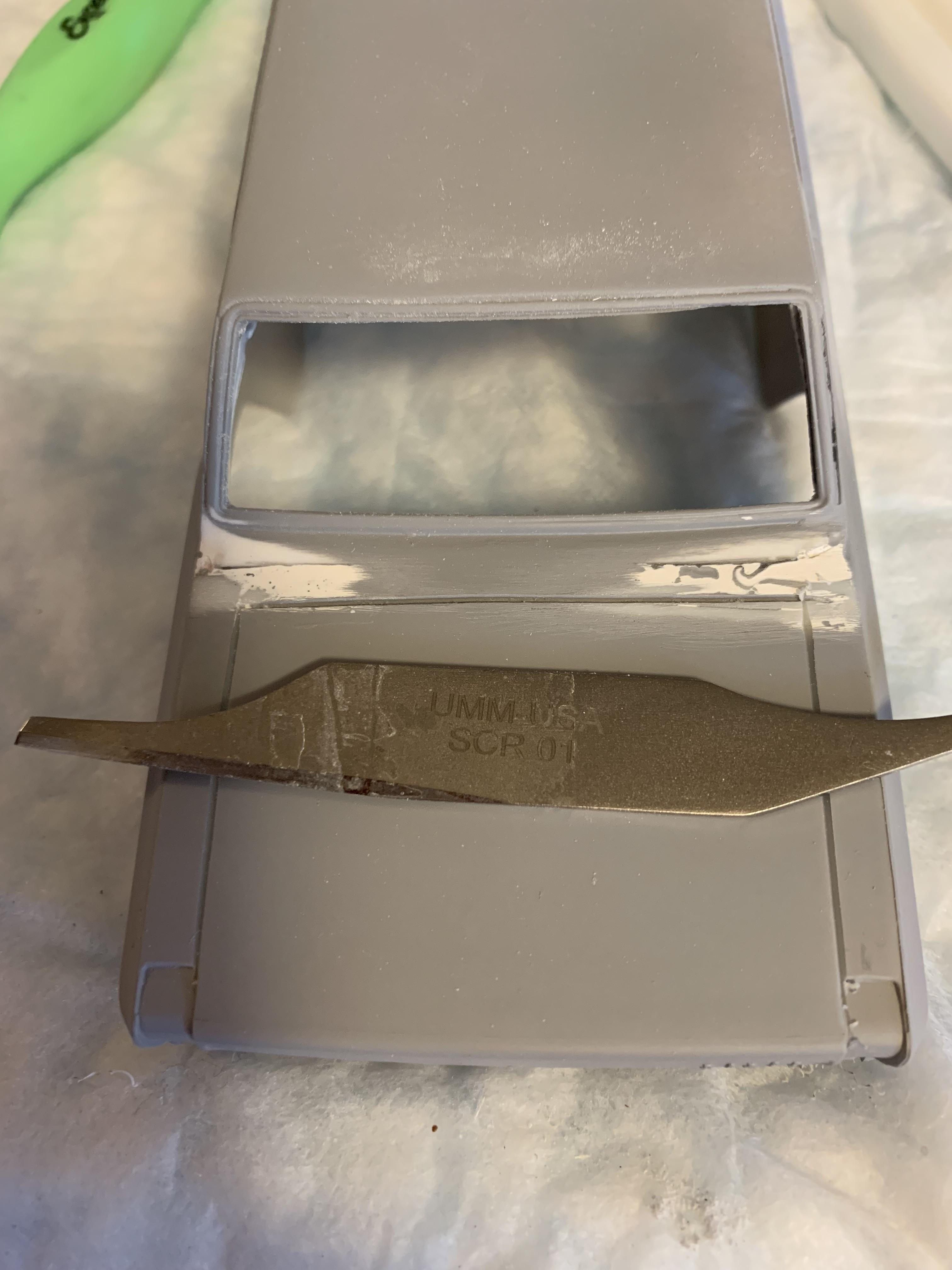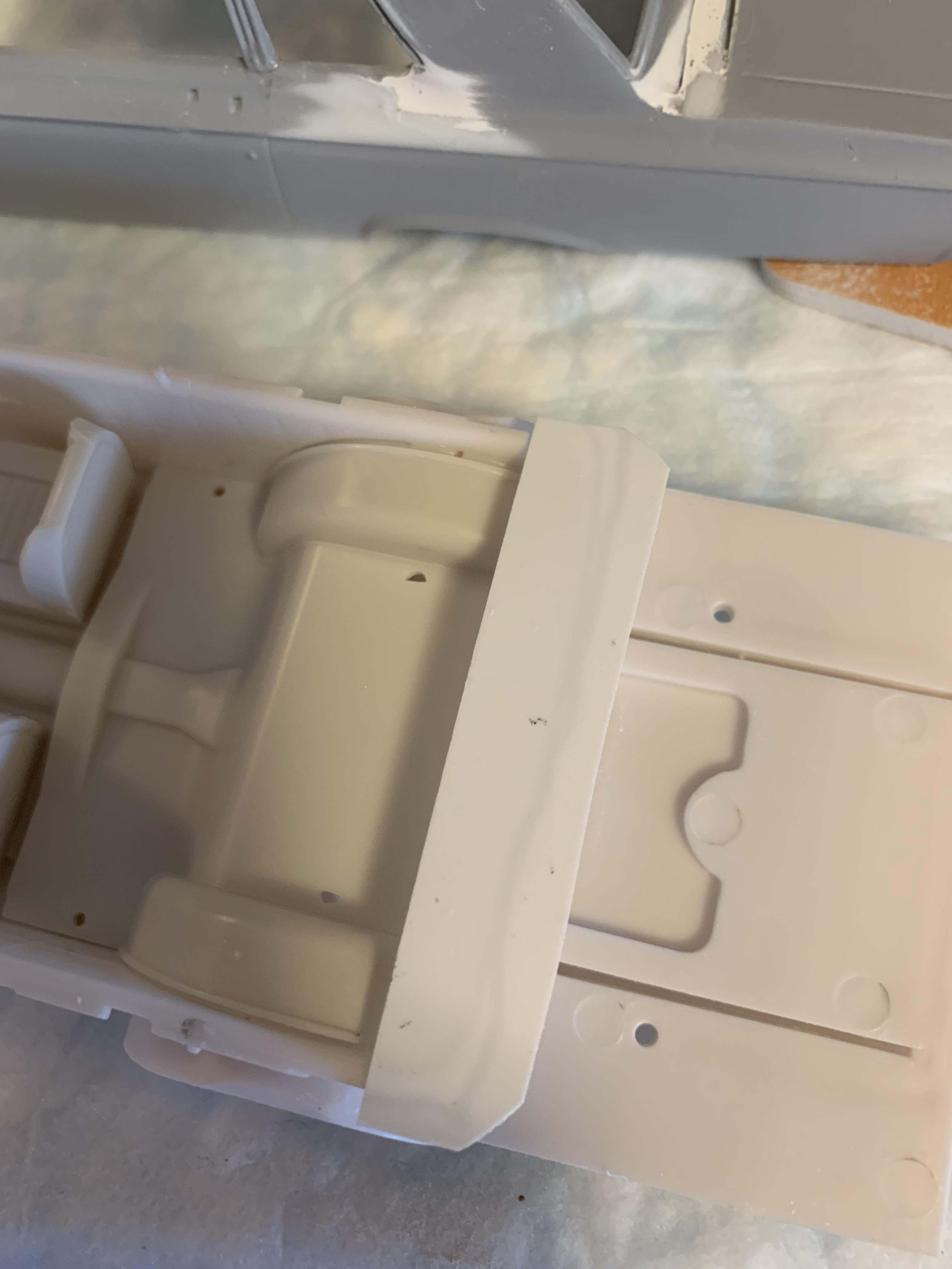 R. Thorne Posted 8 hours ago Author Posted 8 hours ago On 11/22/2025 at 8:55 AM, Mike Holland said: Really excellent surgery here, respect. I agree, the sedans were cooler, just understating the Plain-Jane Mopars of the day. Rubber mats, radio delete, cigar lighter was optional as well as the right side rearview mirror. Very nice work! Thanks, Mike. Took a couple days off. Cut a new package tray from .015” styrene sheet and glued it on. Some more sanding (sigh!) , run some 3000 grit foam Tamiya over the whole body, then scribed the trunk. Washed it off for another coat of primer and paint the interior with some Tamiya Champagne gold. 1