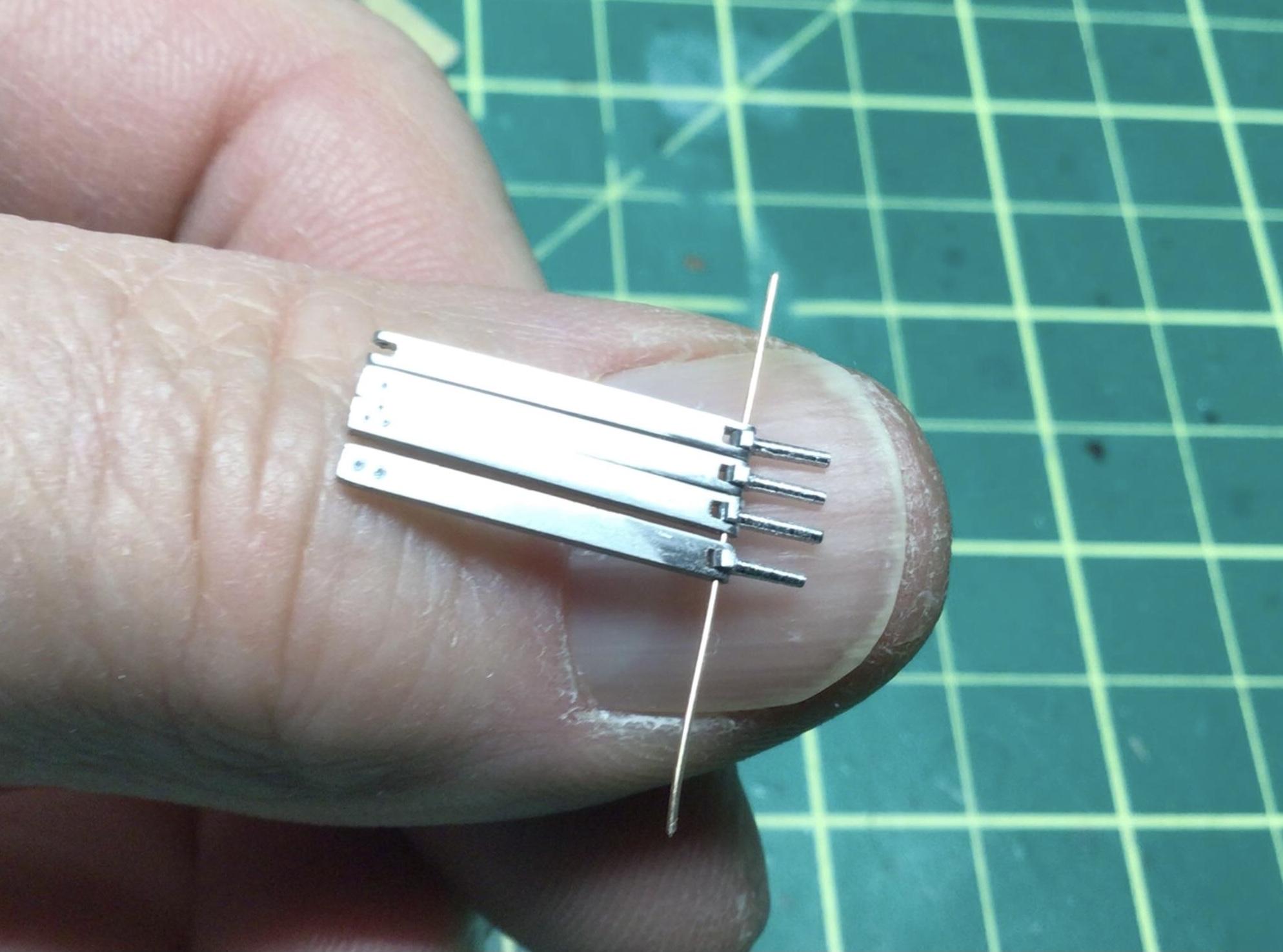 ColonelKrypton Posted 9 hours ago Posted 9 hours ago I was recently working on a project and wanted to drill some very small holes. A 0.15mm hole in a piece of 0.6mm hex shaped piece of plastic was the target. The 0.15mm hole was needed to feed a piece of 0.1mm brass wire through. I sourced some of the common Chinese carbide PCB drill from amazon and gave it a try just to see if I could indeed manage the task. After a bit of fussing and working my way down in size from 0.4mm, I did in fact manage to make my 0.15mm hole and just to prove to myself that it was no fluke I repeated the task several times. Admittedly, I did break three 0.15mm bits, one in use and the other two from just being careless. Best holder for these style of drill bits having a 1/8" shank is the holder of my Starrett 70A scriber. Used only the weight of holder and bit with the index finger of my left hand steadying it vertically and carefully turning with the fingers of my right hand. Holding the piece to be drilled is vitally important. You are doomed to failure if you try to hold it in your fingers or loose on the bench. Piece with hole and 0.1mm brass wire through that hole: Tamiya markets some 0.2mm high speed steel (HSS) bits that work very well and are not as easily broken as these carbide bits. I never broken one but I have lost one by being careless when putting it down on the workbench where it simply vanished into the clutter never to be seen again. cheers, Graham 1 1