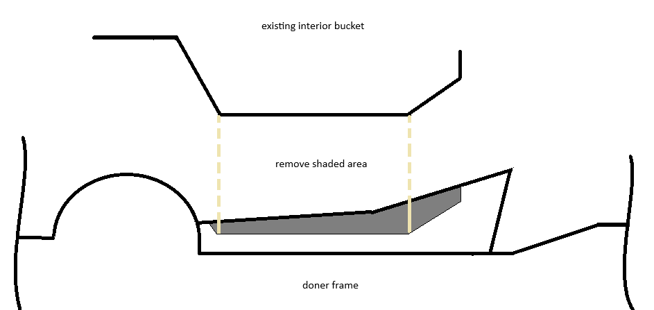 Trainwreck Posted 6 hours ago Posted 6 hours ago Don't know if this will be helpful to someone but here goes nothin'. I've been swapping frames in models for quite a few years and found this to be the easiest way to get the old style bucket interior to sit on a new frame without all the work. A few basic measurements are all that's required. Sorry about the picture quality. (was done in paint.)