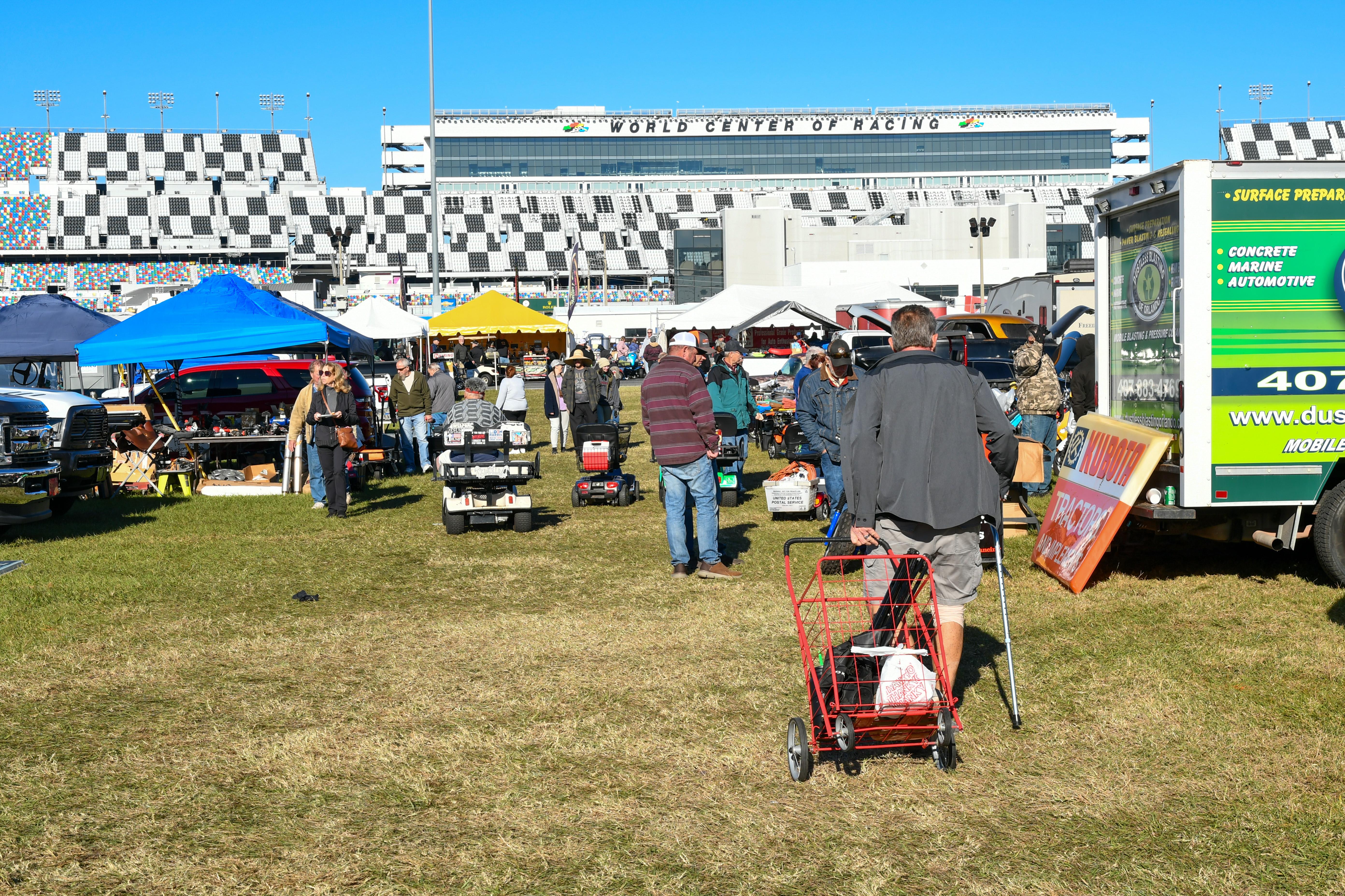 RSchnell Posted 14 hours ago Posted 14 hours ago Made the annual visit to Daytona Speedway yesterday. Didn't take a lot of photos this round, most of the cars were the same as last year. The car corral had lots of the same cars as last year with the same inflated prices. Swap meet was huge, but there was nothing of real interest to me. I'm not interested in Chevy parts or "Slightly warm" power tools. Still a good day to get out and walk around. You never know what you'll see! I noticed they seem to have absolutely zero standard on what a "show car" is. I saw numerous new cars parked in with the show cars. I think that and the zero control over the scooters will ultimately doom the show. I saw numerous people get hit, tables getting knocked over by people on scooters. It's insane.