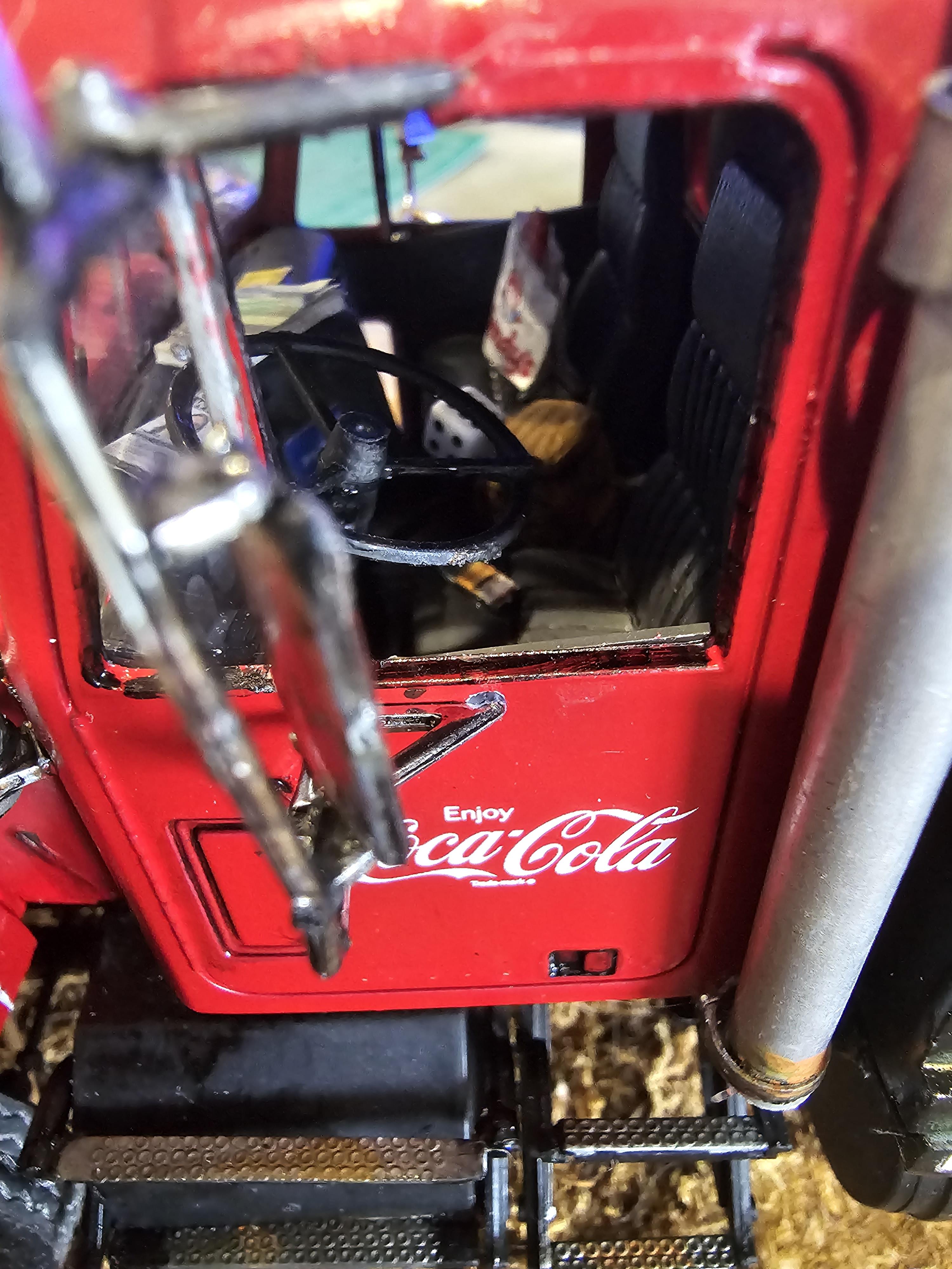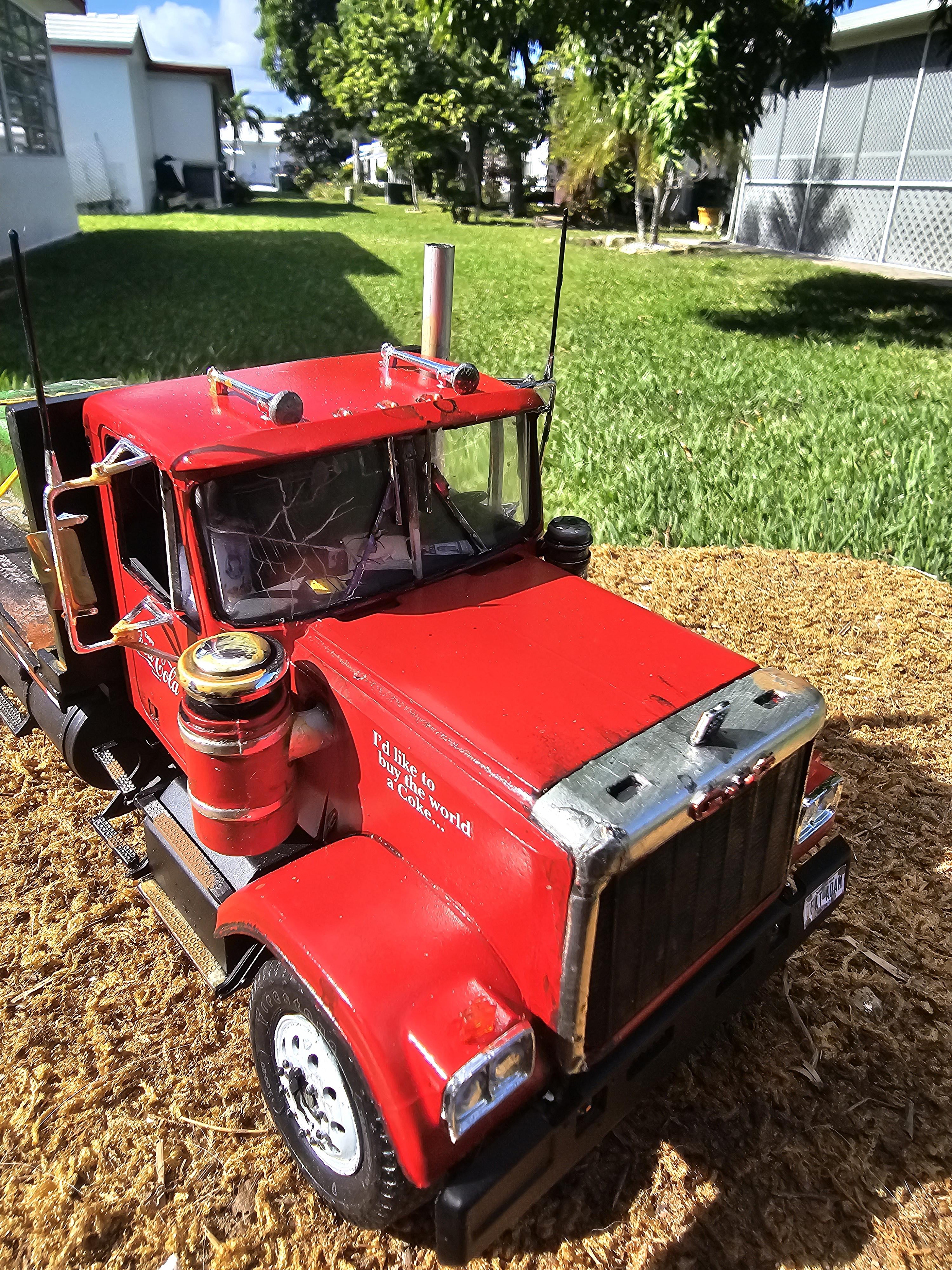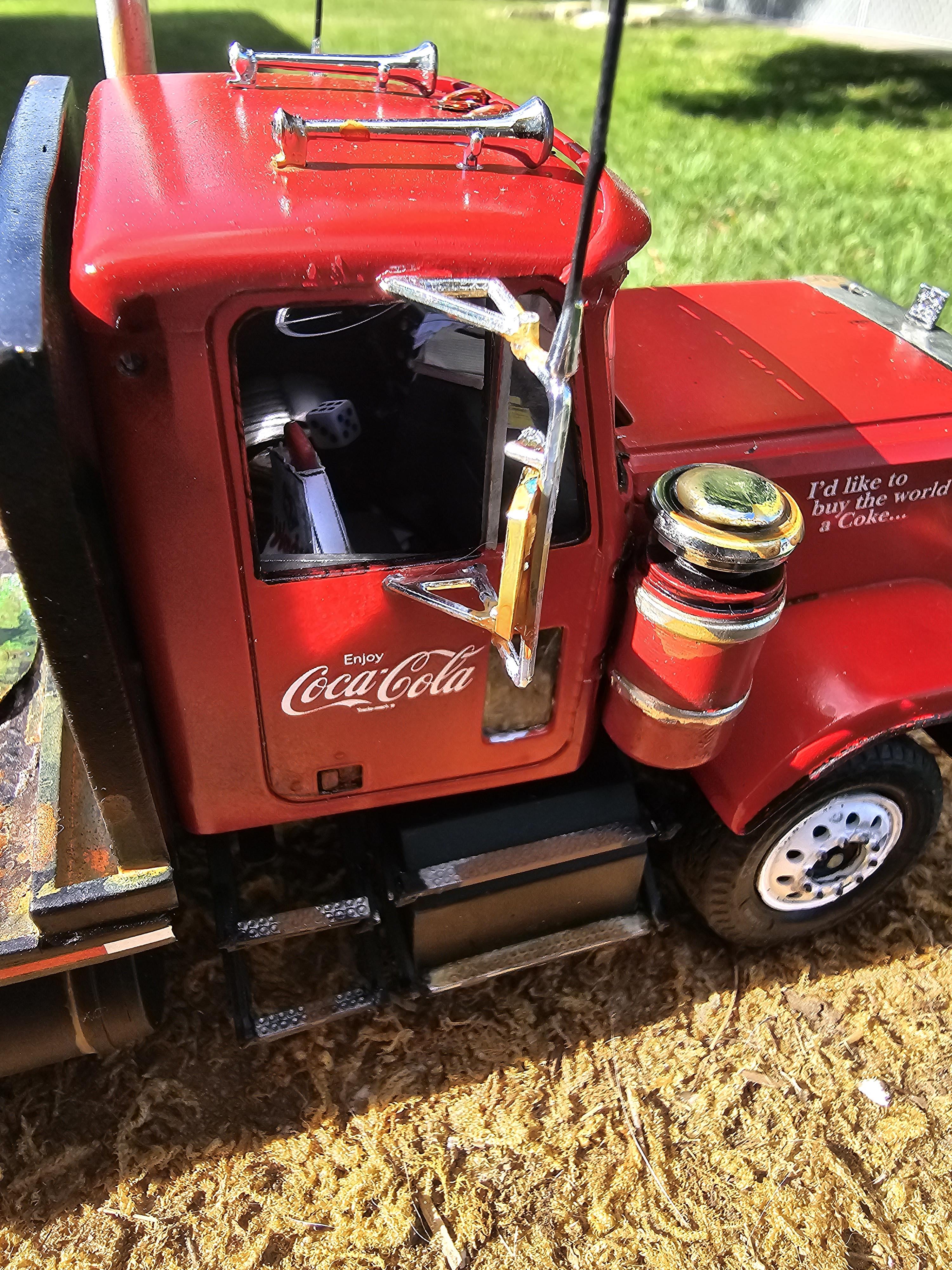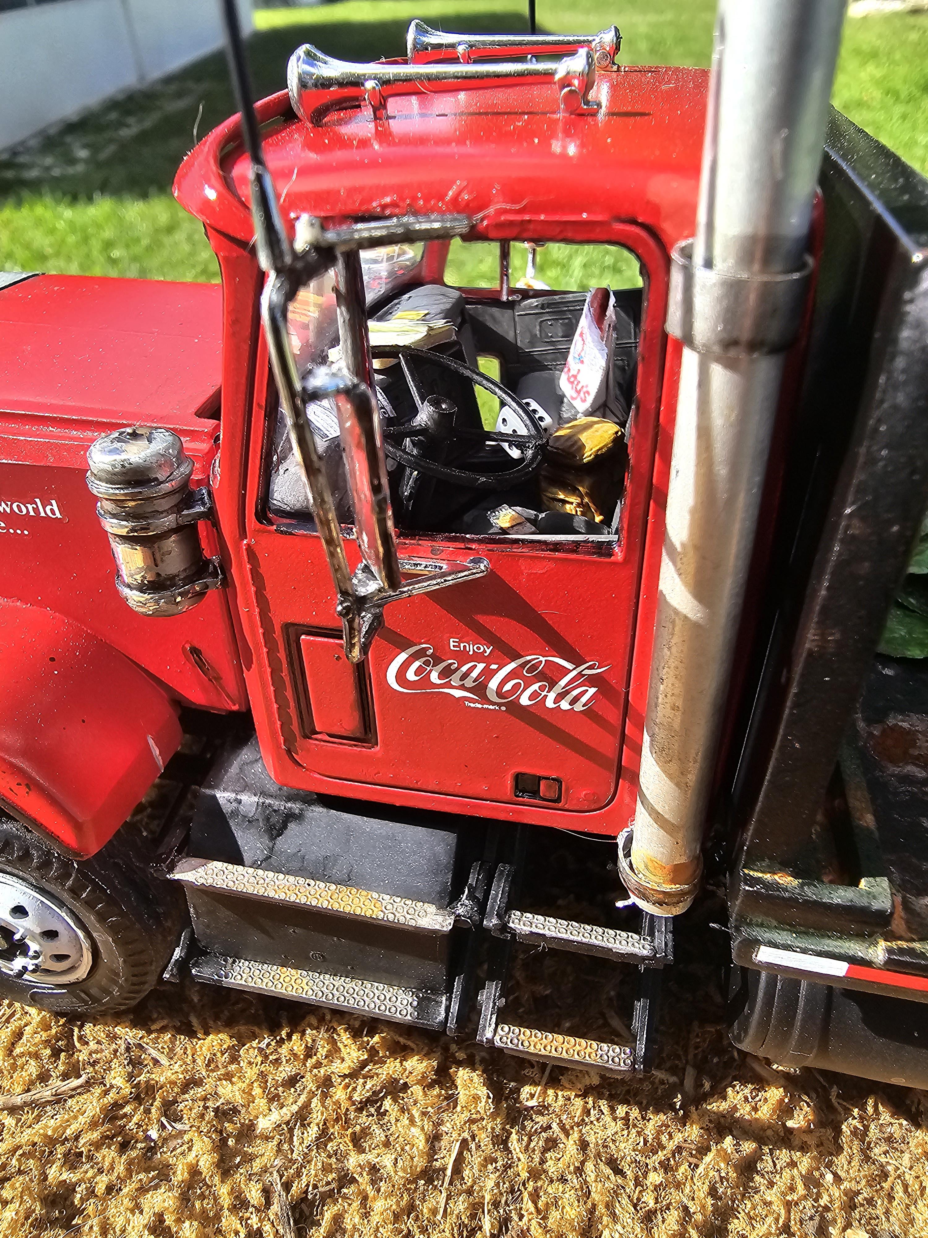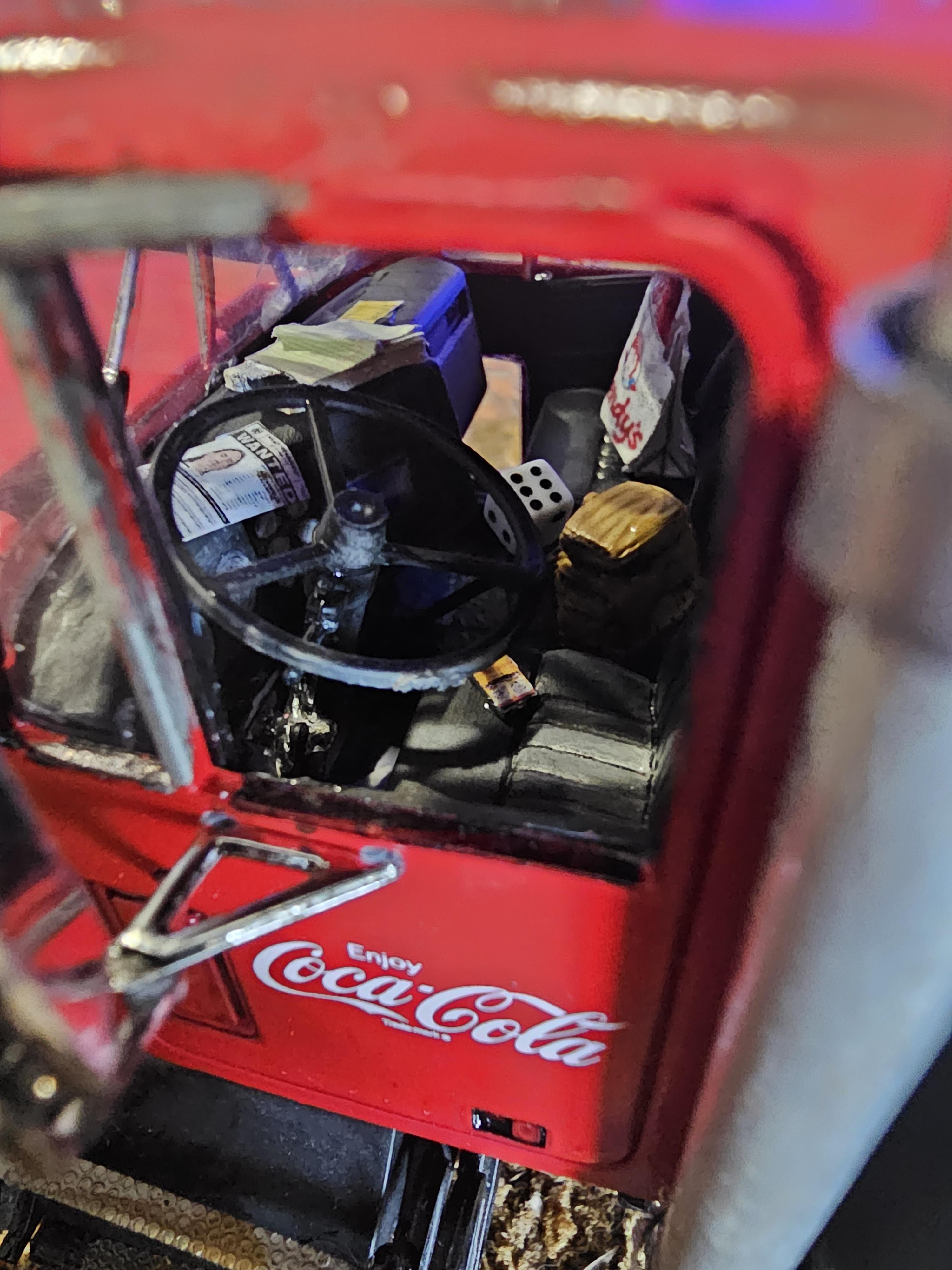 Model Builders Mafia Posted yesterday at 04:46 PM Posted yesterday at 04:46 PM Wow this one is finally done. I can definitely see why people in the 70s who tried to build these kits quit the hobby, yikes. Anyway, this is the AMT Coca-Cola GMC General. I started this project with a totally different thing in mind, but ended up cutting the chassis down to a single axle and adding the flatbed on the back. The final idea behind the kit was basically a maintenance truck in the Coca-Cola Fleet was sold off at auction, and a small company bought it to use for everyday needs. They never bothered to try to remove the Coca-Cola markings or clean up the truck in any way, just put it right to work. The one thing that did work out on this truck was I finally got to try to make my own tarp, and I'm quite happy with the way it came out. Basically, it's just a medical paper towel with Modge Podge and water put over a wooden crate and let dry and then painted with Vallejo paints and Tamiya panel line colors 3