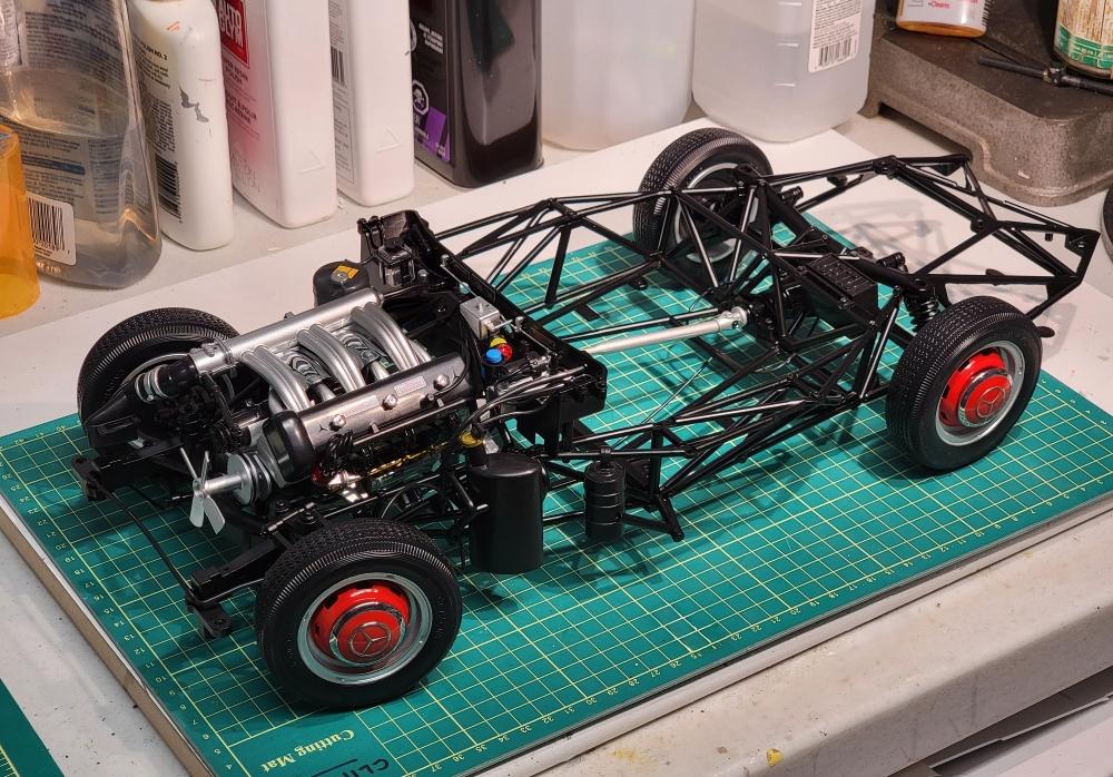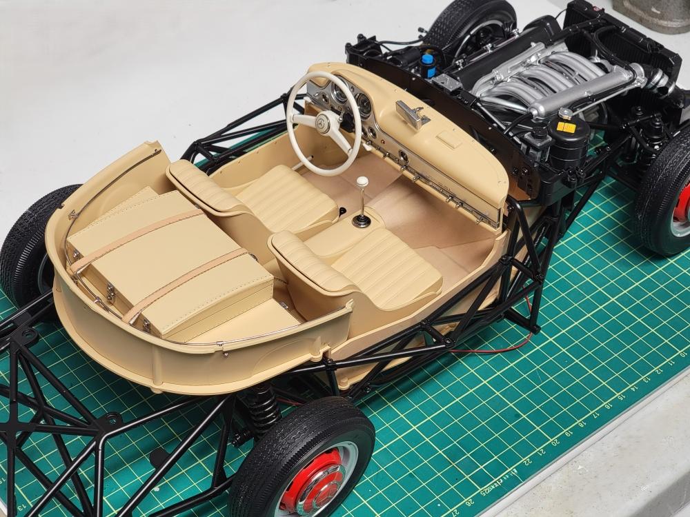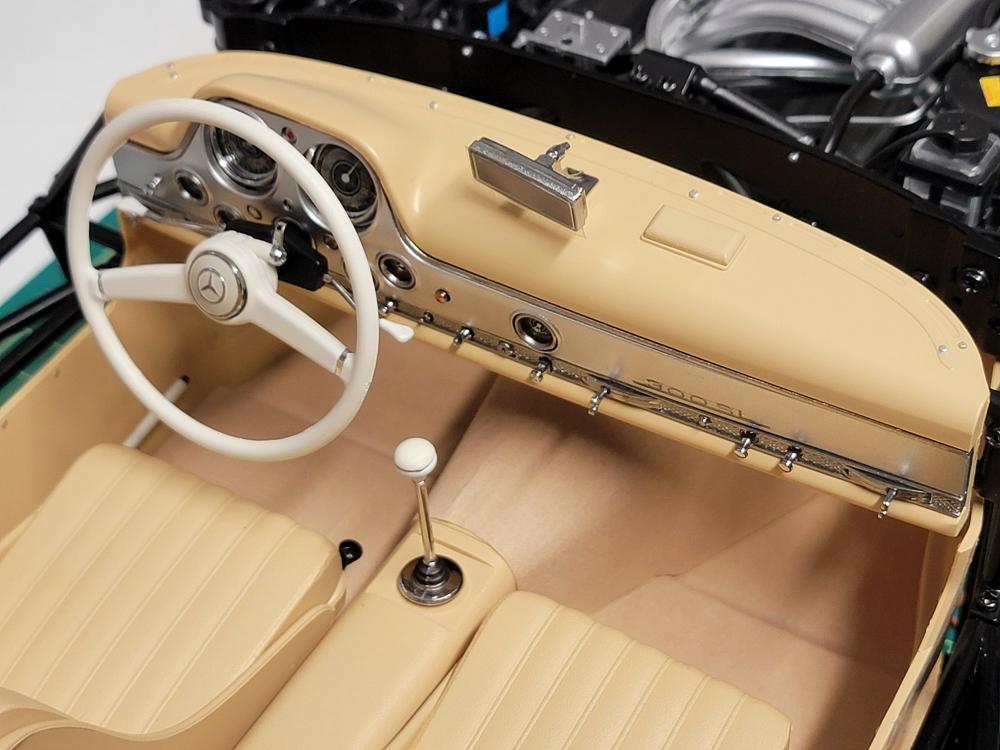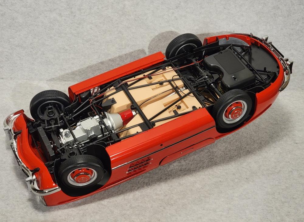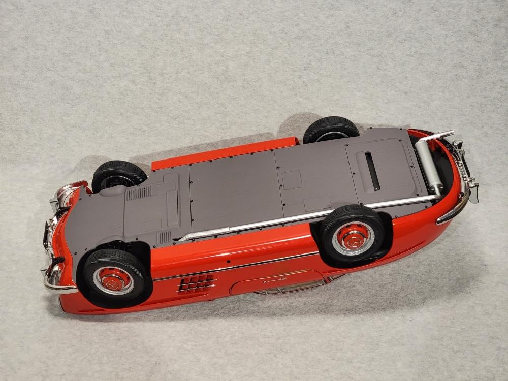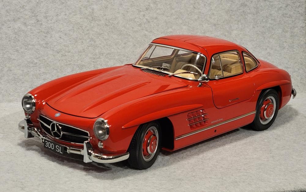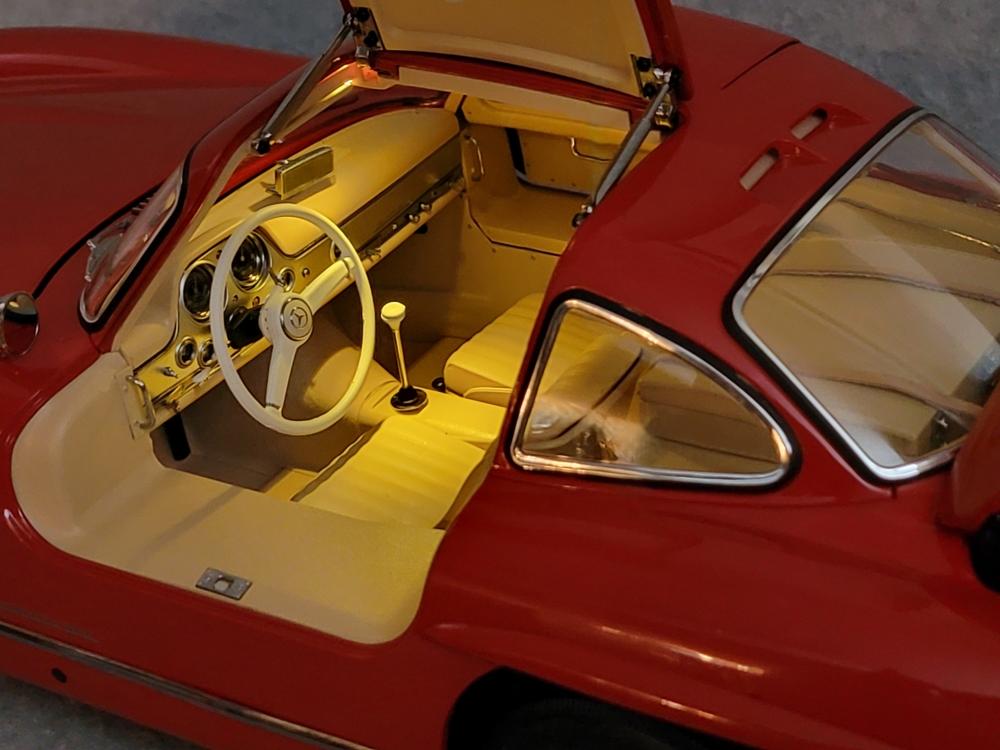 traditional Posted Thursday at 05:18 PM Posted Thursday at 05:18 PM (edited) I've just finished building this huge (1/8 scale) Mercedes 300SL from IXO Collections. My twin brother, Larry, bought it on a 'Black Friday' one-day sale and had it sent to me for building since he was too busy at this time of year with his senior's rock band (he plays keyboard). The IXO model kit (over 600 parts) comes beautifully packaged with parts well finished (no painting required). It's sort of like an expensive, huge, complex 'snap kit' including a well illustrated 254 page soft cover instruction manual. The finished model includes working headlights, tail-lights, brake lights, and interior light when the gull wing doors open. It was fun to build and I'm delighted with the finished product. My wife, Heather, holding the kit's large box Edited Thursday at 10:38 PM by traditional 2
