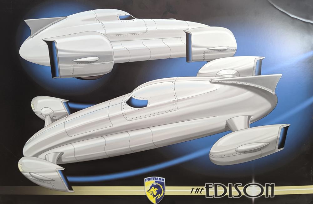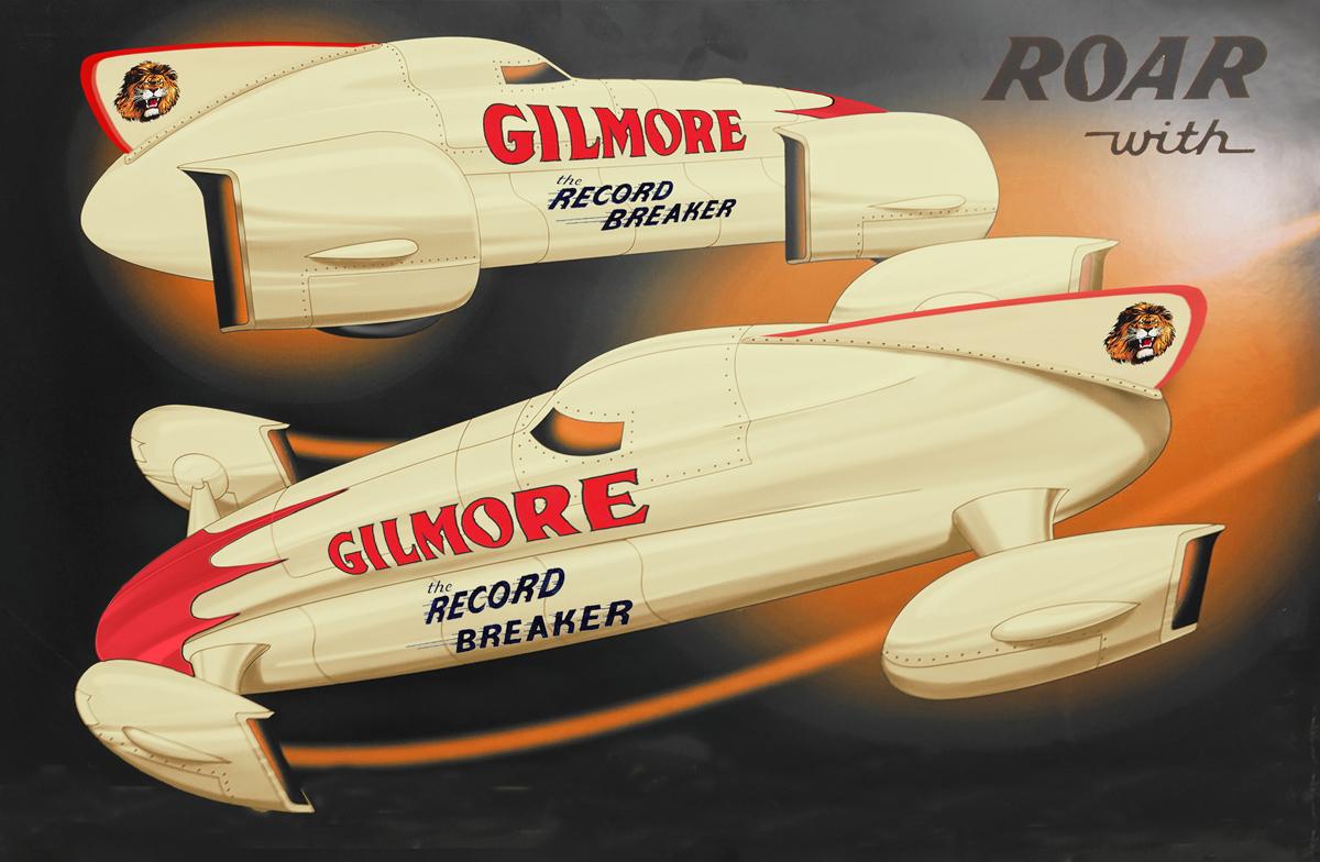 Big John Posted Friday at 08:59 PM Posted Friday at 08:59 PM (edited) Wow, This caught on like Wild Fire in wet grass, Maybe get it kick started again... Not sure where else to put this. With all due respect to the original artist, I came across a very cool "electric speed record concept car" design on an internet search and was inspired to do a 1930s LSR car with Gilmore Record Breaker sponsorship. Below are the original and my shopped workup. Edited Friday at 09:00 PM by Big John