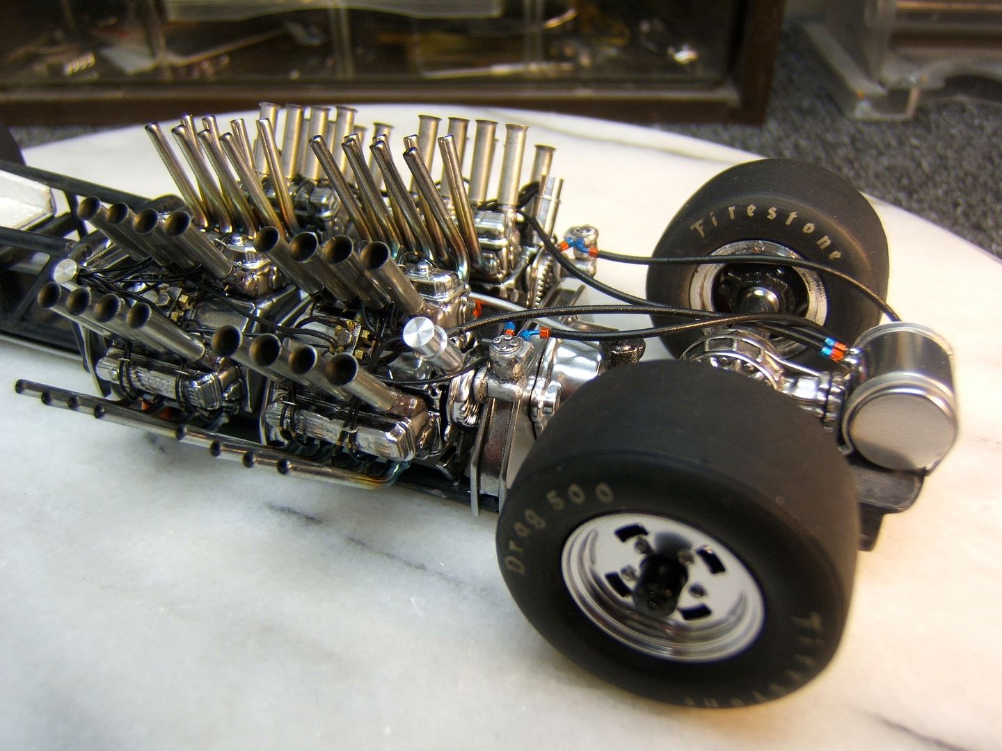 Smart-Resins Posted February 2, 2011 Posted February 2, 2011 Looking very good there! Body is cool! Engines are looking great! Half way there. You know I have always been intruiged by this car. I have never researched it though. I have always wondered how they steered it. Meaning, did they have two brake pedals or four levers or what? Had to have been a raped ape running down the strip and a real bear turning it at the end!