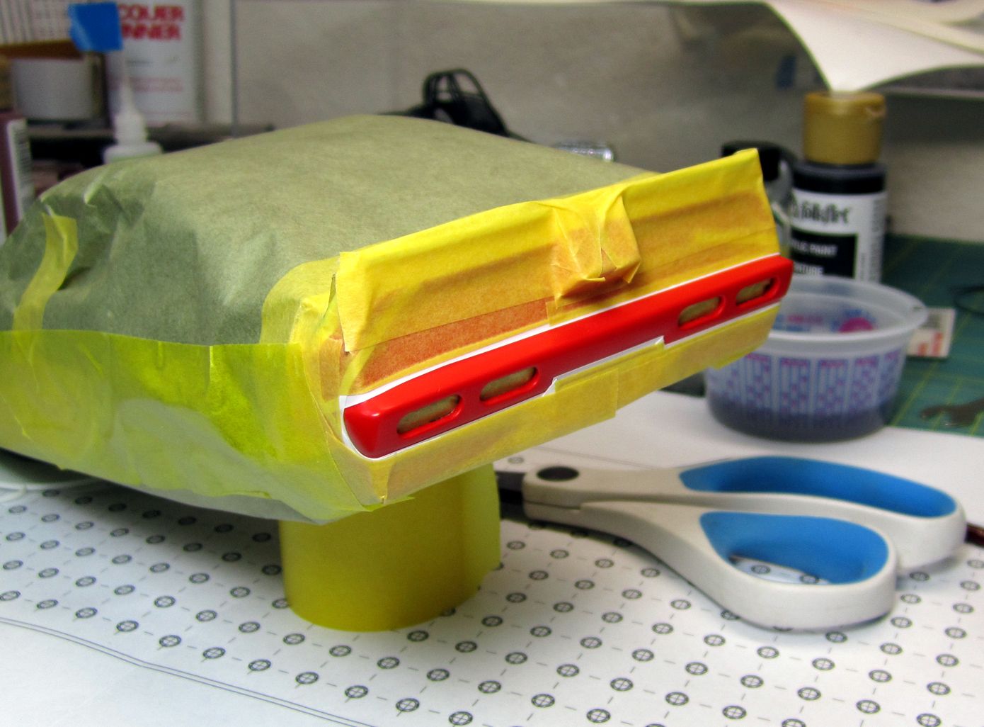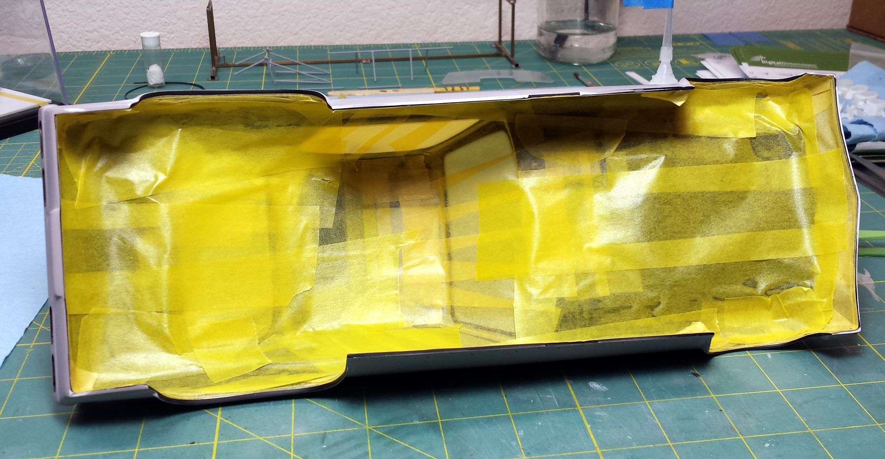 Mooneyzs Posted April 13, 2016 Author Posted April 13, 2016 So the next thing do to was to tape off the body for the red. I had a local sign shop cut me some Gerber Paint mask (Low tack vinyl mask) from the pattern from the decals. I have to thank my friend Brad Norgaard for creating the file for the vinyl mask for me: Here is the Vinyl Mask with the Transfer tape added to it: Here is the body after laying the vinyl mask down and getting the rest of the body taped up for Red Paint: