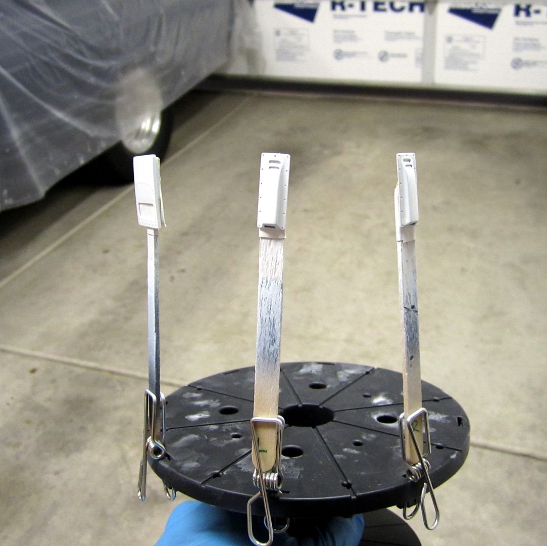 Mooneyzs Posted April 13, 2016 Author Posted April 13, 2016 (edited) Next I got the black base on the front and rear bumper: Then the Silver was painted on to the bumpers: Then it was time for the clear coat. I started by misting a light coat onto the body and had let it flash off for 10 mins then added 2 medium coats with waiting 10 mins between each coat: Edited April 13, 2016 by Mooneyzs