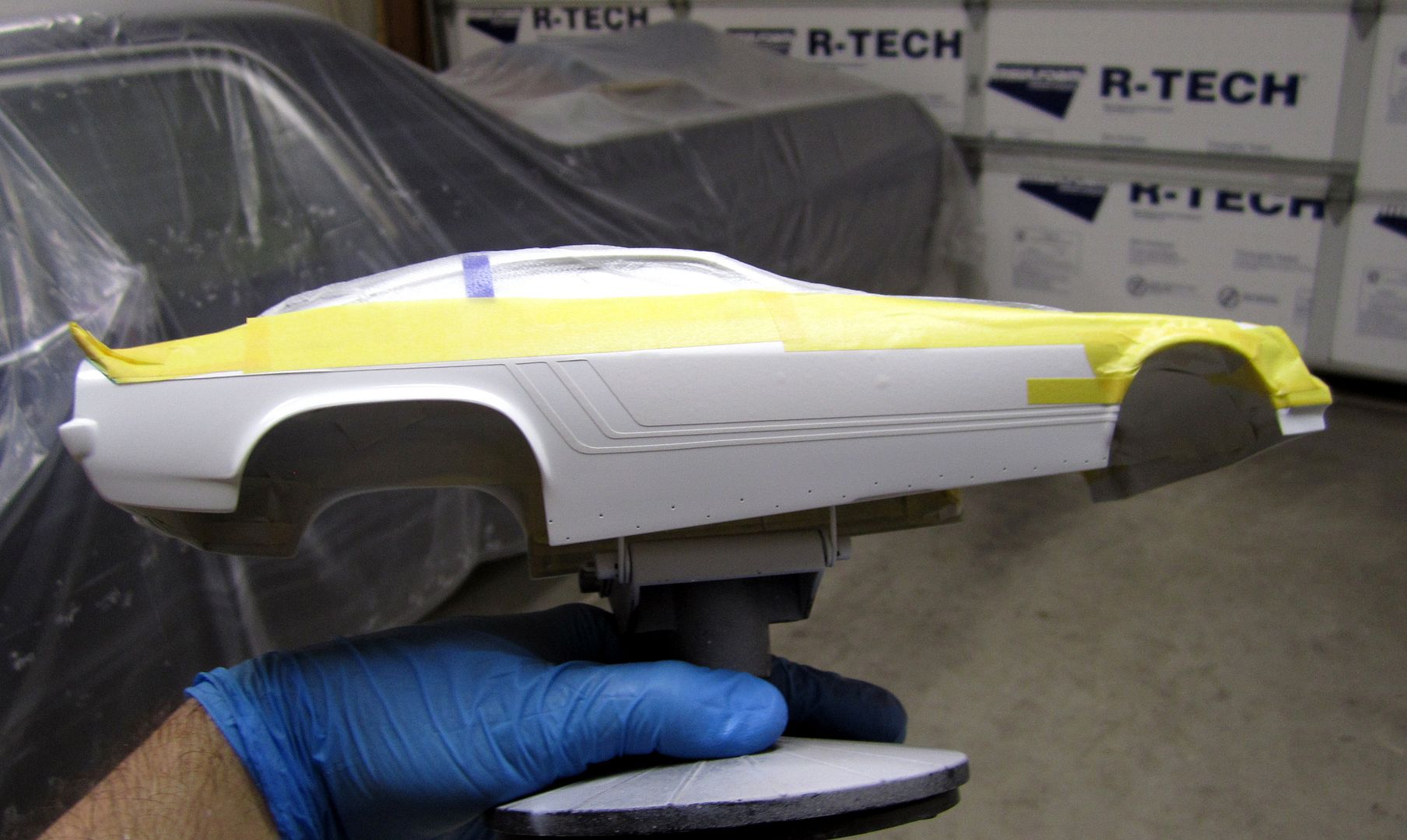 Mooneyzs Posted April 13, 2016 Author Posted April 13, 2016 Hello Fellas.... I know I haven't posted much for about a month but there was a reason for it. I was trying to have a surprise for our Desert Scale Classic this past weekend. Now that the show is over It is time to update you all with what I think is a pretty big milestone for me on this build. I am super happy to say that I was finally able to say goodbye to the primer look and was able to get some paint on the body. Now I need to say first that I had a bunch of set backs during the painting process. Just as this build has been for me lately it wanted to fight me all thru the painting process. I had colors bleed thru the tap which I had to fix multiple times. I don't want to bore you with all of those pictures but I will do my best to share the painting process with the least amount of pictures as possible. Although I will warn you I do have quite a few pics to post, Hopefully no one minds. Here is where the build stands as of now.... So I got the Body all blocked out with 800 Grit sand paper and ready for paint: Up next was getting the inside of the body all taped out: After about 2+ hours of taping it was finally ready for some paint: Here is the body with the White Base coat: