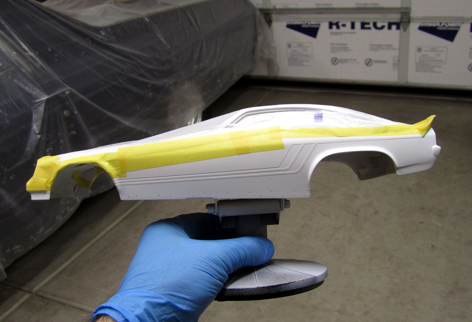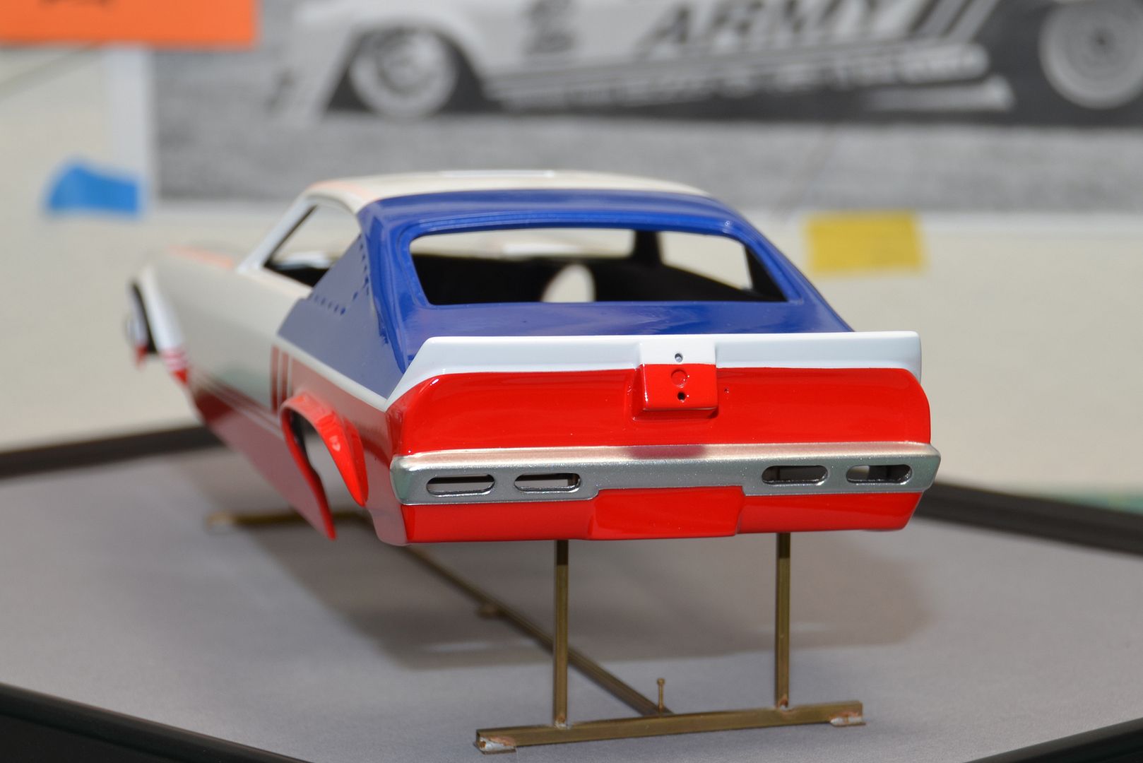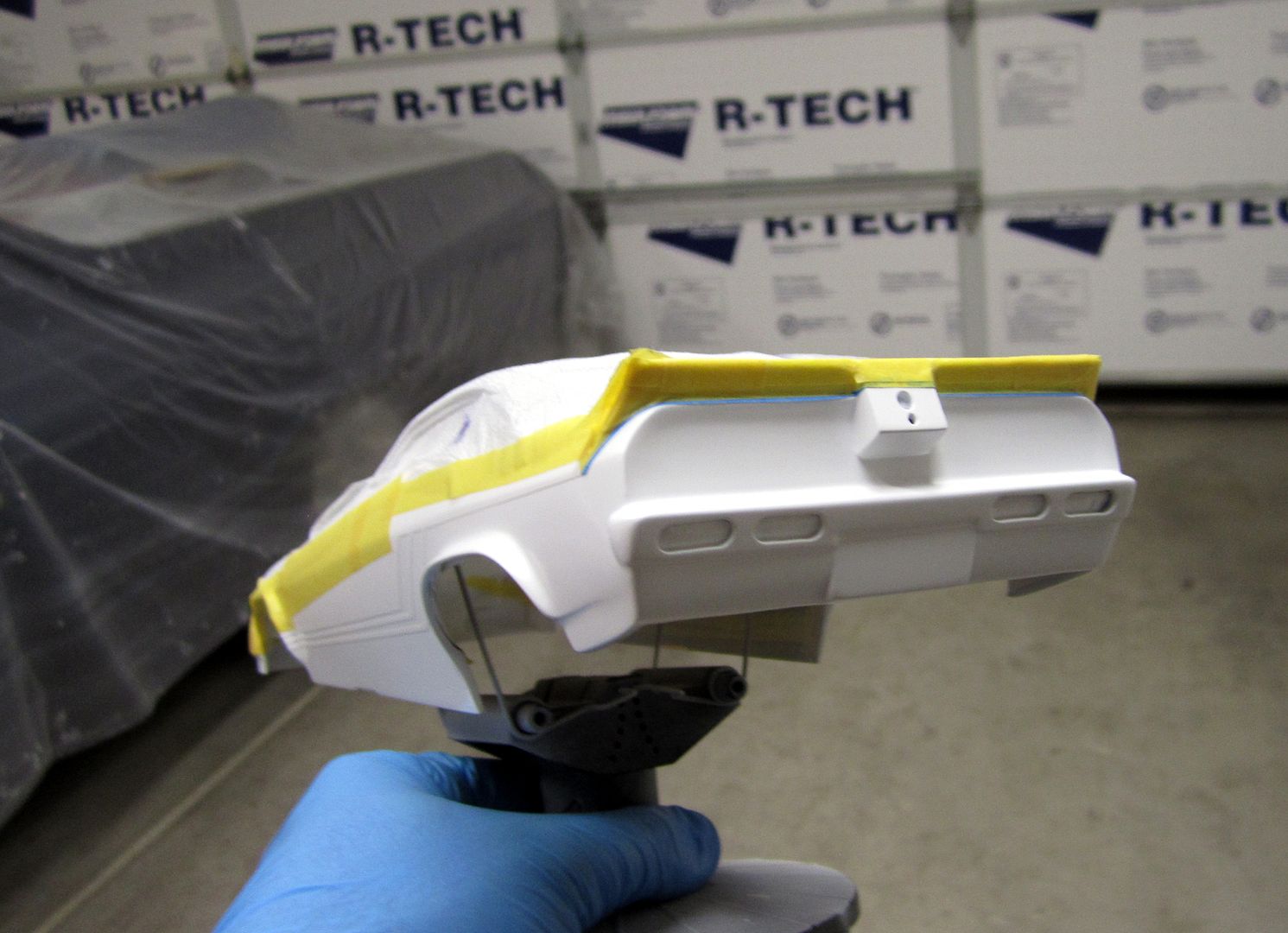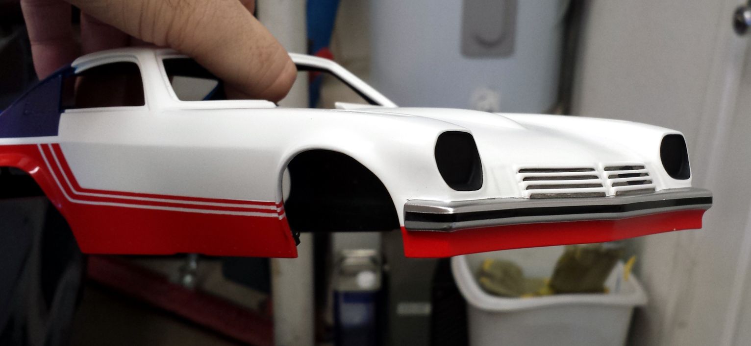 Mooneyzs Posted April 13, 2016 Author Posted April 13, 2016 Here is the body after the Blue Basecoat was finished: Next it was time to get the Front and Rear bumpers taped off for paint: