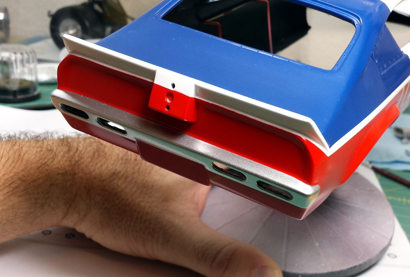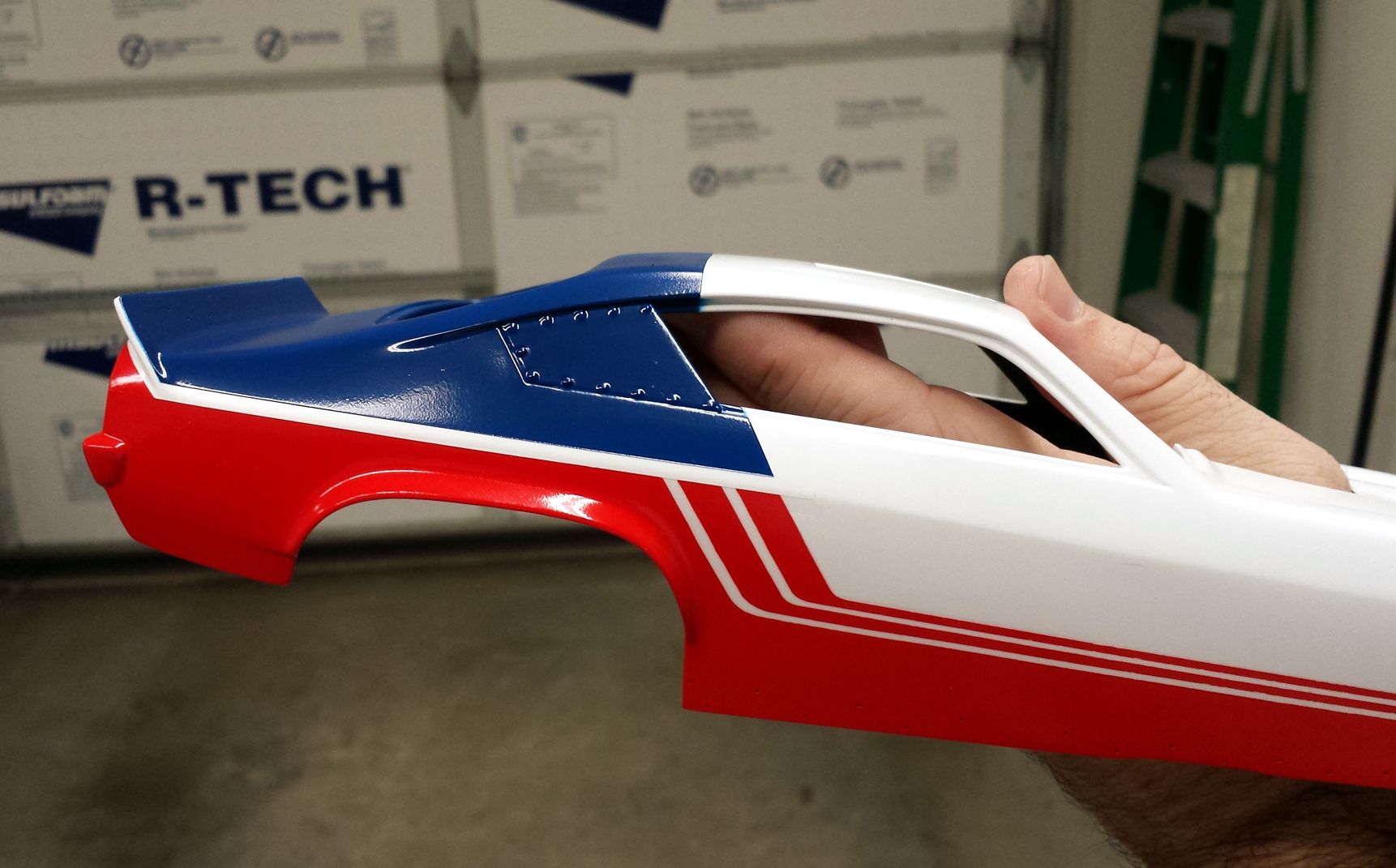 Mooneyzs Posted April 13, 2016 Author Posted April 13, 2016 (edited) Here is the body fresh from the Red Basecoat: Here is an example of one of the spots that the red bled thru during the paint, I did go back and fix it: After fixing all of the spots that bled thru with the Red it was time to tape the body up for the Blue paint: Here is the body with the first coat of blue: Edited April 13, 2016 by Mooneyzs
