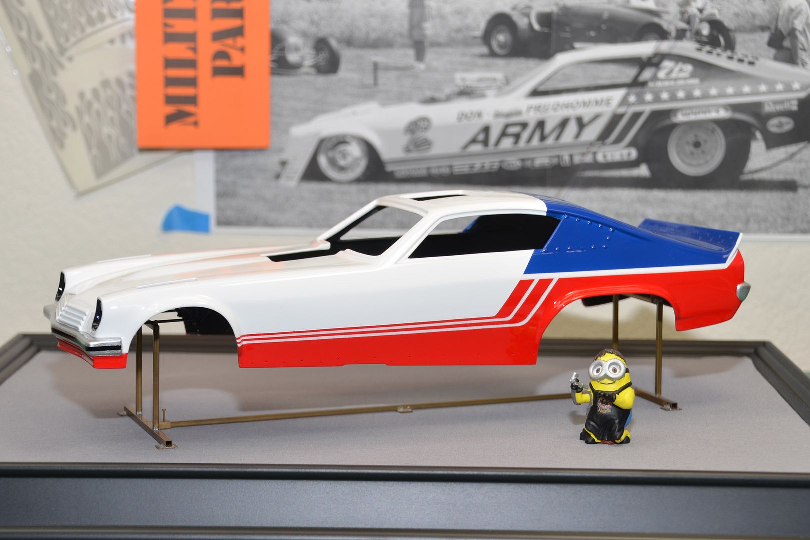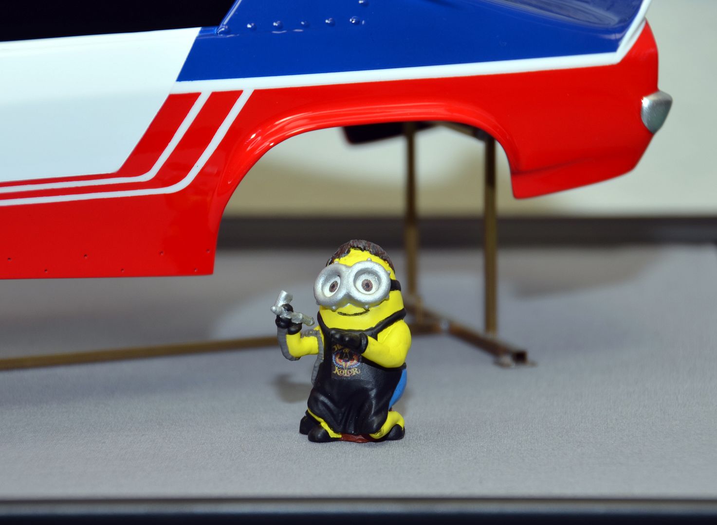 Danno Posted April 11, 2016 Posted April 11, 2016 Breaking News!This just in from the DESERT SCALE CLASSIC News Desk: Chris Sobak's LONNNNNNNG AWAITED Army Funny Car project dealt another MAJOR SETBACK!! It was revealed Saturday that unknown perpetrator(s) stole Sobak's primered body! However, the dastardly ne'er-do-wells left a sordid imitation in its place . . . apparently in mock protest of Sobak's propensity for rushing the assembly of his model. Contacted for comment, Sobak told DSCNews "Maybe next year." Police say they are seeking a sneaky-looking group of little, short, yellow guys from Van Nuys for questioning. A police spokesman said they are not suspects but they are 'minions of interest.' DSC attendee John Teresi denied knowledge of the crime and said the suspects were not minions he goes with.A DSC spokesman said the best model car contest in the Southwest would have Sobak's perpetually reserved space on the Projects Table waiting for him next year.
