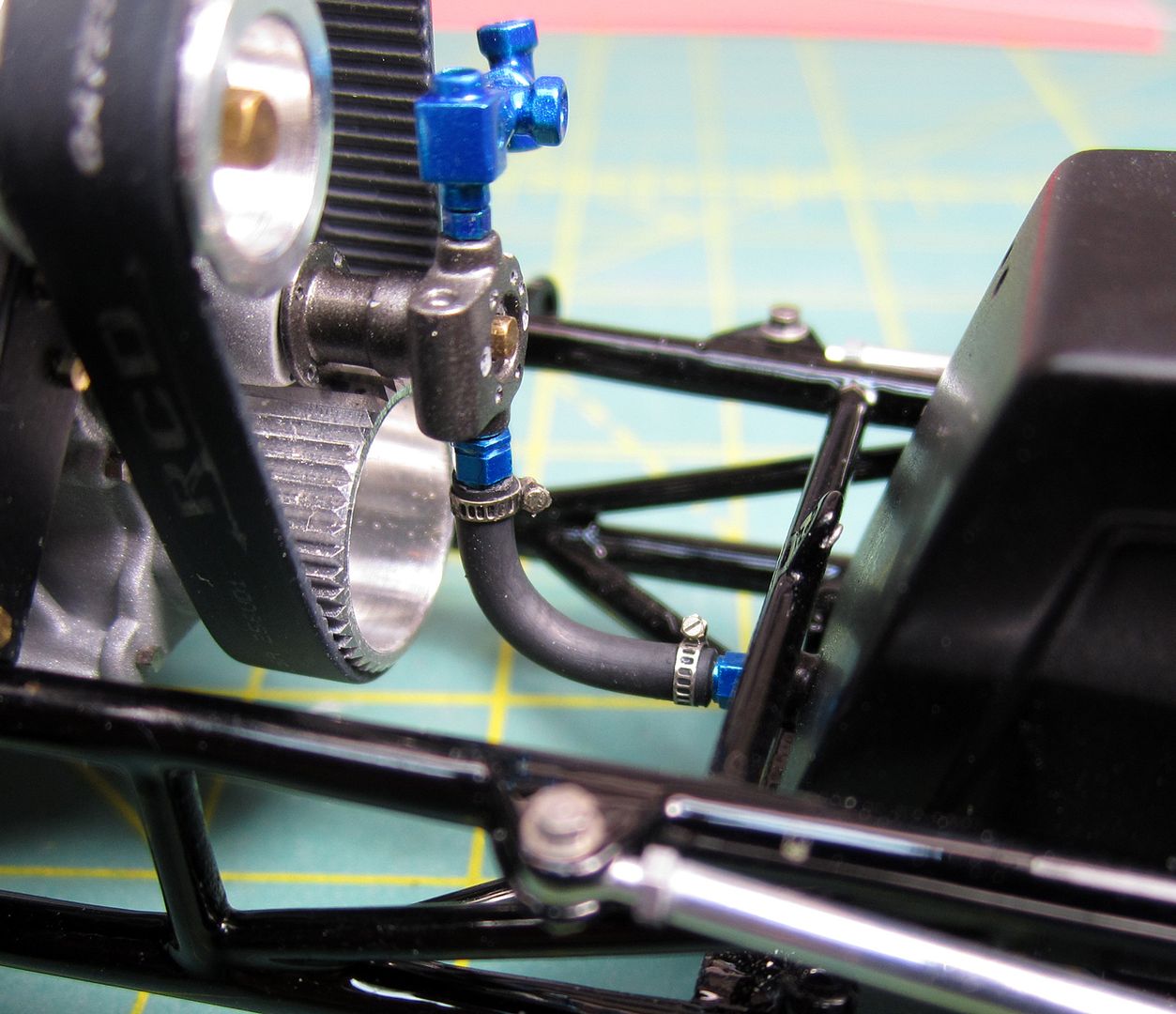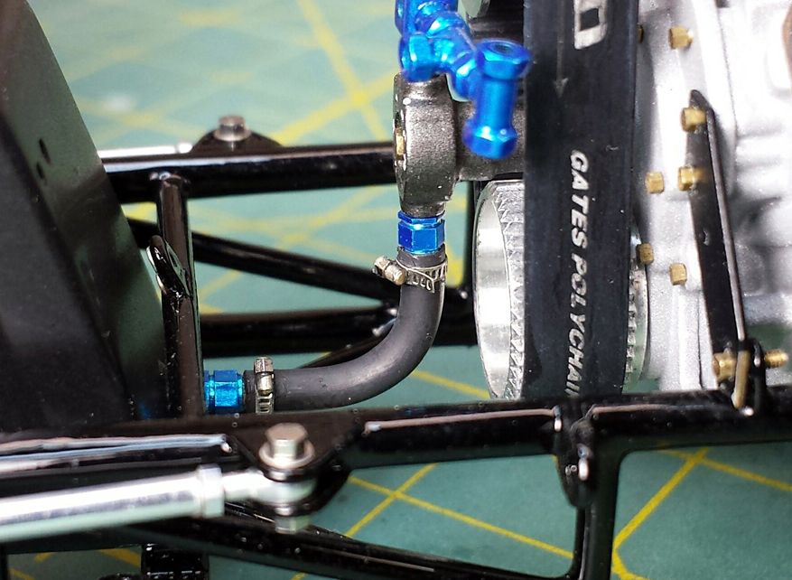 Mooneyzs Posted June 11, 2016 Author Posted June 11, 2016 Alright Fellas... It's time for another quick update. I did more work on the Main fuel line last night and tonight, So now I think it's pretty much done at this point. And I have to say that I am pretty happy with how it's turned out. It's not perfect but good enough at this point. So here is a bunch of parts that I started with. I used a Photo-etch set of a hose clamp from Performance Detail Products which I found at a local swap meet and I added some tubing from Albion Alloy, hex bot from Scale Hardware and a part of a Dzus fastener from Replicas and Miniatures, as well as some parts of RB Motion Fittings: I first got the Hose clamp material glued in place and wrapped around my fuel line. and then proceeded to build the screw mechanism with the other components: Placed the RB Motion fittings on the line for a visual: Next I got the fittings painted up with some Tamiya Clear Blue: After the paint was dry on the fittings I had to mock it up in the chassis to see how it looked: Here it is from the opposite side and I was trying to make the hose clamp look like the real thing with the extra material hanging out past the screw mechanism: