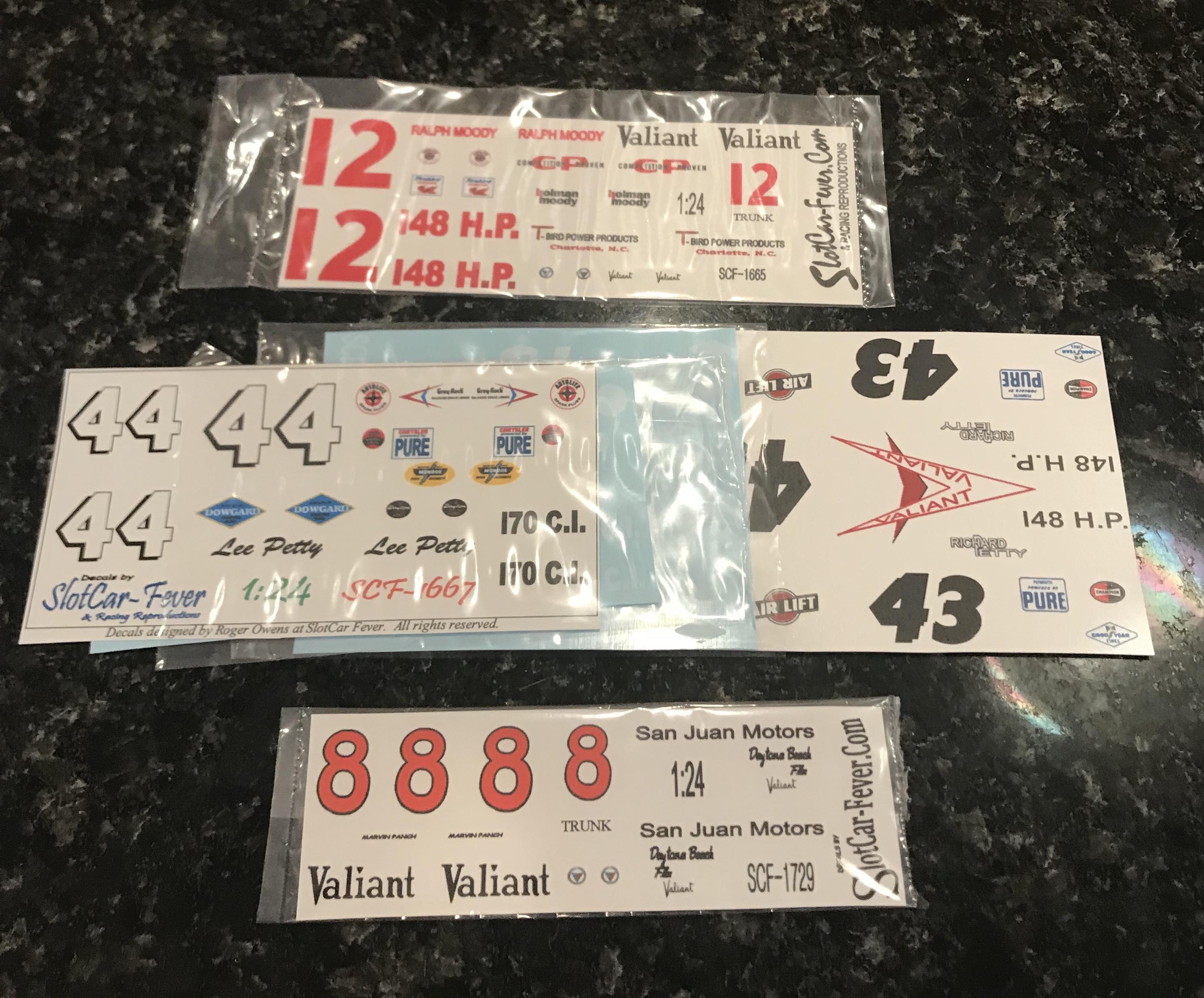 Tom Geiger Posted November 27, 2020 Posted November 27, 2020 I have always been into the 1960 Daytona Compact Class Valiants and would love to build all eight of them. Here’s decals for four of them.. Lee and Richard Petty, Ralph Moody and Marvin Panch. From Slot Car Fever, not sure how well they will work just yet. I am always looking for photos and info on these cars if anyone has any!
