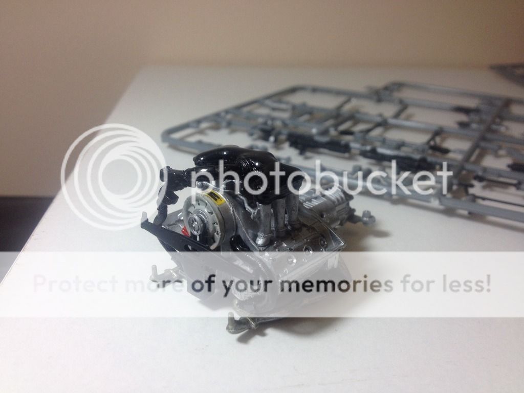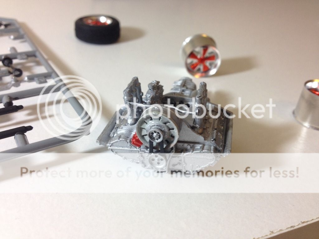 Scalper Posted April 3, 2016 Author Posted April 3, 2016 Did some work on the engine and rims. About to apply some engine decals now. Rims painted with tamiya clear red. Thanks for looking.