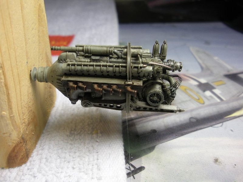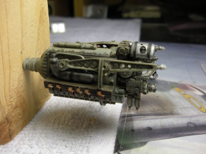 mustang1989 Posted February 4, 2014 Author Posted February 4, 2014 Here's where I started with on an engine: and this is afer painting and weathering. The engine is supposed to be a dark color but I painted it a medium shade of grey (RLM 02) and applied a heavy dark wash to bring out all of the detail that this resin engine has to offer: