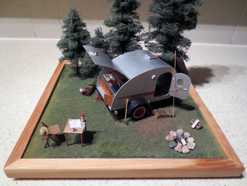 gasser59 Posted November 29, 2015 Author Posted November 29, 2015 (edited) Just to let you guys know, this dio isn't finished yet. I've built a base, covered it with grass and made a few pine trees from a natural fiber furnace filter that I cut into shapes and stacked on a tapered dowel. Here's few pictures. The edges of the base need to be sanded smooth and painted along with a few more small camping related items added. Edited March 25, 2016 by gasser59