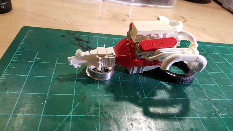 Ralph Torres Posted September 24, 2015 Author Posted September 24, 2015 Did some fuel rails using styrene tubing.. also added Injectors and a throttle body..im calling this done as far as pipping goes. Time to start the clean up and painting process on it.